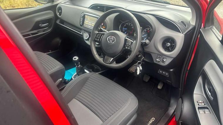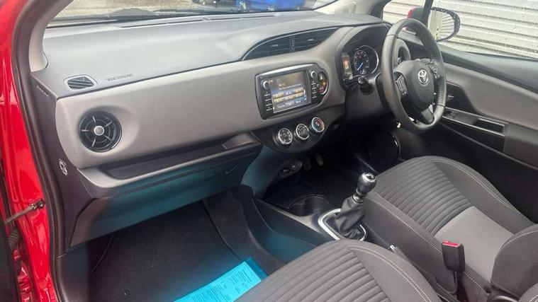 4.2" coloured LED TFT multi information display, Analogue speedometer, Analogue tachometer, Auto speed limiter, Bluetooth connectivity, Cruise control, External temperature gauge, Fuel indicator with low level warning, Key reminder warning, Lights on warning, Multi information display switches on steering wheel, Power Steering, Reversing camera, Trip computer, 6 speakers, Auxiliary input socket, Steering wheel mounted audio/telephone switches, Toyota Touch 2 with DAB, USB connection, Auto up and down function on drivers window, Automatic wipers, Black lower front grille, Body colour bumpers, Body colour door handles, Body coloured door mirrors, Daytime running lights, Electric adjustable heated door mirrors, Electric front windows, Follow me home headlights, Front fog lights, Headlight cut-off reminder, LED High mounted stop lamp, Manual dimming rear view mirror, Projector headlights, Rain sensitive windscreen wipers, Rear combination lights bulb type, Rear window defogger, Rear wiper, Turning signal integrated indicators in door mirrors, 12v power outlet - front, 3 adjustable rear headrests, 3 spoke leather steering wheel, 60/40 split folding rear seat, Active headrests, Boot light, Data Communication Module (DCM) connected services, Driver and front passenger personal light, Driver and front passenger Whiplash Injury Lessening seats, Driver/passenger vanity mirrors with covers, Front and rear cup holders, Front map reading lights, Front seats with lumbar support, Glovebox, Height adjustable driver's seat, Height adjustable front head restraints, Illuminated entry system, Isofix seat fixing, Leather gearshift, Manual air conditioning, Map pockets on the backs of the front seats, Pollen filter, Removable rear parcel shelf, Sliding front seats, Soft touch inner door garnish, Spirit fabric upholstery, Tilt/telescopic steering column, 3 point seatbelts on all rear seats, ABS+EBD+Brake assist, Collision mitigation braking system, Emergency brake light system (EBS), Front passenger airbag on/off switch, Front seatbelt reminder, Height adjustable front seatbelts with pre-tensioners and load limiters, Hill start assist control (HAC), Rear child proof door locks, Rear seat belt reminder, Road sign information display, Seatbelt warning lamp and buzzer, Supplemental restraint system (SRS) airbags - 7 airbags including driver, front passenger, curtain, side and knee airbags, Toyota safety sense including Road sign assist, Pre collision system, auto high beam and lane departure alert), Tyre pressure warning system, Vehicle stability control VSC + traction control, Engine immobiliser, Power and remote door locking, Soft touch instrument panel, Space saver spare wheel,