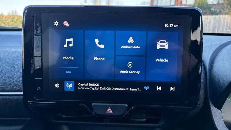 7" Digital Combimeter, Adaptive cruise control, Adjustable speed limit with speed warning, Bluetooth connectivity, Colour binocular inspired displays with digital speedometer, E-call, Electric power steering, Hybrid energy display, Lane trace assist, Multi information display switches on steering wheel, Pre-collision system (PCS), Reversing camera, Smartphone integration with Apple CarPlay and Android auto, Tailgate, Voice recognition, Vehicle Stability Control (VSC), 4 speakers, 9" Multimedia touch display, Toyota Touch 3 system with DAB radio, USB connection, Acoustic windscreen glass, Auto high beam assist, Auto windscreen wipers, Automatic headlights, Body coloured door mirrors, Electric adjustable heated door mirrors, Follow me home headlights, Front auto power windows with anti jam protection, LED daytime running lights, LED front fog lights, LED front light guide, LED Headlights, LED High mounted stop lamp, LED Indicators, LED rear light guide, Manual headlight levelling, Painted chequered front grille, Rain sensor, Rear auto power windows with anti jam protection, Rear privacy glass, Rear roof spoiler, Rear side wing doors, Rear wiper, Shark fin antenna, Turning signal integrated indicators in door mirrors, Variable front intermittent wipers, 3 adjustable rear headrests, 3 seat bench in 2nd row, 3 spoke leather steering wheel, 60/40 split folding rear seat, Active headrests, Adjustable boot height, Auto air conditioning, Coat hooks in rear grab handles, Cup holders (2 front & door), Data Communication Module (DCM) connected services, Fabric upholstery, Front armrest, Glovebox, Grey roof lining, Height adjustable driver's seat, Isofix seat fixing, Leather gearshift, Pollen filter, Shopping bag hooks, Single front passenger seat, Tilt/telescopic steering column, 3 point seatbelts on all rear seats, ABS+EBD+Brake assist, Electronic parking brake, Emergency brake light system (EBS), Front passenger airbag on/off switch, Front seatbelt reminder, Hill start assist control (HAC), Rear child proof door locks, Rear seat belt reminder, Supplemental Restraint System (SRS) 8 airbags: Driver & passenger's airbags, dual side curtain airbags, side impact airbags, front centre airbag, Toyota Safety Sense 3 with over the air updates, Tyre pressure warning system, 2x Master key, Alarm/immobiliser, Remote powered central double locking doors, Soft touch instrument panel, Space saver spare wheel,