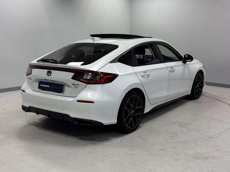 10.2" Multi information display, Adaptive cruise control, Adaptive motion for electric power steering, Adjustable speed limiter, Agile handling assist, BLIS (Blind Spot Information System) with Cross Traffic Monitor, Bluetooth hands free telephone connection, Driving modes, Economy mode, Electric power steering wheel with variable gear ratio steering, Emergency call service, Emergency stop signalling system, Forward collision warning, Front and rear parking sensors, Honda CONNECT with Navigation 9" touchscreen, AM/FM/DAB, Apple Carplay and Android Auto, live traffic info, Honda sensing, Idle stop, Intelligent speed limiter, Lane departure warning system, Lane keep assist, Low speed following, Power meter, Rear parking camera, Road departure mitigation, Smartphone wireless charging plate, Tailgate, Traffic jam assist, Traffic sign recognition, Wireless apple carplay, Vehicle stability assist, 'Shark fin' mobile antenna, 2x USB Front socket (1 data & 1 charge), Centre speaker, Digital Audio Broadcast (DAB) Tuner, Front tweeters, Premium BOSE audio system with 12 speakers, Steering wheel mounted audio controls, Subwoofer, Adaptive driving beam, Aspherical driver door mirrors, Auto dimming rear view mirror, Auto headlight adjuster, Auto headlights, Automatic coming/leaving home lighting function, Automatic rain sensing wipers, Body colour door handles, Body colour door mirrors, Chrome window garnish, Electric adjustable heated door mirrors, Electric front and rear windows, Electrically folding door mirrors, Headlight extension aluminium, High beam assist, High level LED brake light, LED daytime running lights, LED front fog lights, LED front turn type, LED Headlights, LED rear lights, Material finish grille, Panorama glass roof, Pop up hood, Privacy glass, Rear side wing doors, Rear wiper, Single hidden exhaust pipe, Variable front intermittent wipers, 3 seat bench in 2nd row, 4 way electric adjustable passenger seat, 60/40 split folding rear seat, 8 way electric adjustable drivers seat, Cargo accessory power socket, Cargo net hooks, Driver and front passenger seat armrests, Driver and front passenger seat electric lumbar adjustment, Driver's seat electric height adjustment, Driver/passenger front seatback pockets, Dual climate control air conditioning system, Front accessory power socket, Front map lights, Front/rear courtesy lights, Glovebox light, Heated front seats, Heated steering wheel, Hybrid emblem, Isofix points/i size, Leather steering wheel, Leather/synthetic leather upholstery, Meter Illumination white, Platinum chrome interior door handles, Rear air vents, Rear head restraints, Rear reading lights, Rear seat centre armrest, Single front passenger seat, Stainless steel sports pedals, Sunglasses holder, Sunvisors with illuminated vanity mirrors, Tilt/telescopic adjustable steering wheel, Tonneau cover, Trunk light, USB Rear number 2 x charge, White ambient roof light, 3x3 point rear seatbelts, ABS+EBD+Brake assist, Airbags - driver and front passenger, Airbags - Knee (AS), Airbags - Knee (DR), Anti-whiplash front headrests, Brake hold function, Collision mitigation braking system, Collision mitigation throttle control, Deflation detection system, Driver SRS airbag (single stage inflation), Electronic parking brake with auto hold, Front and rear curtain airbags, Front and rear seat belts with emergency locking retractor (ELR), Front centre airbag, Front side airbags, Hill start assist, Low speed brake system, Manual child lock in rear doors, Passenger airbag deactivate switch, Rear airbags, Regenerative braking/deceleration paddle control, Immobiliser, Mirrors and windows key fob, Remote central locking with 2 jack knife keys, Security alarm, Selectable door unlock, Smart entry + Smart start, Superlocking, Tilt sensors, Ultrasonic security sensor, 18" 2 tone black diamond cut alloy wheels, Tyre repair kit,