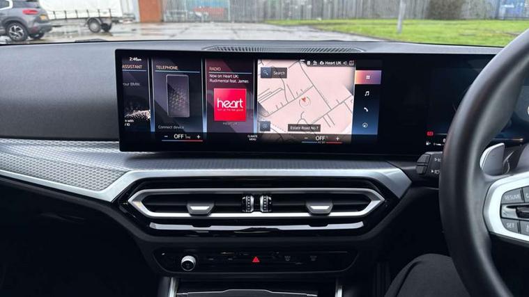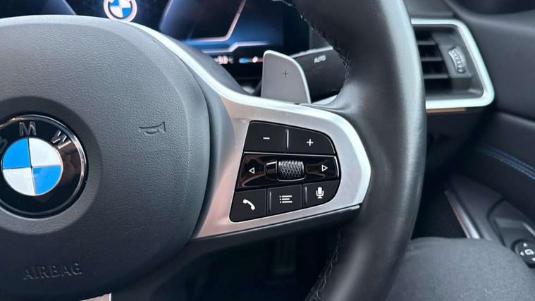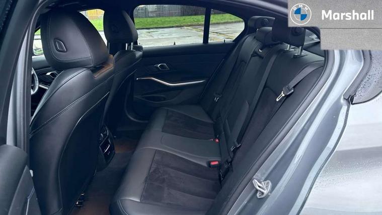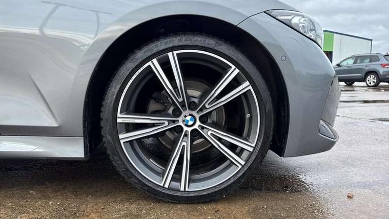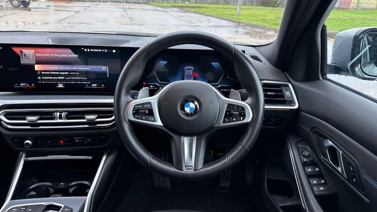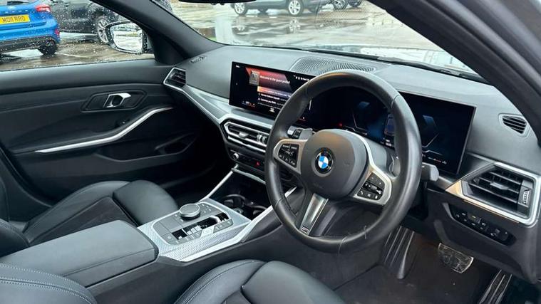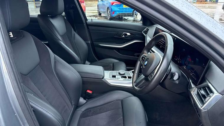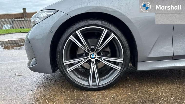 Active guard plus, Attentiveness assist, Automatic Start/stop button, BMW iDrive, BMW Teleservices, Condition based service, ConnectedDrive Services, Driving experience switch, Live cockpit plus with Navigation + 12.3" instrument display + 14.9" display, Intelligent voice assist, 2 USB, 4G LTE connect, Oil sensor for level and grade, PAS, Preparation for driver assistance, Shifting point display, Variable sport steering, Double joint spring strut front axle, Fuel tank breather system, Sport automatic transmission with steering-wheel mounted gearshift paddles and launch control, DAB tuner, 3rd brake light, Auto dimming rear view mirror, Auto dimming with folding wing mirrors, Automated High beam assist, Automatic headlight beam throw control with load dependent regulating reaction, dynamic compensation of braking dive and acceleration squat, BMW emblem, engine compartment lid and tailgate, Body colour roof fin, Door sill strips, Electric windows - front and rear, with open/close fingertip control, anti-trap facility and comfort closing, Follow me home headlight function, Front and rear bumper system with replaceable deformation elements, Front apron plastic in body colour, Fuel filler flap - right rear in body colour, Heated washer jets, High gloss shadow line exterior trim, Illuminated bow type door handles in body colour drivers side with door lock, Interior rear view electrochromatic mirror with automatic anti dazzle function, LED headlights with LED daytime running lights and LED turn indicator, LED rear lights, Licence plate panel integrated into front bumper and tailgate, Matt black B-pillar finsher, Matt black window recess cover, Model designation on right side of tailgate, One piece front bumper cover including towing eye cover in body colour, Rain sensor with automatic headlight activation, Rear boot, Rear side wing doors, Reversing lights, Side frame decorative moulding black matt, Visible exhaust tailpipe finisher, Welcome lights in interior and door handle area, 12V power socket in front storage compartment, 2 front cupholder in centre console with clamping elements and matt black inlay, 3 seat bench in 2nd row, 3 zone automatic air conditioning, 40:20:40 split folding rear seat with loading system, Ambient inside door handle light, Ambient light design projected onto the left and right entering and exiting area, Ambient storage compartment lighting in the centre console, Anthracite headlining, Armrest integrated in front and rear door trim + front centre console armrest, BMW ID, Contour lighting in instrument panel and door trim panel, Cruise control operation in steering wheel, Driving experience mode switch, Extended storage, Folding rear centre armrest with 2 cupholders, Front and rear ambient footwell lighting, Front and rear door exit lighting (left / right), Front and rear headrests, Front and rear reading lights, Front and rear velour floor mats, Heated front seats, Height adjustable mechanically and infinitely variable steering column, Illuminated armrest storage compartment, Illuminated glove compartment, Illuminated luggage compartment, Lashing eyelets in luggage compartment, M Sport multifunction leather steering wheel, Make-up mirror lights, Single front passenger seat, Standard seat for driver and passenger with manual adjustment, Sunvisors with illuminated vanity mirrors and ticket pocket, Toolkit located in luggage compartment, Connected pack professional - 3 Series Saloon/Touring, Interior and exterior mirror pack - 3 Series Touring/Saloon, M Aerodynamics package - 3 Series Saloon/Touring, M sport exterior styling pack - 3 Series Saloon/Touring, Parking assistant pack - 3 Series, Storage compartment pack - 3 Series Saloon/Touring, 3x3 point rear seatbelts, BMW emergency call, Child locks on rear doors, Crash sensor activating of airbags, Unlocking doors, hazard warning lights, interior light, safety battery terminal, Driver and front passenger with seat occupancy detection for driver's and passenger side, Driver and passenger side airbags, body protection at side and airbags deploy from seat backrests, Dynamic brake control, Dynamic stability control + (DSC+) - Anti-lock Braking System (ABS) with brake assist and cornering brake control + Automatic Stability Control (ASC), Dynamic Traction Control - DTC, Electric parking brake including automatic hold function and automatic release of the parking brake when driving off, Electronic differential lock control (EDLC), Front airbag deactivation, Head airbags in 1st and 2nd row, head protection at side, curtain airbags open from headliner above 1st and 2nd row, Plastic fuel tank, Side impact protection, Tyre pressure monitoring with three level warning strategy, Ventilated front and rear disc brakes, Warning triangle and first aid kit, Alarm system, Centre lock switch, Closing system with central locking, Electronic vehicle immobiliser, Locking wheel bolts, Tyre repair kit,