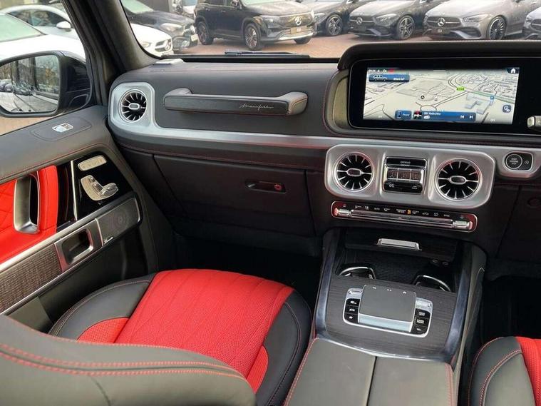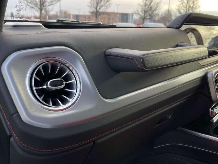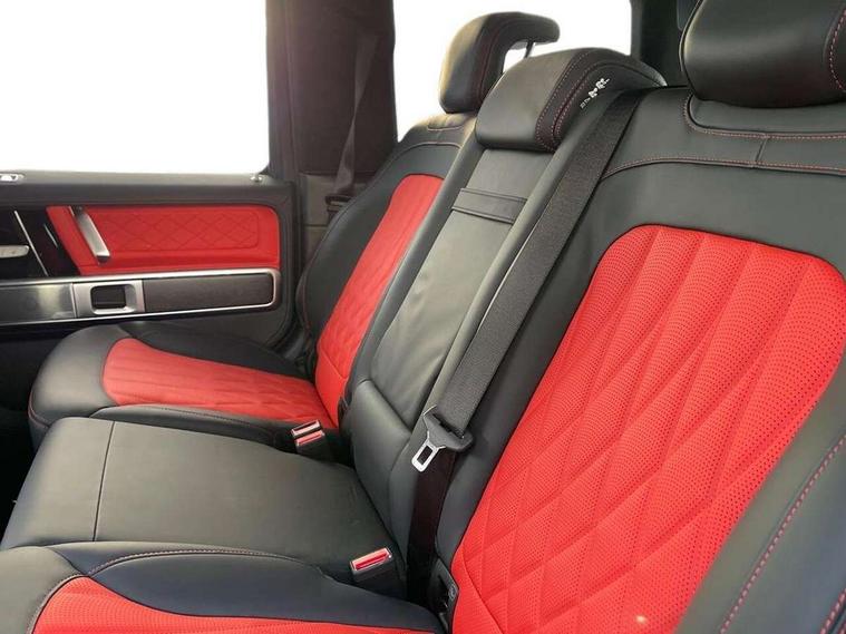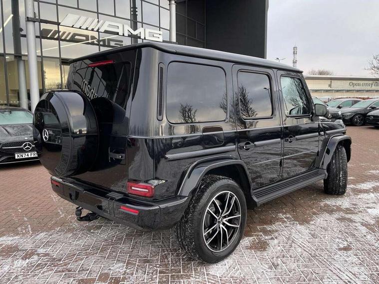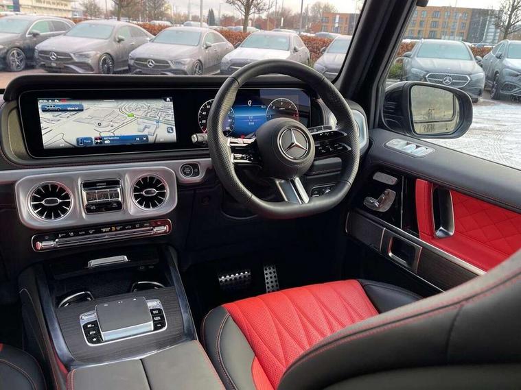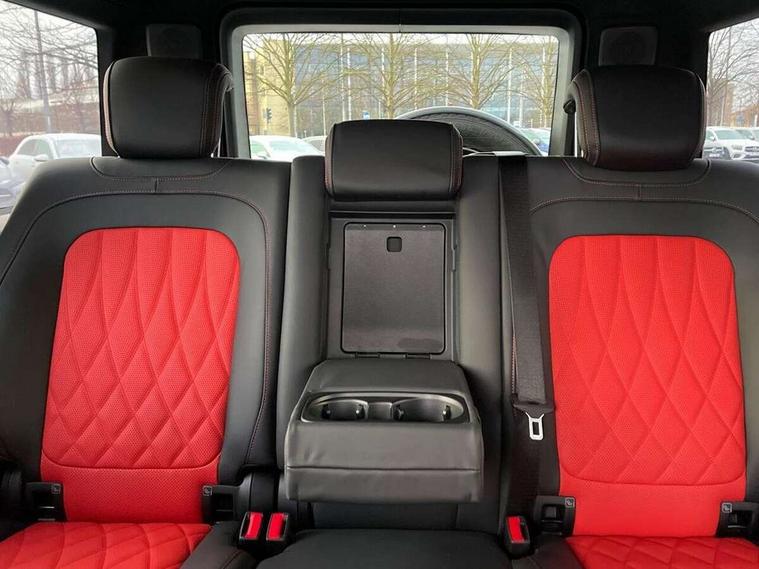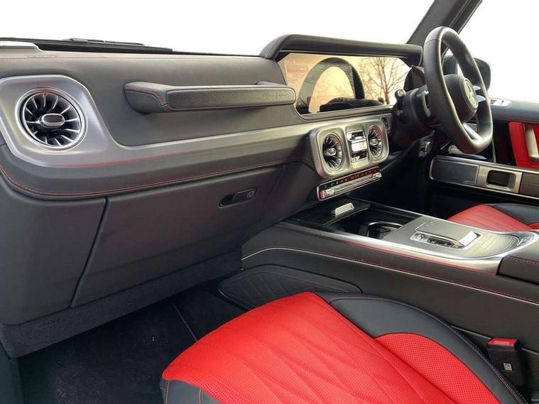 360 degree parking camera, Active parking assist with PARKTRONIC, Attention assist, Bluetooth interface for hands free telephone, Communications module (LTE), Cruise control with variable speed limiter, DYNAMIC SELECT - 7 drive programmes (Comfort, eco, sport, individual, trail, rock, sand), MBUX augmented reality for navigation, Mercedes connect me, Mercedes-Benz emergency call, PAS, Passive person presence reminder, Remote Services Premium, Service indicator (ASSYST), Smartphone integration with Apple CarPlay and Android auto, Trip computer, Widescreen cockpit with dual bonded 12.3" widescreen displays, Wireless charging, 4MATIC permanent four wheel drive, 9G-TRONIC transmission, Diesel particulate filter (DPF), Differential lock, Low range gear reduction (Electronically selectable while driving), Suspension with selective passive damping system, 2 USB ports in the rear, Aux-in socket, Burmester 3D surround sound system, DAB digital radio tuner, MBUX multimedia system, Sound personalisation, 3rd brake light, Adaptive highbeam assist plus - automatic low high beam switching, AMG Line exterior, Automatic headlamp activation, Automatically dimming rear view mirror, Bumper insert in stainless steel, Dark tinted heat insulated glass, Door mirrors - Electrically adjustable/heated/integrated indicators, front area lighting and automatically dimming driver's mirror, Electric sunroof sliding, with one-touch opening, Front and rear electric windows, Heated windscreen, LED daytime running lights, Memory function for exterior mirrors, Multibeam LED headlights with anti-dazzle feature, Privacy glass - Dark glass from B-pillar backwards, Rain sensor windscreen wipers, Rear side wing doors, Rear wiper, Tail lights featuring LED technology, Towbar, Trailer coupling with ESP trailer stabilisation, Transparent Bonnet, Underguard in silver, 1/3 to 2/3 split folding rear seats, 12V socket in centre console, rear and load compartment, 2 cup holders in front and rear, 3 seat bench in 2nd row, Ambient lighting with 64 colours and projection of brand logo, AMG floor mats with AMG lettering, AMG sports seats, Centre armrest between front seats with integrated stowage compartment, Cushion length adjustment with gapless cushion, Designo dinamica microfibre roof lining in Black, Electrically adjustable steering column, with automatic adjustment for entry/exit, Exclusive line interior, Front head restraints, Heated rear seats, Heated steering wheel, Ionisation of interior air including fine particle activated charcoal filter system, Luggage compartment cover, Memory function for front seats, Memory function for head restraints and steering wheel, Multifunction sports steering wheel in nappa leather, Partition net, Rear head restraints, Single front passenger seat, THERMOTRONIC automatic climate control system with 3 climate zones and 3 climate styles - Medium, Diffuse and Focused, Stowage space pack - G class, 3x3 point rear seatbelts, ABS with Brake Assist, Airbags - windowbags, Brake calipers with Mercedes-Benz lettering, Driver/Front Passenger airbags, Electronic four wheel traction control, ESP with ASR, Front side airbags, Hill start assist, i-Size child seat attachment system for the outer rear seats, PRE-SAFE system for preventive occupant protection, Rear door child safety locks, Rear side airbags, Seat belts, 3-point design in black, Seatbelt pretensioners, Tyre pressure monitoring system, Anti-theft alarm system/interior protection with tow-away protection and interior monitoring systems, Dashcam, Guard 360 degree vehicle protection plus, Immobiliser, Keyless Go starting function, Full size spare wheel,