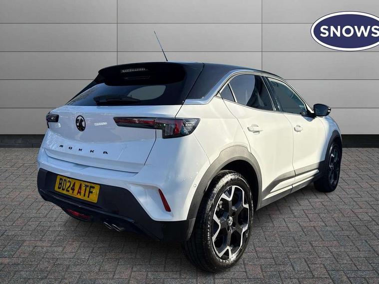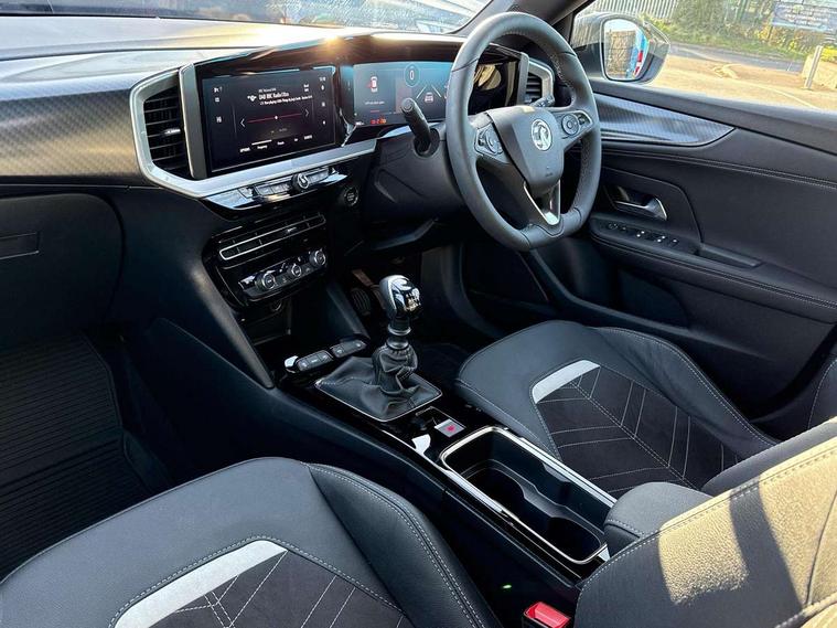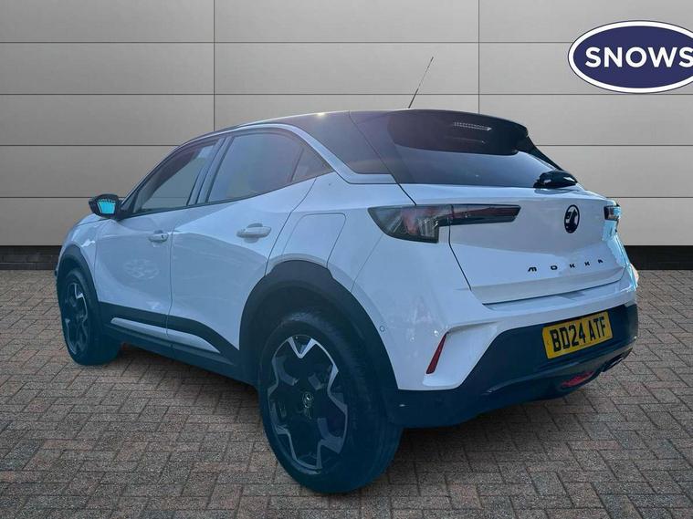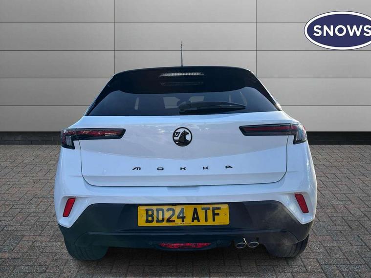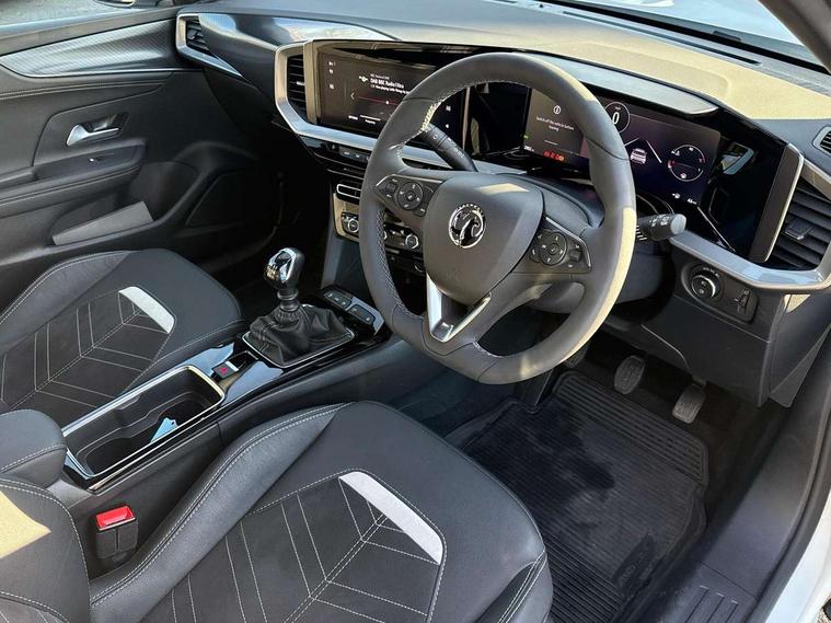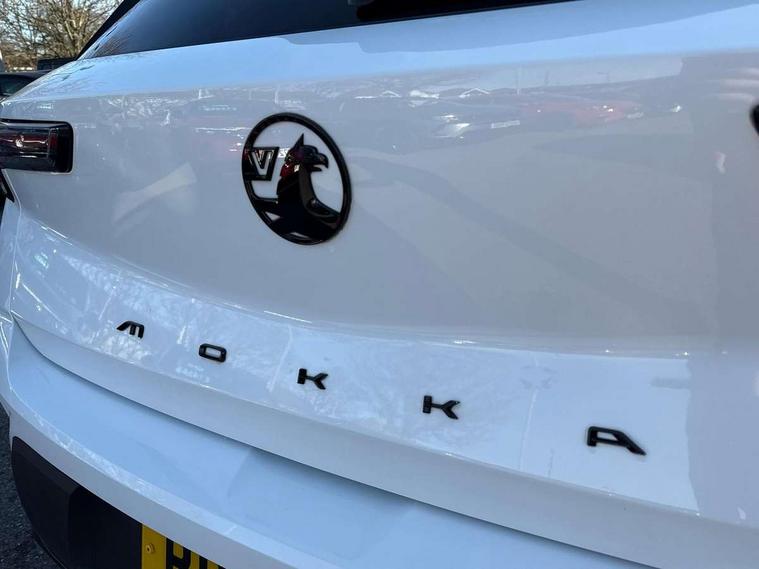 12" digital instrument cluster, Adaptive cruise control with speed limiter, Digital instrumentation with digital speedometer, rev counter, fuel and water temperature gauge, Driver drowsiness alert system, Driver information display with multi function trip computer, audio info, digital clock and outside air temperature with ice warning function, Engine start/stop button, EV information display, Extended traffic sign recognition, Front and rear parking distance sensors, Front camera and radar system, Gearshift up/down indication light, Lane keep assist system (LAS) with Lane departure warning system (LDWS), Lights on audible warning, Panoramic rear view camera, Power assisted speed sensitive steering, RDS with traffic programme, Side blind spot alert and flank guard, Smartphone integration compatible with Apple CarPlay and Android Auto, Sports switch with engine sound enhancement, Start/stop system, Vauxhall connect with e-Call, 6 speed manual transmission, 6 speakers, AM/FM stereo radio with 36 station presets, DAB Digital radio, Flexible Roof Mounted Radio Aerial, Front USB connection, Mobile phone portal - bluetooth connect, vehicle microphone, handsfree calls, SMS read out and reply, phone book access, Multimedia Navi Pro with 10" colour touchscreen, Steering wheel mounted controls, Two rear USB sockets, Adaptive brake lights, Auto high beam assist, Automatic headlamp levelling, Automatic lighting control with tunnel detection, Automatically dimming anti dazzle rear view mirror, Black door mirror housings, Black front and rear bumper inserts, Black Griffin logo and vizor frame, Black upper window moulding, Body colour door handles, Body colour front and rear bumpers, Dark tinted rear side windows + tailgate window, Electric adjustable/heated/folding door mirrors + puddle lights, Electrically operated front and rear windows with safety auto reverse and one touch up/down facility, Hazard warning lights, Heated rear window+rear wash/wipe, Integrated black tailgate spoiler, IntelliLux Matrix LED headlights with adaptive forward lighting with anti glare beam, LED 3rd brake light, LED daytime running lights, LED front fog lamps, LED side repeat indicators, LED tail lights, Rear foglight, Rear side wing doors, Reversing light, Solar heat absorbing windscreen and windows, Two speed rain-sensitive windscreen wipers with variable intermittent wipe, Windscreen and side window demist vents, 12V Accessory socket, 3 seat bench in 2nd row, 3 spoke flat bottomed leather effect steering wheel with satin chrome effect bezel, 4 speed fan with illuminated controls, 4 Way driver seat with lumbar and massage function, 6 way manual adjustable driver fore/aft, up/down with reclining seatback, 6 way manual adjustable front passenger fore/aft, up/down with reclining seatback, 60/40 split folding rear seat, Air recirculation system, Alcantara/leather upholstery, Black headliner, Cabin particulate filter - removes dust, airborne particles and pollen, Centre console with two cup holders at front and one in rear, Chrome effect interior door handles, Door pockets with two litre capacity, Driver and passenger sun visors with vanity mirror, Electronic climate control (ECC), Four adjustable facia vents, Four load restraint lashing eyes, Front centre armrest with storage, Front head restraints, Front map reading lights, Front seat back storage pockets, Fully carpeted load area, Heated front seats, Heated steering wheel, Interior courtesy light, Interior tailgate handle, Luggage compartment cover, Luggage compartment lighting, Movable boot floor, Reach + rake adjustable steering column, Single front passenger seat, Three height adjustable rear seat head restraints, Twin gas assisted tailgate struts, Black Pack with badge - Mokka, 2x Isofix child seat fitting on outer rear seats, 3x3 point rear seat belts, Anti-lock braking system (ABS), Child proof locks on rear doors, Cornering brake control, Deactivation switch for front passenger front and side impact airbags, Drag torque control, Driver and front passenger airbags, front seat side impact airbags, full size curtain airbags, Electronic brake force distribution, Electronic Stability Programme (ESP), Emergency brake assist, Enhanced automatic emergency braking with pedestrian detection, Forward collision alert at all speed, Hill start assist, Inertia reel lap and diagonal seatbelts for all seats, Seatbelt unfastened audible warning and warning light, Straight line stability control, Traction control, Tyre pressure monitoring system, Electronically protected audio equipment, Engine deadlock immobiliser, Freewheeling door locks, Key left in ignition audible warning, Keyless entry and start, Locking wheel nuts, Remote control central locking, Remote control ultrasonic security alarm system, Visible vehicle identification number, Black facia with silver trim insert, Instrument panel bar in polar silver, Light grey trim inserts on front doors, 18" bi colour alloy wheels,