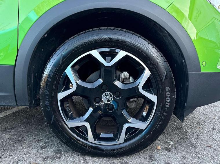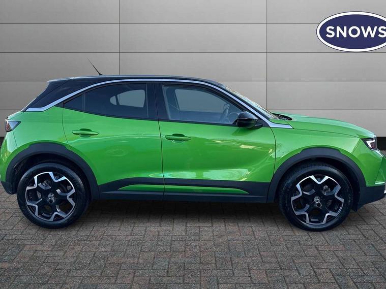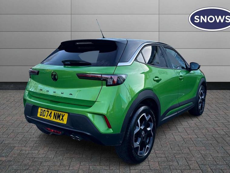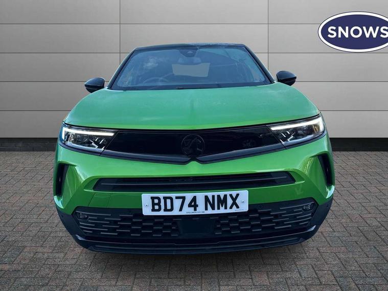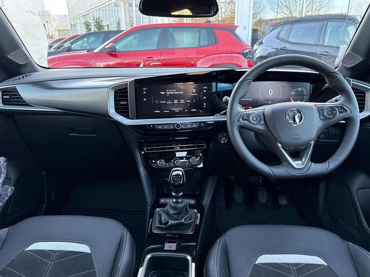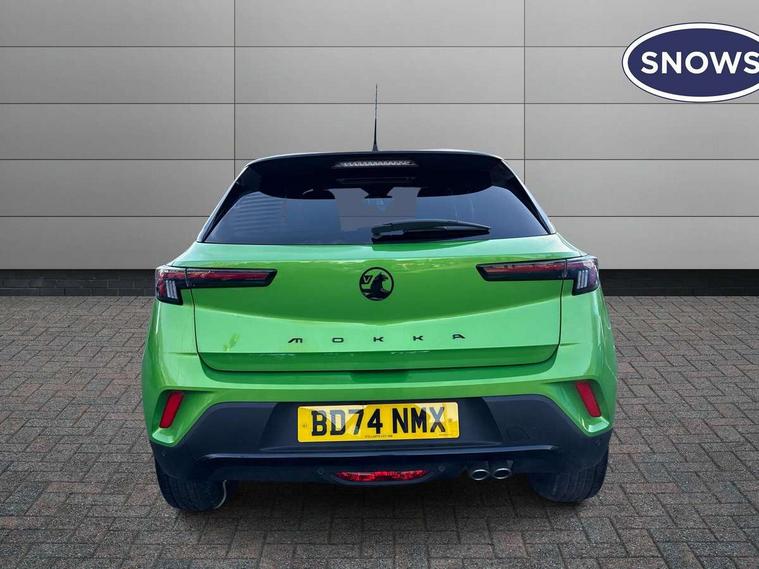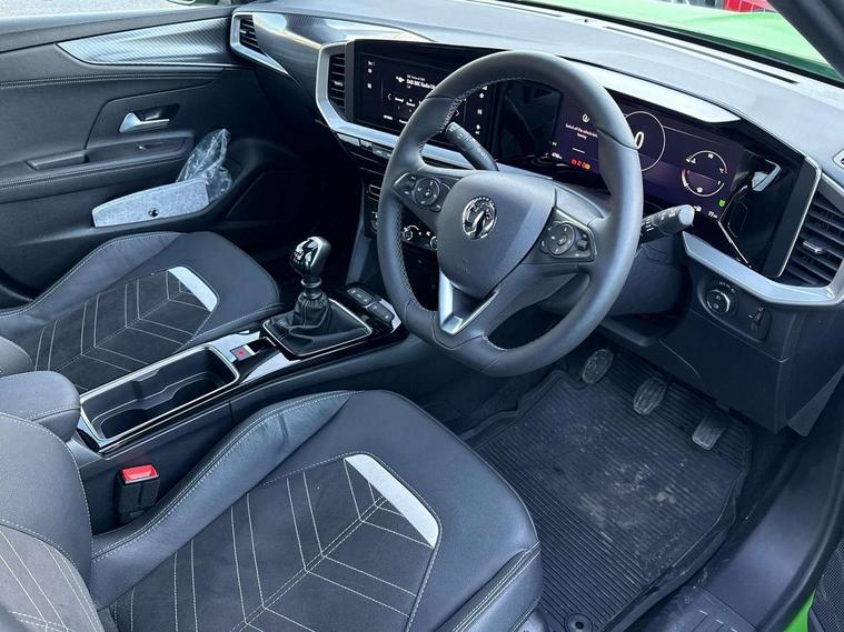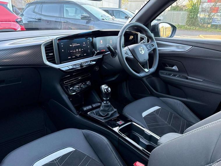 12" digital instrument cluster, Adaptive cruise control with speed limiter, Digital instrumentation with digital speedometer, rev counter, fuel and water temperature gauge, Driver drowsiness alert system, Driver information display with multi function trip computer, audio info, digital clock and outside air temperature with ice warning function, Engine start/stop button, EV information display, Extended traffic sign recognition, Front and rear parking distance sensors, Front camera and radar system, Gearshift up/down indication light, Lane keep assist system (LAS) with Lane departure warning system (LDWS), Lights on audible warning, Panoramic rear view camera, Power assisted speed sensitive steering, RDS with traffic programme, Side blind spot alert and flank guard, Smartphone integration compatible with Apple CarPlay and Android Auto, Sports switch with engine sound enhancement, Start/stop system, Vauxhall connect with e-Call, 6 speed manual transmission, 6 speakers, AM/FM stereo radio with 36 station presets, DAB Digital radio, Flexible Roof Mounted Radio Aerial, Front USB connection, Mobile phone portal - bluetooth connect, vehicle microphone, handsfree calls, SMS read out and reply, phone book access, Multimedia Navi Pro with 10" colour touchscreen, Steering wheel mounted controls, Two rear USB sockets, Adaptive brake lights, Auto high beam assist, Automatic headlamp levelling, Automatic lighting control with tunnel detection, Automatically dimming anti dazzle rear view mirror, Black door mirror housings, Black front and rear bumper inserts, Black Griffin logo and vizor frame, Body colour door handles, Body colour front and rear bumpers, Dark tinted rear side windows + tailgate window, Electric adjustable/heated/folding door mirrors + puddle lights, Electrically operated front and rear windows with safety auto reverse and one touch up/down facility, Hazard warning lights, Heated rear window+rear wash/wipe, Integrated black tailgate spoiler, IntelliLux Matrix LED headlights with adaptive forward lighting with anti glare beam, LED 3rd brake light, LED daytime running lights, LED front fog lamps, LED side repeat indicators, LED tail lights, Rear foglight, Rear side wing doors, Reversing light, Solar heat absorbing windscreen and windows, Two speed rain-sensitive windscreen wipers with variable intermittent wipe, Windscreen and side window demist vents, 12V Accessory socket, 3 seat bench in 2nd row, 3 spoke flat bottomed leather effect steering wheel with satin chrome effect bezel, 4 speed fan with illuminated controls, 4 Way driver seat with lumbar and massage function, 6 way manual adjustable driver fore/aft, up/down with reclining seatback, 6 way manual adjustable front passenger fore/aft, up/down with reclining seatback, 60/40 split folding rear seat, Air recirculation system, Alcantara/leather upholstery, Black headliner, Cabin particulate filter - removes dust, airborne particles and pollen, Centre console with two cup holders at front and one in rear, Chrome effect interior door handles, Door pockets with two litre capacity, Driver and passenger sun visors with vanity mirror, Electronic climate control (ECC), Four adjustable facia vents, Four load restraint lashing eyes, Front centre armrest with storage, Front head restraints, Front map reading lights, Front seat back storage pockets, Fully carpeted load area, Heated front seats, Heated steering wheel, Interior courtesy light, Interior tailgate handle, Luggage compartment cover, Luggage compartment lighting, Movable boot floor, Reach + rake adjustable steering column, Single front passenger seat, Three height adjustable rear seat head restraints, Twin gas assisted tailgate struts, Black Pack with badge - Mokka, 2x Isofix child seat fitting on outer rear seats, 3x3 point rear seat belts, Anti-lock braking system (ABS), Child proof locks on rear doors, Cornering brake control, Deactivation switch for front passenger front and side impact airbags, Drag torque control, Driver and front passenger airbags, front seat side impact airbags, full size curtain airbags, Electronic brake force distribution, Electronic Stability Programme (ESP), Emergency brake assist, Enhanced automatic emergency braking with pedestrian detection, Forward collision alert at all speed, Hill start assist, Inertia reel lap and diagonal seatbelts for all seats, Seatbelt unfastened audible warning and warning light, Straight line stability control, Traction control, Tyre pressure monitoring system, Electronically protected audio equipment, Engine deadlock immobiliser, Freewheeling door locks, Key left in ignition audible warning, Keyless entry and start, Locking wheel nuts, Remote control central locking, Remote control ultrasonic security alarm system, Visible vehicle identification number, Black facia with silver trim insert, Instrument panel bar in polar silver, Light grey trim inserts on front doors, 18" bi colour alloy wheels,