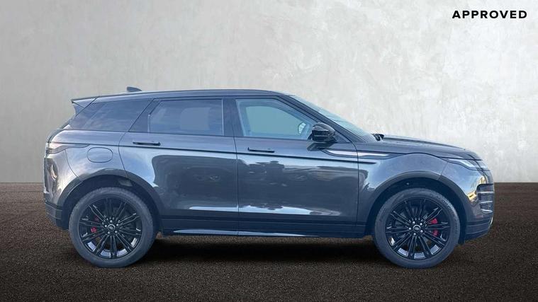 11.4" touch screen, Adaptive cruise control, Android Auto, Apple car play, Blind spot assist, Bluetooth connectivity, Brake pad wear indicator warning light, Driver condition monitor, eCall emergency system, Eco mode, Electronic power assisted steering (EPAS), Front and rear parking aid, InControl remote, Interactive driver display, Land Rover InControl apps, Lane keep assist, Pivi pro connected includes diamond pivi variant, smart settings, connected navigation pro, nuance speech licence, Powered tailgate/boot lid, Rear collision monitor, Rear traffic monitor, Traffic sign recognition with adaptive speed limiter, Voice control system, Wireless device charging, All terrain progress control, Electric rear axle drive, Home charging cable, Large fuel tank, Passive suspension, Public charging cable, Terrain Response 2, Digital Audio Broadcast radio-DAB, Steering wheel mounted controls, Acoustic laminated windscreen, Auto headlights, Auto high beam assist, Automatic headlight levelling, Electric windows with one touch open/close and anti trap, Flush deployable exterior door handles, Front and rear recovery eyes, Heated rear window with timer, Heated washer jets, Heated windscreen, LED headlights with signature DRL and LED tail Lights, Power fold, auto-dimming, heated door mirrors with approach lights and auto dimming driver side, Rain sensing windscreen wipers, Rear animated directional indicators, Rear fog lights, Rear side wing doors, Rear wiper, Side repeater indicators in mirror, Tailgate spoiler, Third brake light, Winter wiper park position, 12 way driver memory and 10 way passenger electric front seats with 2 way manual headrest + 4 way lumbar support, 40:20:40 split folding rear seats with centre headrest and armrest, Ambient interior lighting, Bright metal pedals, Carpet mats, Chrome tread plates with range rover branding Includes stainless steel loadspace scuff plate with etched graphic, Customer configurable single point entry, Front and rear cupholders, Heated front seats, Heated steering wheel, Isofix system on outer rear seats, Manually adjustable steering column, Overhead lighting console, Overhead stowage for sunglasses, Passive front head restraints, Rear air vents, Rear head restraints, Satin chrome gearshift paddles, SE Grained leather upholstery, Single passenger seat, Standard steering wheel with Moonlight Bezel, Sunvisors with illuminated vanity mirrors, Twin sliding front centre armrest, Online pack with data plan - Evoque, Power socket pack 2 - Evoque, 3 rear 3 point seatbelts, Anti-lock braking system (ABS), Brake hold function, Customer configurable autolock, DSC - Dynamic Stability Control, Electronic brake force distribution, Electronic parking brake, Electronic traction control, Emergency braking, Front and rear seatbelt reminder, Hill descent control, Hill launch assist, Low traction launch, Occupant protection assist, Passenger seat occupant detector, Power operated child locks, Roll stability control, Six airbags - Driver and passenger airbags/driver knee airbag/front side airbag and curtain airbags, Torque vectoring brake, Tyre pressure monitoring system, Alarm, Immobiliser, Intrusion sensor, Keyless entry, Locking wheel nuts,