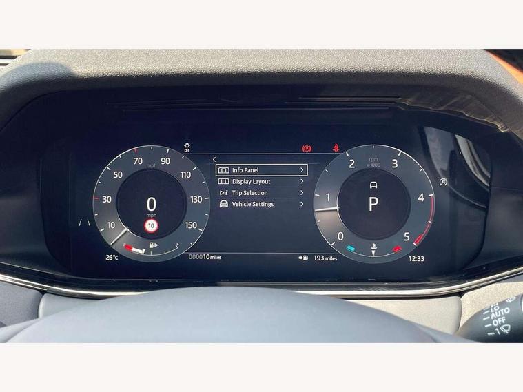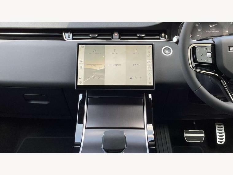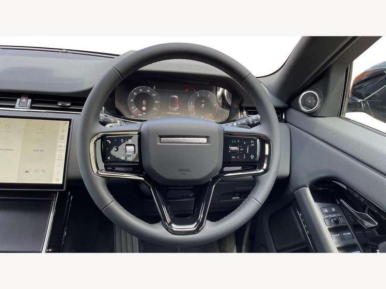 11.4" touch screen, 3D 360 degree surround camera with wade sensing, Adaptive cruise control, Android Auto, Apple car play, Blind spot assist, Bluetooth connectivity, Brake pad wear indicator warning light, Driver condition monitor, eCall emergency system, Eco mode, Electronic power assisted steering (EPAS), Front and rear parking sensors with auto brake, InControl remote, Interactive driver display, Land Rover InControl apps, Lane keep assist, Pivi pro connected includes diamond pivi variant, smart settings, connected navigation pro, nuance speech licence, Powered tailgate/boot lid, Rear collision monitor, Rear traffic monitor, Tailgate, Traffic sign recognition with adaptive speed limiter, Voice control system, Wireless device charging, All terrain progress control, Diesel exhaust fluid (DEF) large tank, Efficient Driveline, Large fuel tank, Terrain Response 2, Digital Audio Broadcast radio-DAB, Steering wheel mounted controls, Acoustic laminated windscreen, Auto headlights, Auto high beam assist, Automatic headlight levelling, Electric windows with one touch open/close and anti trap, Flush deployable exterior door handles, Front and rear recovery eyes, Heated rear window with timer, Heated washer jets, Heated windscreen, LED headlights with signature DRL and LED tail Lights, Power fold, auto-dimming, heated door mirrors with approach lights and auto dimming driver side, Rain sensing windscreen wipers, Rear animated directional indicators, Rear fog lights, Rear side wing doors, Rear wiper, Side repeater indicators in mirror, Tailgate spoiler, Third brake light, Winter wiper park position, 12 way driver memory and 10 way passenger electric front seats with 2 way manual headrest + 4 way lumbar support, 40:20:40 split folding rear seats with centre headrest and armrest, Ambient interior lighting, Bright metal pedals, Carpet mats, Chrome tread plates with range rover branding Includes stainless steel loadspace scuff plate with etched graphic, Customer configurable single point entry, Front and rear cupholders, Heated front seats, Heated steering wheel, Isofix system on outer rear seats, Manually adjustable steering column, Overhead lighting console, Overhead stowage for sunglasses, Passive front head restraints, Rear air vents, Rear head restraints, Satin chrome gearshift paddles, SE Grained leather upholstery, Single passenger seat, Standard steering wheel with Moonlight Bezel, Sunvisors with illuminated vanity mirrors, Twin sliding front centre armrest, Power socket pack 2 - Evoque, 3 rear 3 point seatbelts, Anti-lock braking system (ABS), Brake hold function, Customer configurable autolock, DSC - Dynamic Stability Control, Electronic brake force distribution, Electronic parking brake, Electronic traction control, Emergency braking, Front and rear seatbelt reminder, Hill descent control, Hill launch assist, Low traction launch, Occupant protection assist, Passenger seat occupant detector, Power operated child locks, Roll stability control, Six airbags - Driver and passenger airbags/driver knee airbag/front side airbag and curtain airbags, Torque vectoring brake, Tyre pressure monitoring system, Alarm, Immobiliser, Intrusion sensor, Keyless entry, Locking wheel nuts, All season tyres,
