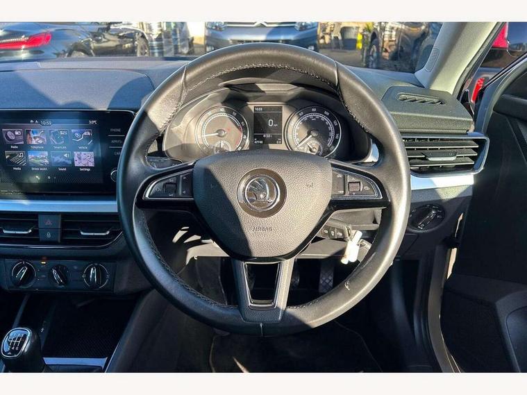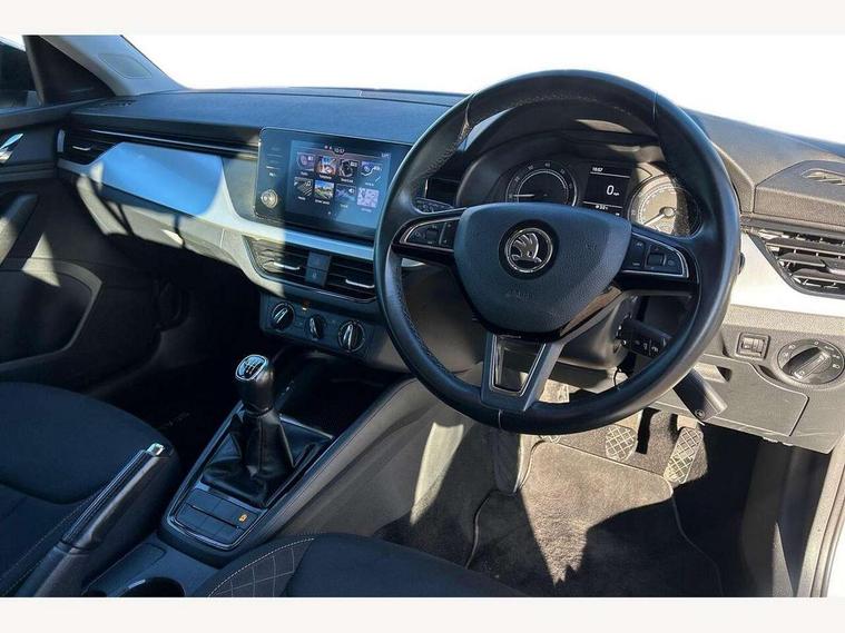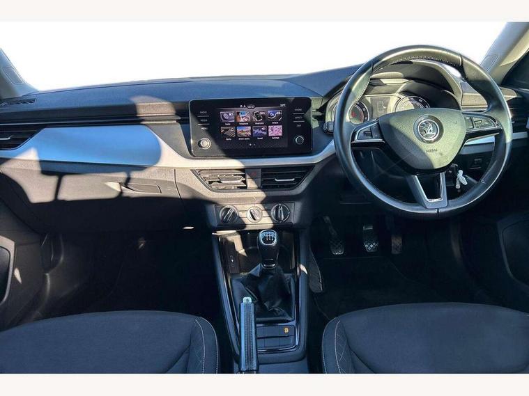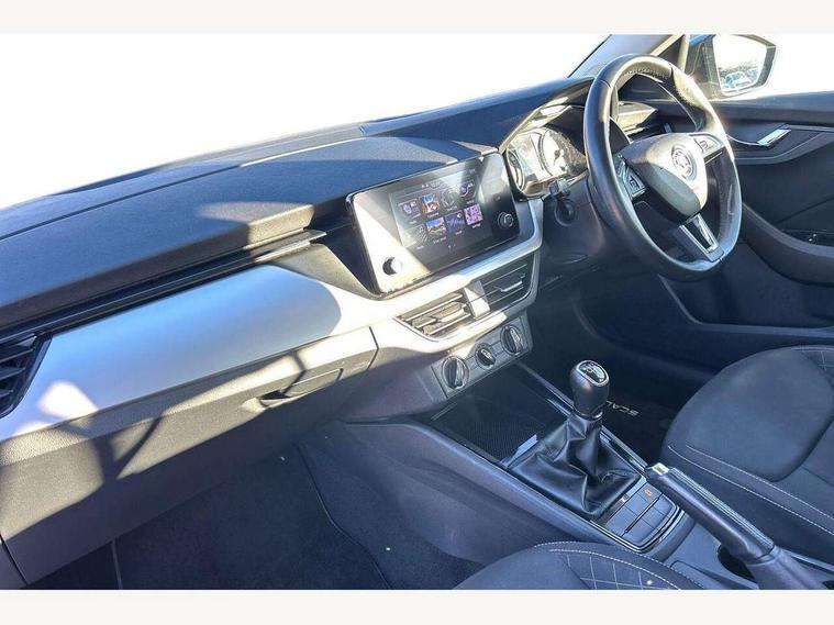 Bluetooth system, Easy light assist, Front assist system, Lane assist, Multi function trip computer, Rain and light assist with auto dimming rear view mirror, Speed limiter, 2 USB - C ports, 8 loudspeakers, Bolero radio with 8" touchscreen display, DAB Digital radio, Body colour door mirrors and handles, Chrome grille surround, Electrically adjustable and heated door mirrors, Front and rear electric windows, Tinted windows, 12V Accessory socket in centre console, 12V socket in luggage compartment, Chrome inner door handles, Cloth upholstery, Decor strip on dashboard and door panel, Glasses storage in roof liner, Glovebox with cooling system and illumination, Height adjustable drivers seat, Height adjustable passenger seat, Instrument cluster with chrome painted decor ring, ISOFIX for rear passenger seat, Leather gearknob and handbrake lever, Reading lights for driver and front passenger, Storage compartment under front seats, Sun visor with make up mirror for front passenger, Third rear headrest, Umbrella, Curtain airbags, Emergency call and proactive services, Front head and side airbags, Hill hold control, Passenger airbag switch off function, Seat belt reminder for all seats, Two tone horn, Alarm, Anti-theft wheel bolts, SAFE function for remote central locking, Temporary space saver wheel,