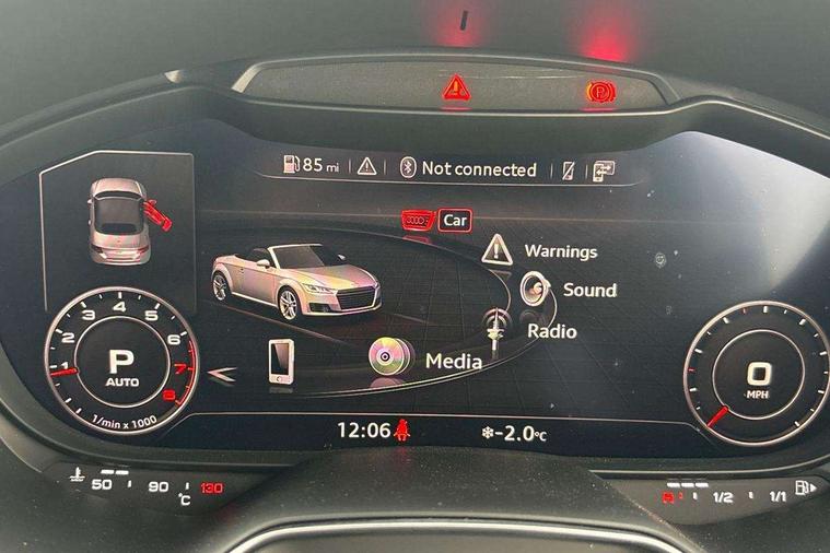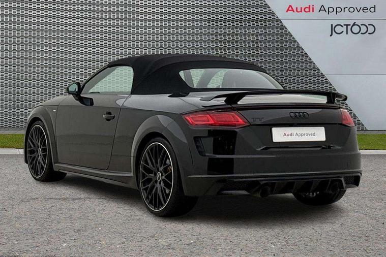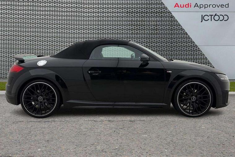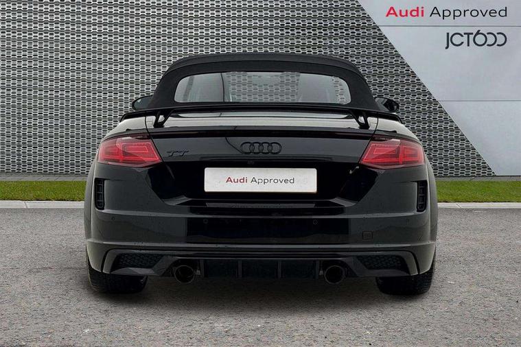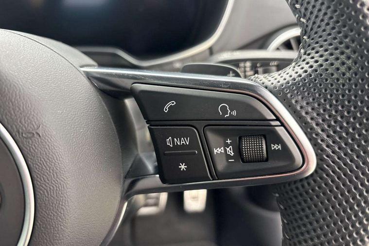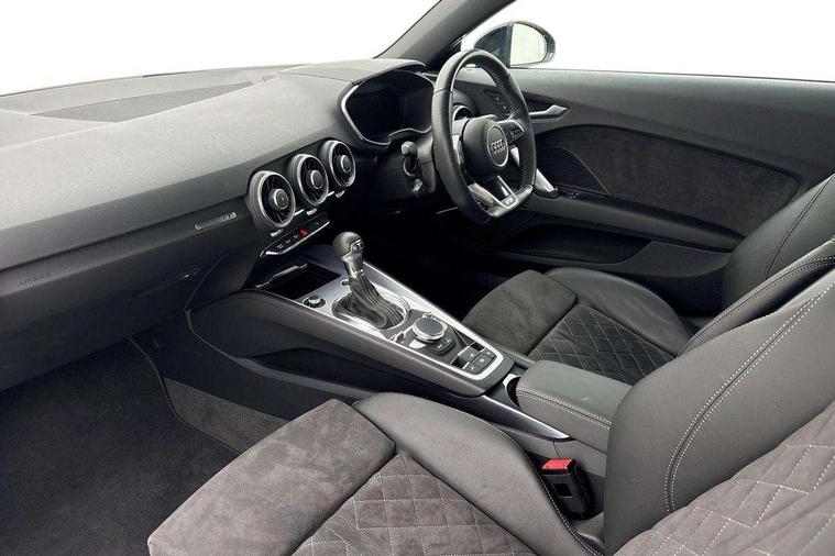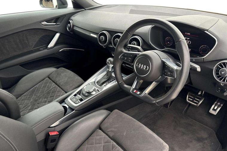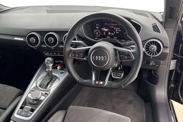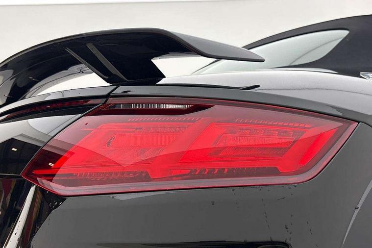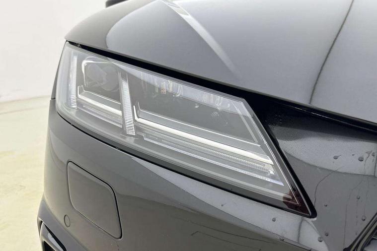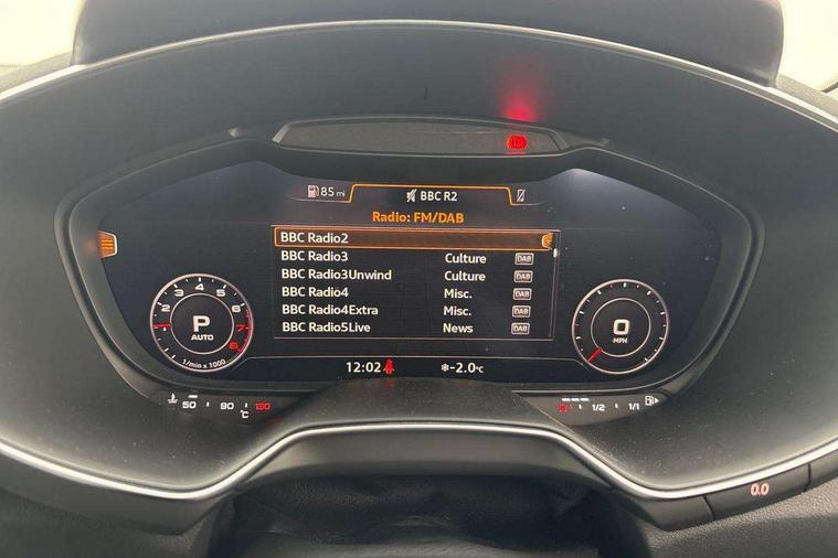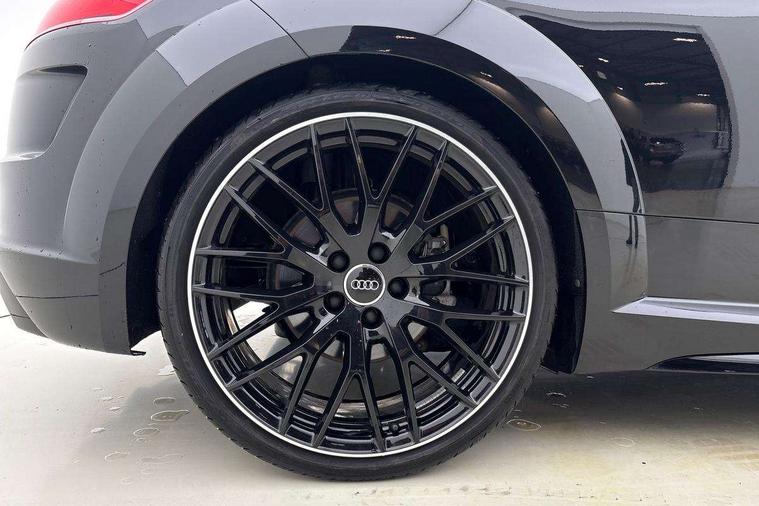 Audi drive select with 4 Pre configured modes, Audi smartphone interface, Audi virtual cockpit - 12.3" high-resolution LCD display with fully customisable instrument cluster, Cruise control + speed limiter, Emergency call service, MMI touch panel, Mobile phone preparation with bluetooth interface, Progressive power assisted steering, Seat belt microphone, Service interval indicator, Start/Stop system with energy recuperation, TP memo, Sports suspension, AM/FM radio, Bluetooth audio streaming, DAB Digital radio, MMI Radio with CD player and SD/XC card slot, Auto dimming rear view mirror, Auto headlight range control, Black chrome tailpipe, Electric folding door mirrors, Electric front windows, Electrically adjustable and heated door mirrors with integrated LED side indicators, Electrically operated wind deflector, Front fog lights, Fully automatic acoustic hood, Heat insulating glass in windshield, Heat reflecting windows, LED 3rd brake light, LED daytime running lights, LED headlights with LED rear lights + dynamic rear indicators, Light and rain sensors, Rear boot, 12V socket, 3 spoke flat bottomed high multi-function leather sport steering wheel with gearshift paddles, 4 way electric lumbar support for driver and front passenger, Black headlining, Black roll bar, Contrasting silver stitching in steering wheel, Door sill trims, Extended aluminium look with stainless steel pedals, Front centre armrest, Front passenger seat, Front super sports seats, Heated front seats, Height/reach adjust steering wheel, Integrated head restraints, ISOFIX child seat mounting for front passenger seat with airbag deactivation, Manual adjustment of seat height, fore/aft position, seat angle, seat depth and backrest angle, Perforated leather gearknob in black, Black styling pack - TT, Non smoking pack - TT/TT RS, 3 point front seat belts, ABS, ASR traction control, Driver and front passenger airbag with front passenger airbag deactivation, EDL traction control, Electromechanical parking brake, ESP, First aid kit, Front side airbags, Hill hold assist, Seatbelt warning, Tyre pressure loss indicator, Warning triangle, Anti theft alarm, Anti theft wheel bolts, Immobiliser, Keyless Go, Remote central locking, Matt brushed aluminium inlays, 20" 10 Y spoke gloss black diamond cut alloy wheels, Tool kit, Tyre repair kit,