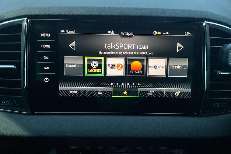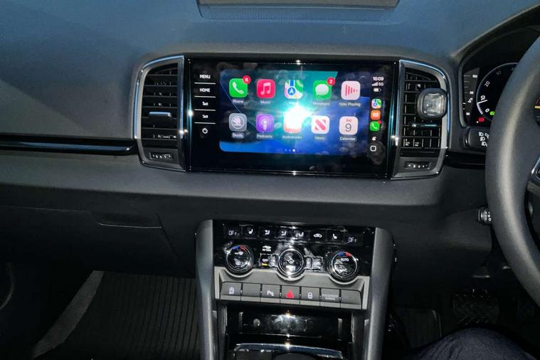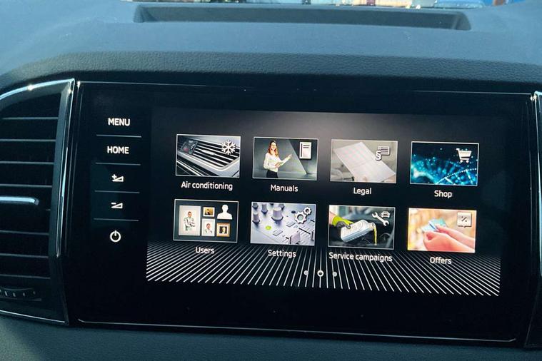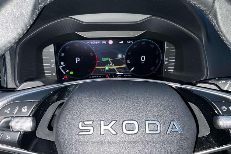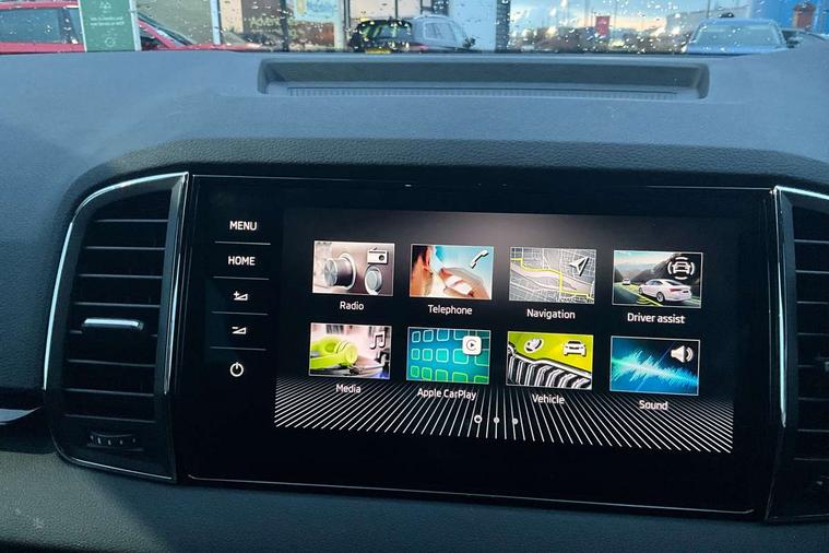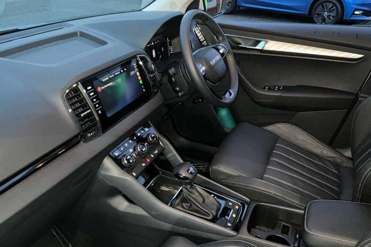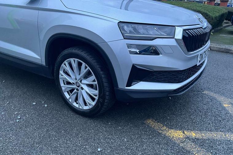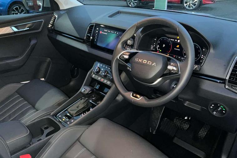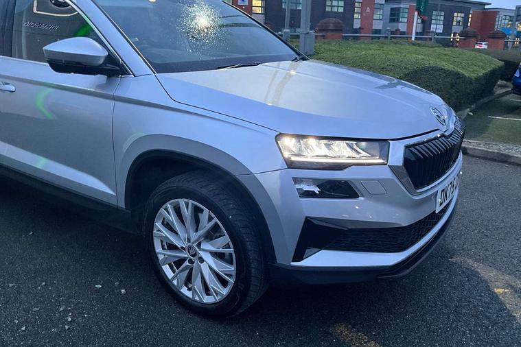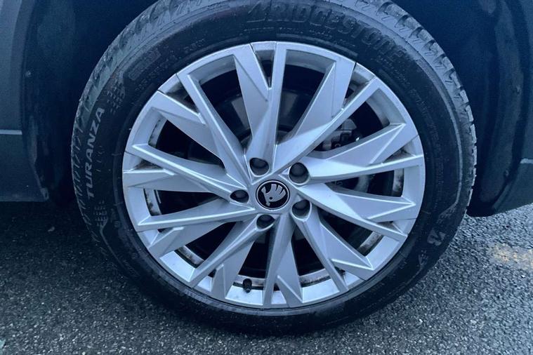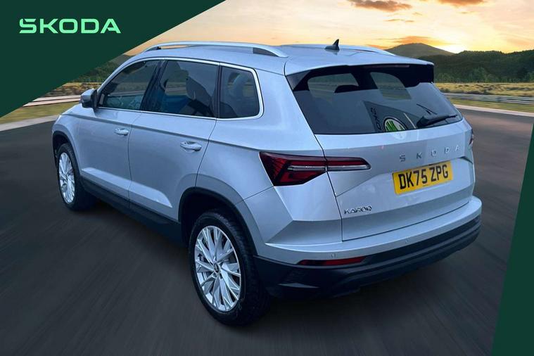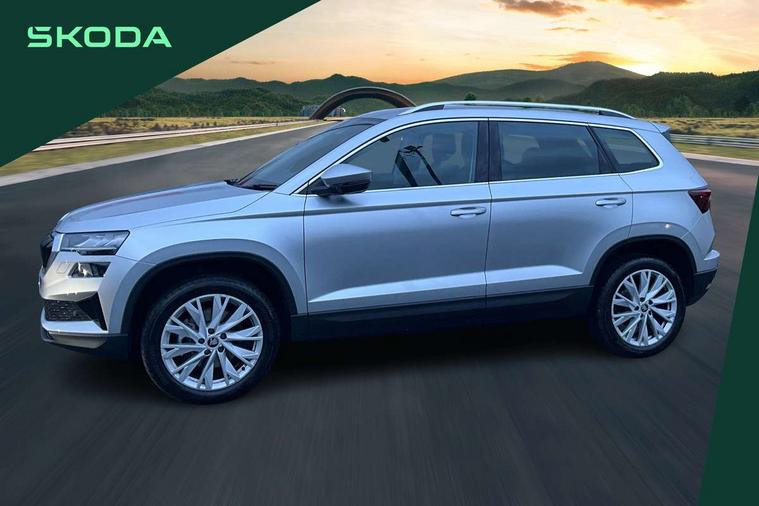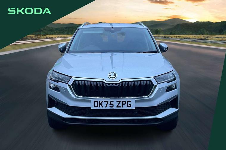 Advanced driver attention and drowsiness monitor, Drive Mode Selection including ECO function, Electro-mechanical PAS, Emergency services call system, Outside temperature gauge, Sensor for driver assistance systems, Service interval indicator, SmartLink wireless for Apple and wired for Android, Start/stop system with regenerative braking, Traffic sign recognition, USB C Port x 2 in front centre console, Virtual Cockpit - 10.25" digital display, Virtual pedal with electrically operated boot door, Wireless smartphone charging, DAB radio with Bluetooth, USB connection, Acoustic glass, Aero front windscreen wipers with intermittent function, Auto dimming rear view mirror with light and rain sensors, Black electric window control buttons, Body colour door mirrors and handles, Electric front and rear windows with child proof lock, Extended rear roof spoiler, Heated rear windscreen, LED daytime running lights, LED rear lights with high functionality welcome effect and dynamic indicators, Light assistant (coming/leaving home/tunnel light), Plastic scuff plates in door apertures, Privacy glass, Rear side wing doors, Rear window wiper with washer system and intermittent control, Safety reflectors on front doors, Third brake light, Unique dark chrome design logo on alloy wheels, 1.5 litre bottle holders in driver and front passenger door panels, 12V socket in boot, 12v socket in front centre armrest with storage compartment and rear air vents, 2 spoke leather heated multifunction steering wheel with DSG paddles, 2 x Tablet holder, 3 rear height adjustable headrests, 3 seat bench in 2nd row, 4 foldable roof handles with rear coat hooks, Black floor carpet, Cargo elements in boot, Chrome inner door handles, Decorative door sills with KAROQ badging, Foldable hooks in the boot, Front head restraints, Height adjustable front three point seats belts with tensioners, Height/reach adjust steering wheel, Ice scraper, Illuminated glovebox, Illuminated luggage compartment, Interior noise suppression, Isofix child seat preparation for front passenger seat, Isofix child seat preparation outer rear, Manual lumbar support for front seats, Pearl grey interior ceiling, Pen holder, Pollen filter, Rear boot cover, Rear package tray, Rear reading lights, Rubbish bin door, Safety vest holder, Single front passenger seat, Skoda lettering on steering wheel, Storage box in upper central dashboard closed, Sunvisors with illuminated vanity mirrors, Textile floor mats, Ticket holder, Columbus pack - Karoq, Design Pack - Karoq, Non Smokers pack, Parking pack - Karoq, Automatic door unlocking in case of crash, Automatic fuel cut off in case of crash, Driver airbag, Electronic parking brake with auto hold function, Emergency rear braking signal, ESC (incl. ABS+MSR+ASR+EDS+HBA+DSR+RBS+MKB), Front side airbags, Head airbags, Hill hold control, Knee airbags, Passenger airbag with switch-off function, Pedestrian monitor, Power operated child safety locks, Seatbelt reminder signalisation and pretensioner for all seats, Three point seatbelts rear, Two tone horn, Tyre pressure monitor, Alarm with interior monitoring, back up horn and tilt sensor with safe function, Electronic engine immobiliser, Keyless entry and start/stop, Remote central locking with 2 remote folding keys, Black centre console, Chrome framed air vents, Satin black dashboard, Anti-theft wheel bolts protection, Breakdown and tool kit,