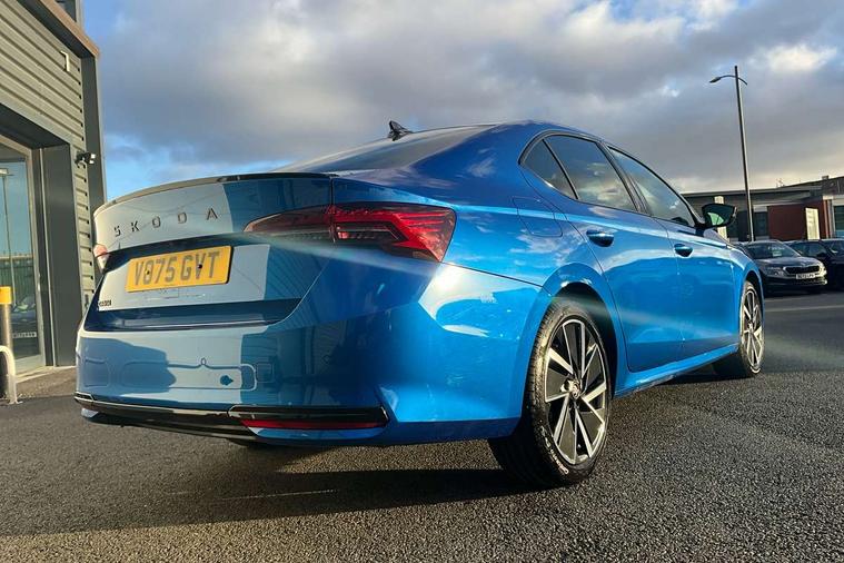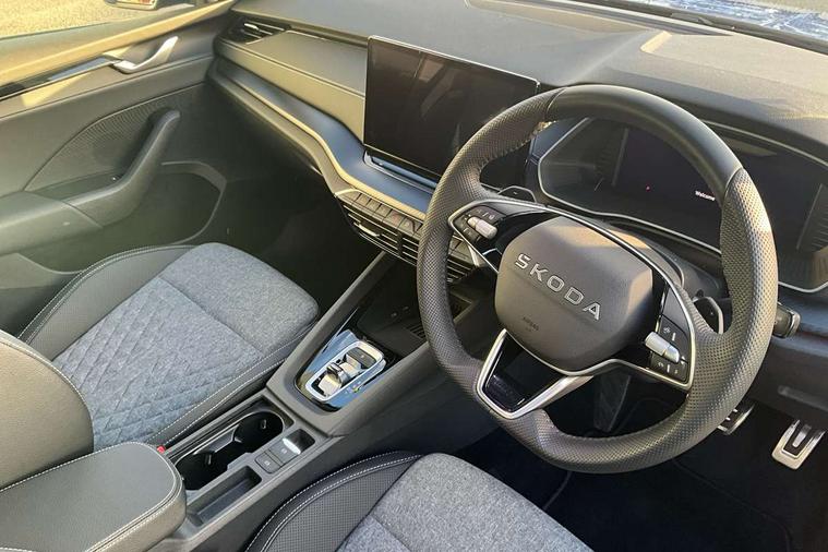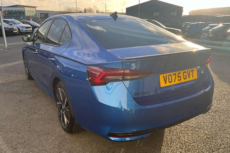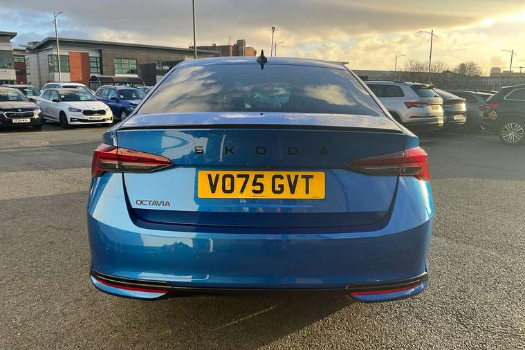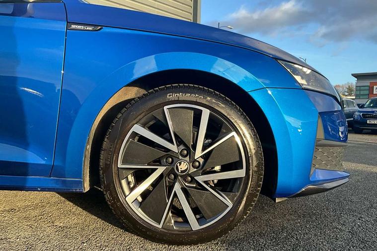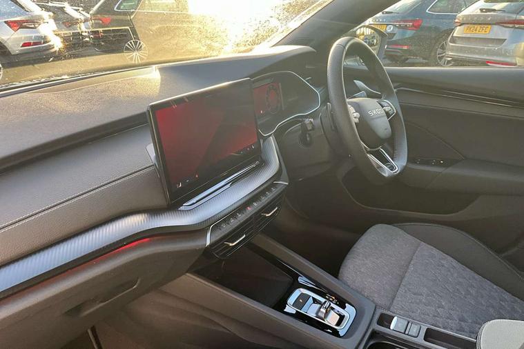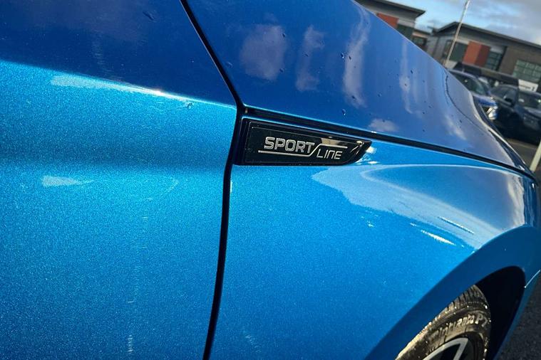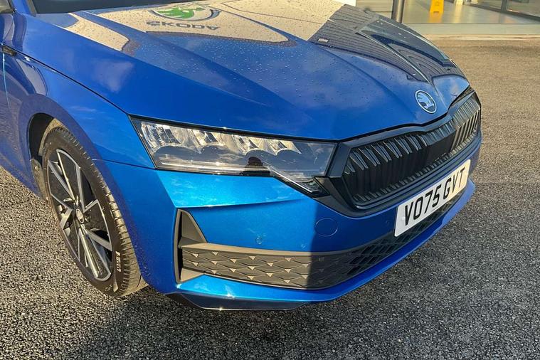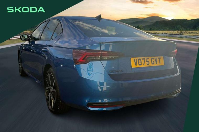 1x USB Typc C port in rear view mirror, 4x USB Type C ports - 2x in front centre console and 2x in rear (45W), Drive mode selection, Driver fatigue sensor, eCall emergency system, Front assist system, Progressive dynamic steering, Traffic sign recognition, Turn Assist, Virtual Cockpit - 10.25" digital display, Voice control system, Wireless charging (15W) with cooling function, Wireless SmartLink for Apple CarPlay and Android Auto, Sports suspension with 15mm lower, 13" touchscreen display with navigation, DAB Digital radio, Aero front windscreen wipers with intermittent function, Auto dimming rear view mirror, Body colour bumpers, Body colour door handles, Chrome strip in lower front bumper, Electric front and rear windows, Exterior gloss black sports styling including front grille, window surrounds, door mirrors and badging, Gloss black diffuser, Gloss black spoiler, Heated rear windscreen, High beam control, High level third brake light, Ice scraper in fuel cap, LED daytime running lights, Logo projection in front doors, Rain and light sensors, Rear fog light on one side and reversing lights on both sides, Rear privacy glass, Rear side wing doors, Rear wiper, 12 volt socket in boot, 3 rear headrests, 3 seat bench in 2nd row, 4 foldable roof handles, Aluminium pedals, Boot net programme, Front head restraints, Front sport seats, Heated front seats, Illuminated glovebox, Interior door handles in dark chrome, Jumbo Box storage, Luggage compartment lighting x2 lights, Mechanical rear seat release from boot, Parcel shelf - folding, Single front passenger seat, Steering wheel in black leather with black stitching, Storage compartments in left and right of boot, Sun visors with mirrors, Sunglasses storage, Three spoke leather sports multifunction steering wheel with paddles, Ticket holder, Umbrella in door panel, Unsplit rear bench seat, split folding backrest with centre armrest with cupholder, SportLine Design Selection pack - Octavia, 3x3 point rear seat belts, Alarm with interior monitoring, tilt sensor and back up horn, Curtain airbags and front side airbags, Driver and front passenger airbags, Drivers knee airbag, Electronic parking brake, ESC including ABS, EBV, MSR, ASR, EDS, HBA, DSR, Front central airbag, Hill hold assist, ISOFIX on front passenger seat and outer rear seats, Passenger airbag deactivate switch, Three point seat belts in front and rear, Two tone horn, Tyre pressure monitor, Visual and acoustic seat belt reminder, Warning reflectors in front door, Anti-theft wheel bolts, Keyless entry and start/stop, Remote central locking, Gloss black air vent surrounds,