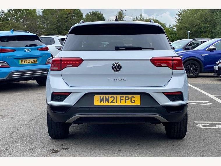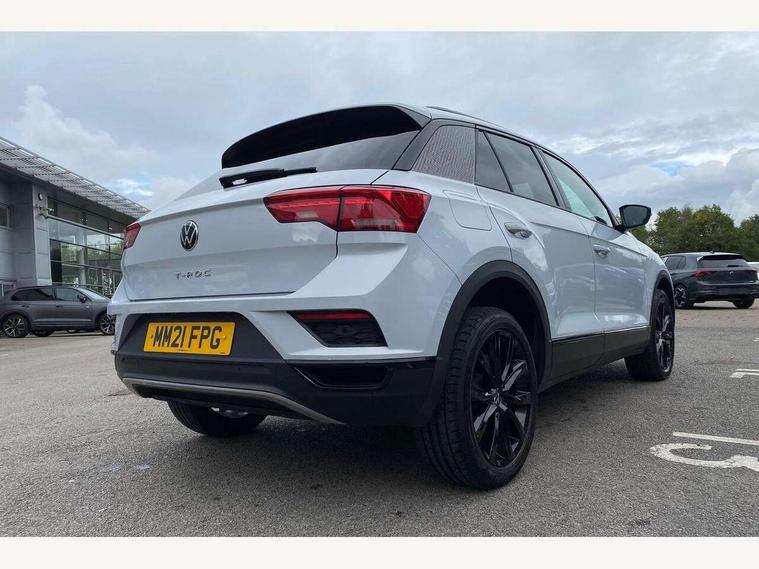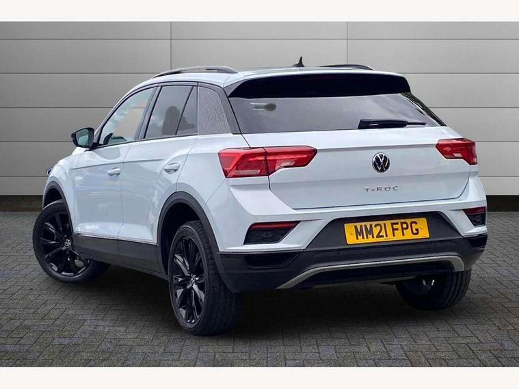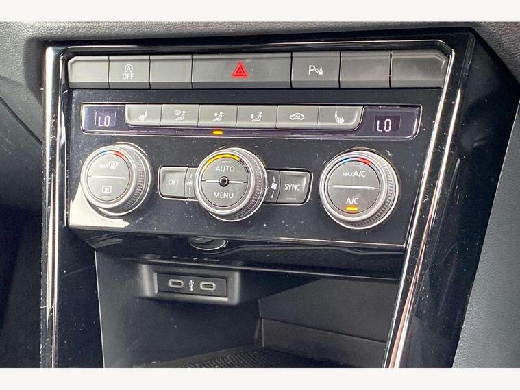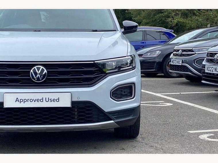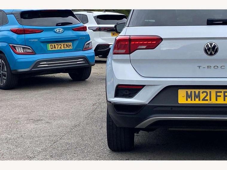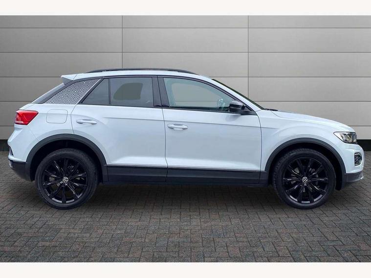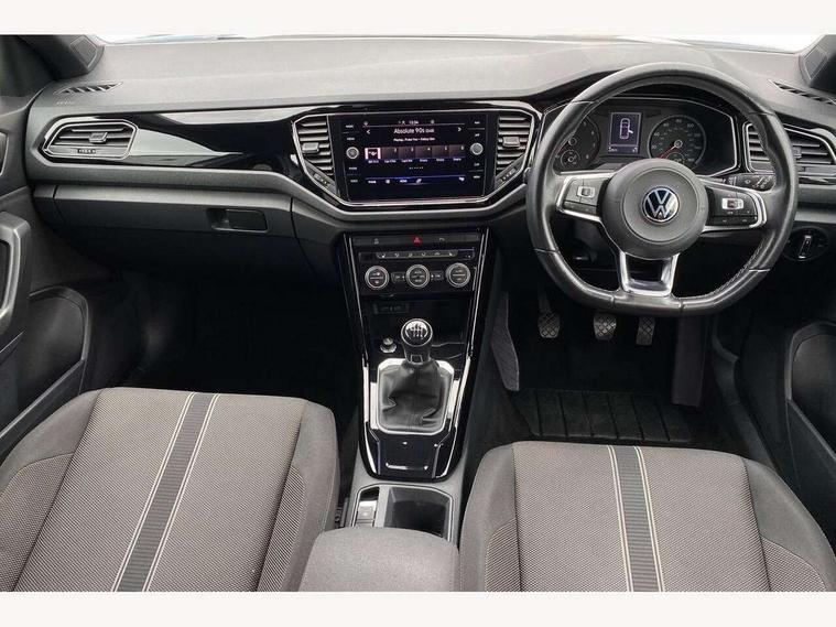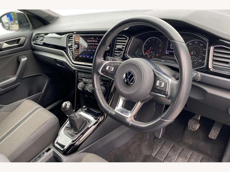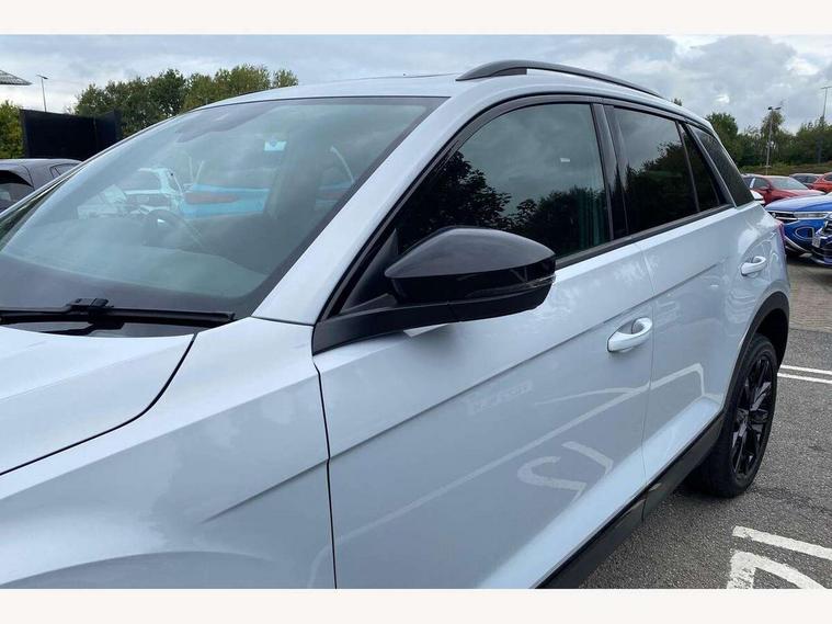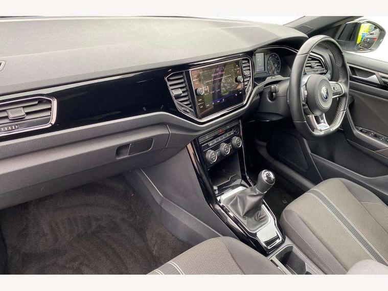 'Lights On' Reminder warning buzzer, Adaptive cruise control, Bluetooth telephone and audio connection for compatible devices, Car information display, Driver tips and journey analysis, Emergency call service, Lane assist with warning text instrument cluster, Modified key software - reduce switch off time for key status change to Long no motion, Multifunction camera, Multifunction computer with visual gear change recommendation for fuel consumption, Service interval indicator, Think blue trainer driver tips and journey analysis, Warning sound and light for doors and tailgate open, Warning sound and light for front seatbelts unfastened, Wireless app connect for apple carPlay, Battery regeneration during braking, Start/stop function with battery regeneration, DAB Digital radio, Diversity antenna for FM reception, Multi device interface (MDI) with USB connection, Music playback - MP3, WMA and AAC files, Premium USB cable in choice of either Apple or Android smartphone compatibility, SD card slot, Simultaneous pairing of 2 compatible mobile devices, Single CD player, glovebox mounted, SMS functionality - read, compose and send SMS messages using touch-screen display, Storage compartment with longitudinal and height adjustable in armrest and two rear air vents, Title and cover art display, USB-C Interface and USB charging socket, Auto dimming interior rear view mirror, Automatic coming/leaving home lighting function and daytime running lights, Automatic hazard lights activation under emergency braking, Black grained lower door protectors, Black grained wheel arches, Black roof rails, Body colour door handles, Body colour sports bumpers with silver metallic underbody fascia, Body coloured bumpers and radiator grille with chrome trim and front fog lamps with chrome bezel, Chrome trim on upper and lower radiator grille, Dusk sensor, Electrically foldable, adjustable and heated door mirrors with puddle lights and reverse activated kerb-view adjustment on passenger's door mirror, Exhaust tailpipes in black, External USB type C socket and charging sockets, Front and rear electric windows, Front windscreen wiper with intermittent wipe and 4 position delay, Fully galvanised body, Heated rear window, High level 3rd brake light, LED headlamps with automatic range adjustment and unique signature LED separate daytime running lights, LED rear number plate lights, LED tail lamp rear comination lamps, Privacy glass, Rain sensor, Rear tinted glass from B-pillar backwards approx 65% tinted, Rear wash/wipe with intermittent wipe setting, Trim strips on grille and vehicle side, Volkswagen roundel, 12V socket in centre console storage area, 3 rear head restraints, 4 load lashing points in luggage compartment, Black roof lining, Climate control - 2 zone electronic air conditioning with automatic air recirculation and allergy filter, Door and side trim panel, Drawer under drivers seat, Front centre armrest, Front cupholders x 2, Front seat back storage pockets, Glovebox, Height adjustable front seats, Height/reach adjust steering wheel, Instrument lighting, white adjustable panel illumination, Interior light in footwell, Isofix easy fit child seat preparation for 2 outer rear seats, LED interior light with switch off delay/dimmer and 2 front/rear LED reading lights, Load through provision with single cup holder when folded down, Luggage compartment cover, removable, Luggage compartment lighting, Split folding rear seat backrests with centre armrest, Storage compartment in left and right luggage area, Storage compartment in rear doors, Storage compartments in driver and front passenger doors, Sunvisors with illuminated vanity mirrors, Three spoke multi-function leather trimmed steering wheel and gearknob, White ambient lighting, Black decal on C-pillar pack - T-Roc, 3 rear three point seatbelts, ABS, Curtain airbags, Driver and front passenger safety-optimised head restraints, Drivers and front passengers airbags with passengers deactivation switch, Drivers seatbelt reminder, Electronic parking brake with auto hold, Electronic stability control (ESC) includes ASR, EDL, EDTC and trailer stabilisation function, Front assist with city emergency braking and pedestrian monitoring, Front seat side impact airbags, Predictive pedestrian protection, Rigid safety cell with front and rear crumple zones, Single tone horn, Three point height adjust front seatbelts + pretensioners, Tyre pressure loss indicator, Ventilated front and rear disc brakes, Volkswagen roadside assistance, Alarm with remote central locking and interior protection, Electronic engine immobiliser, Remote central locking with SAFELOCK, radio remote control with 2 remote control folding keys, Black decorative trims, Piano black decorative inserts in dash, centre console and door panel, 18" Arlo black diamond turned surface alloy wheels with low rolling resistance tyres and anti theft wheel bolts,