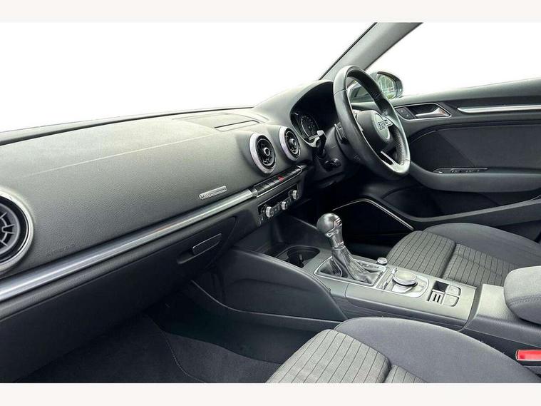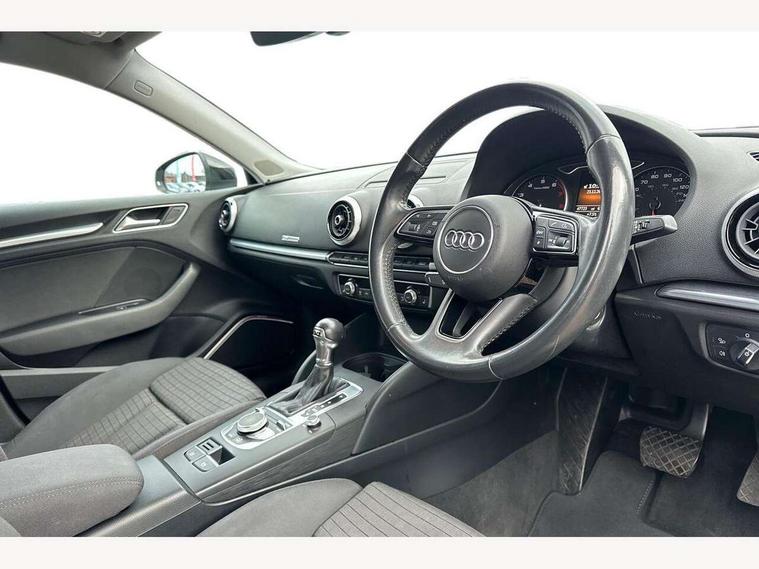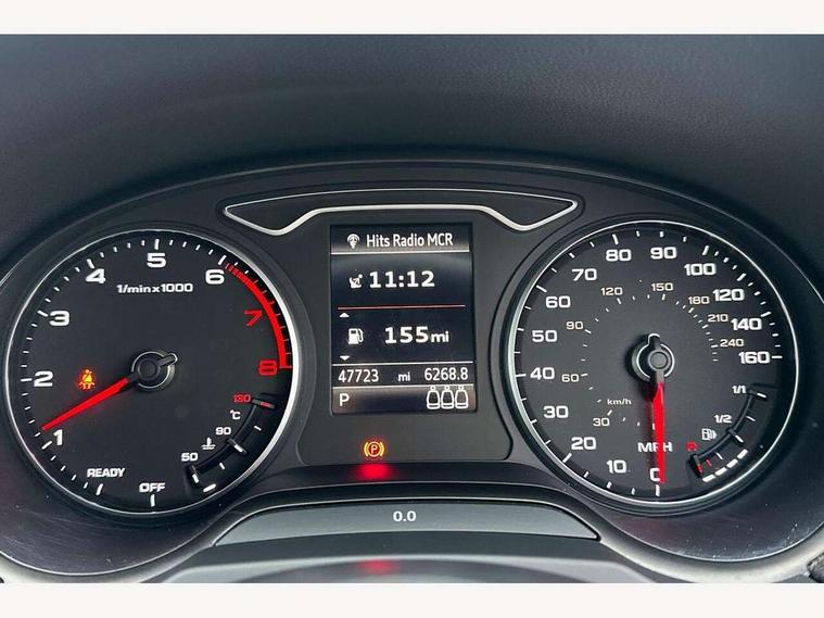 Audi connect, Audi drive select, Audi smartphone interface, Colour driver's information system display, Electro-mechanical PAS, HDD satellite navigation system radio single CD/DVD player MMI control system, Mobile telephone preparation - bluetooth interface, Service interval indicator, Speed limit display, Voice control system, 2 USB ports, Audi music interface, Auxiliary input socket, CD player, DAB Digital radio, MMI radio plus with 7" colour MMI screen and MMI controller, Aluminium window trim, Auto dimming rear view mirror with light and rain sensors, Body colour bumpers, Body colour door mirrors with integral indicators, Body colour roof spoiler, Chrome exhaust tailpipes, Electric front windows, Electric operated/heated door mirrors, Electric rear windows, Heated windscreen washer jets, LED daytime running lights, Matt black radiator grille, Rear wiper, Sport specific side air inlet grille and diffuser insert, Xenon headlights, 3 adjustable rear headrests, 4 lashing points to secure luggage, Adjustable front armrest, Aluminium door sill trims, Dual zone electronic climate control, Front and rear interior lights with delay, Front passenger seat isofix location point, Front sports seats, Front/rear floor mats, Height/depth adjustable steering column, Illuminated glovebox, ISOFIX child seat preparation+airbag deactivation, Jack and tool kit, Rock grey headlining, Steering wheel gearshift paddles, Storage compartment in centre console, Storage compartment under front seats, Storage compartments in doors, Non smoking pack - A3, 3 point seatbelts on all seats, ABS/EBD, Active bonnet, Active front headrests, ASR, Curtain airbags, Driver and passenger side airbags, Driver/Front Passenger airbags, Drivers knee airbag, EDL, Electromechanical parking brake, ESC - Electronic Stability Control + traction control, Front passenger airbag deactivation, Manual rear child locks, Multi-Collision braking, Seatbelt warning, Tyre pressure warning, Warning triangle and first aid kit, Anti theft alarm, Anti-theft wheel bolts, Remote control central locking, Thatcham category 1 alarm + immobiliser, Aluminium air vent surrounds, Aluminium mistral silver inlay, Aluminium trim elements, 17" 5 Arm design alloy wheels, Space saver spare wheel,