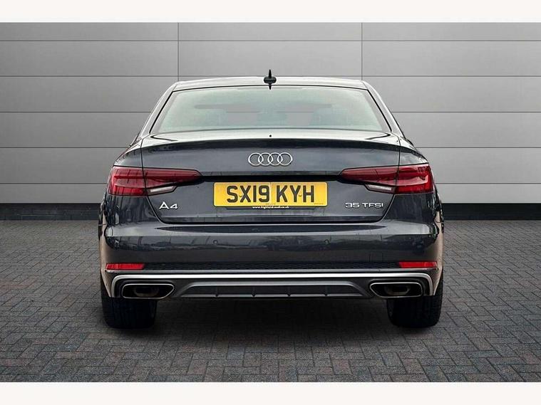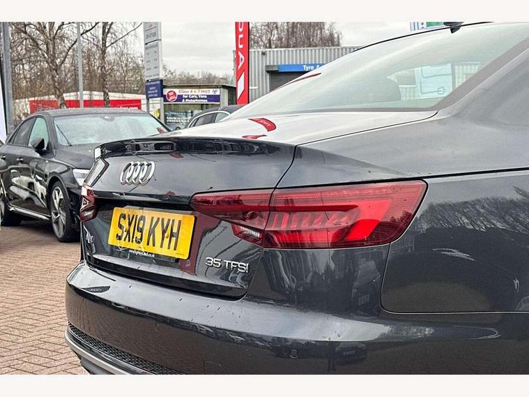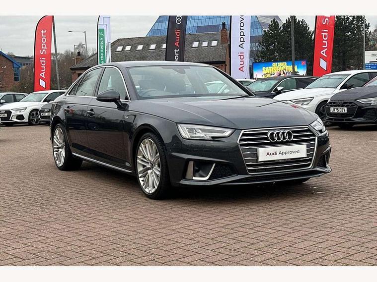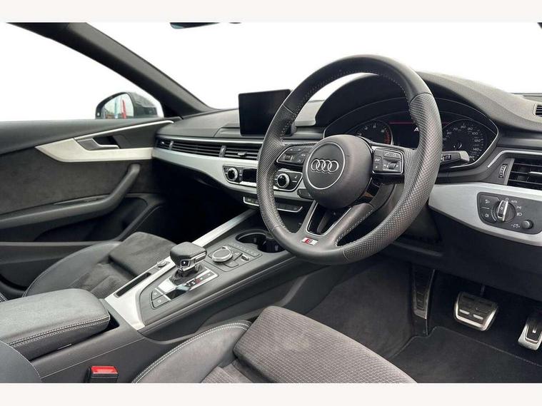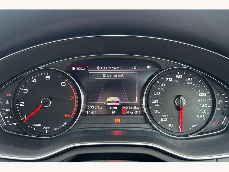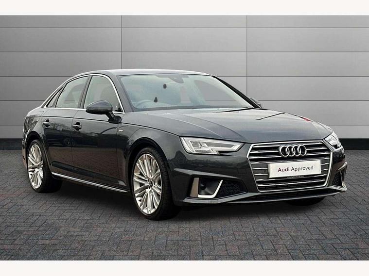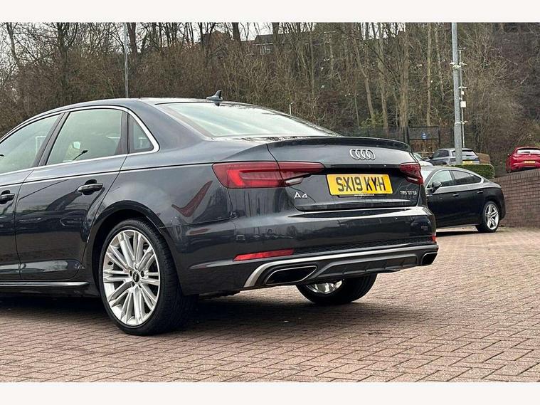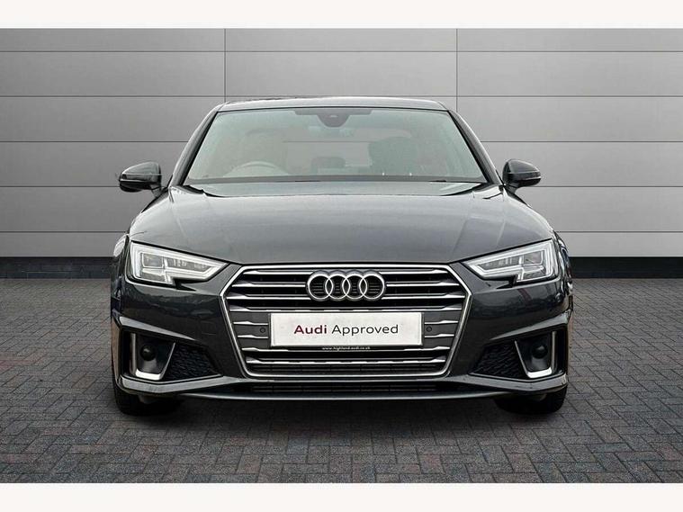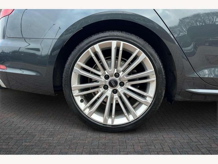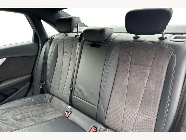 7" Colour driver information system, Audi connect safety and service (e-call), Audi drive select, Audi parking system plus with front and rear sensors, Audi Pre sense collision avoidance, Bluetooth interface, Electric boot release, Electromechanical power steering, MMI SD card Navigation, Service interval indicator, Stop/start button, Voice control system, 54 litre fuel tank, 2 USB interfaces and Aux-In jack, DAB digital radio module, Acoustic windscreen, Air inlets in titan black with two horizontal inlays in chrome, Aluminium window trim, Auto dimming rear view mirror, Automatic headlights + automatic windscreen wipers, Black grained rear grille, Blue tinted glass, Body colour bumpers, Body colour door handles, Body colour door mirrors, Chrome rolled exhaust, Chrome tailpipe finisher, Electric front windows, Electric rear windows, Headlight range control, High beam assistant, High gloss black triangular aperture at rear door, LED daytime running lights, LED indicators in door mirrors, Rain and light sensors, Rear diffuser in Twilight grey matt, S Line badges on the front wings, S line front and rear bumpers with side skirts, Twilight grey matt radiator grille with chrome inlay, 3 zone climate control, 4 way electric lumbar support for driver and front passenger, 40/20/40 split folding rear seats with rear centre armrest, Black cloth headlining, Contrast stitching on seats, steering wheel and gear lever gaiter, Front centre armrest, Front headrests, Front/rear floor mats, Height and reach adjustable steering wheel with full size airbag, Illuminated door sill finishers, Isofix child seat preparation for front passenger/outer rear seats inc passenger airbag deactivation, Jack and tool kit, Luggage compartment carpet, Perforated leather gearknob, Rear headrests, Stainless steel foot rest, Stainless steel pedals, Sunvisors with vanity mirrors, Top tether anchor plate for isofix child seat, Non Smokers pack, S line exterior styling pack - A4 Saloon, 3 point seatbelts on all rear seats, Adaptive driver and front passenger airbags, Electromechanical parking brake, Electronic stabilisation control including ABS, ASR and EDL, Front head airbags, Front seatbelt pretensioners + load limiters, Front side airbags, Multi-Collision braking, Pop-up bonnet for pedestrian protection, Seatbelt warning, Traction control, Tyre pressure warning, Variable restraint system, Warning triangle and first aid kit, Anti theft alarm, Keyless Start, Locking wheel bolts, Remote central locking, Thatcham category 1 alarm + immobiliser, MMI radio plus with smartphone interface, Tyre repair kit,