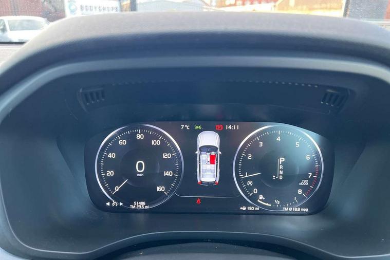12.3" Active TFT crystal driver's instrument display, 9" Touch screen, Adjustable steering wheel force, Bluetooth hands free telephone kit, Drive mode selector, Front collision warning with full auto brake, Intelligent driver information system (IDIS), Lane keep assist with driver alert control, Oncoming Lane Mitigation, Power tailgate, Remote fuel flap release, Road Edge Detection, Service interval indicator, Speed limiter, Speed sensitive steering, Trip computer, Voice control system, Volvo on call, DAB Digital radio, Steering wheel mounted remote controls, Active bending headlights with adaptive shadow technology, Adaptive brake lights with high level LED brake lights, Aluminium tread plates, Auto dimming interior + exterior mirrors, Body colour bumpers, Body colour door mirrors, Electric folding door mirrors, Electric front+rear windows, Electrically adjustable and heated door mirrors, Headlamp cleaning system, Headlamp levelling, Heated aqua blades, Home safe and approach lighting, Illuminated side steps, LED front fog lights with static cornering light function, LED Headlights + Active high beam incorporating daytime running lights, Piano black front grille with chrome surround, Rain sensor with automatic windscreen wiper activation, Rear wiper, Roof antenna, Roof spoiler, Silver roof rails, Tinted windscreen, Twin exhaust tailpipes with chrome finishers, Visible VIN plate, 12V power point in luggage area, 3 spoke leather steering wheel with chrome trim, 60/40 split folding rear seat, A-pillar parking ticket holder, B Pillar ventilation, Bright metal luggage threshold, Centre armrest storage illumination, Centre console cupholders and storage, Electric drivers seat with memory and height and lumbar adjust + mirrors memory, Floor mats, Front footwell illumination, Front reading lights, Glovebox illumination, Head restraints for all seats, Heated front seats, Heated steering wheel, Height/reach adjustable steering column, Illuminated driver/passenger vanity mirrors, Illuminated luggage compartment, Leather upholstery, Load cover, Lockable glovebox, Pollen filter, Rear armrest / integral cup holders / storage tray, Rear seat concealed storage, Theatre dimming interior lights, Underfloor stowage compartment, Vanity mirror with ticket holder, WHIPS - Whiplash Protection System, 5 three point seatbelts, ABS/EBD, City safety with steering support with Pedestrian + cyclist + large animal detection + front collision warning with full auto brake, Curtain airbags, Drivers knee airbag, DSTC-Dynamic Stability and Traction Control, Dual stage driver/passenger airbags, EBA, Electronic parking brake with auto hold, Fasten seatbelt reminder, First aid kit, Hill descent control, Hill start assist, Hydraulic Brake Assist (HBA), Passenger airbag deactivate switch, Road sign information display, Run off Road Protection, Seatbelt pre-tensioners, SIPS airbags, Tyre pressure monitor, Warning triangle, Anti-theft alarm including immobiliser/volume sensor + level sensor, Key integrated remote control central locking + fuel flap with deadlocking system and auto open/close power windows, Locking wheel nuts, Private locking for tailgate, Iron ore inlays,