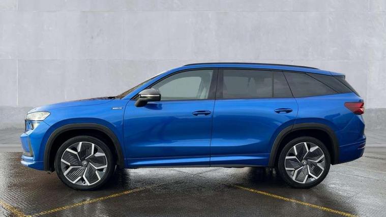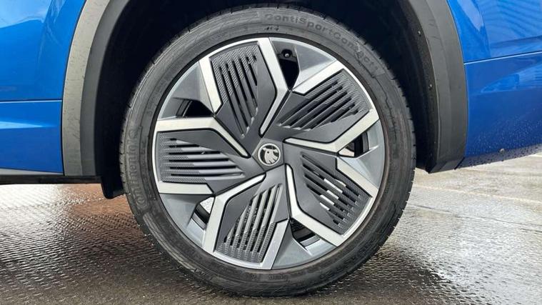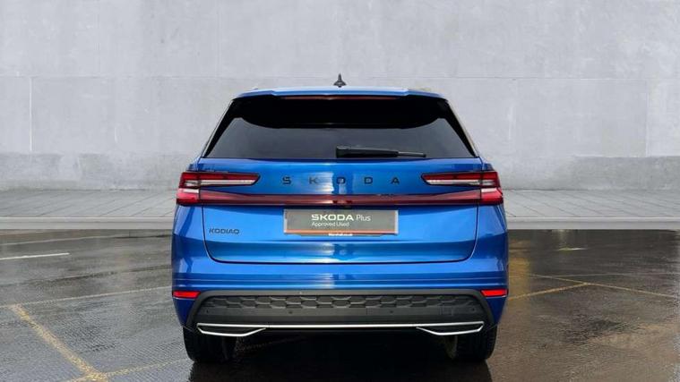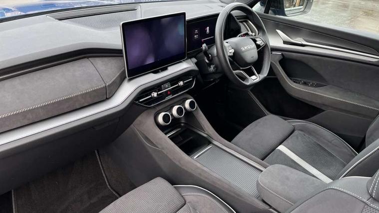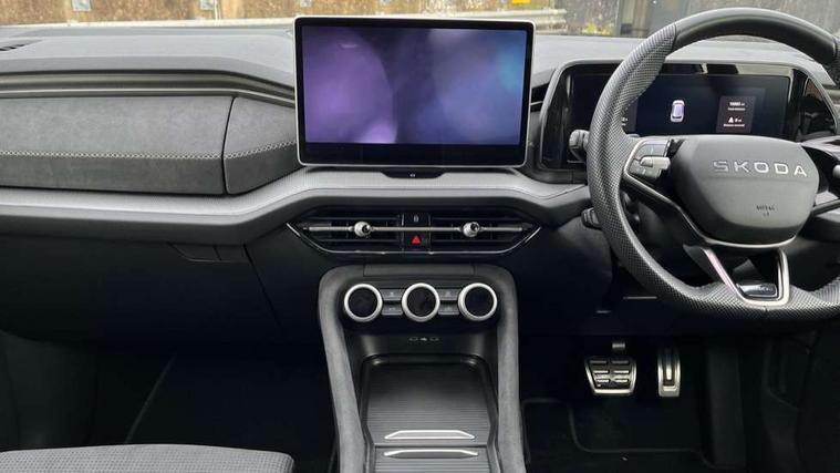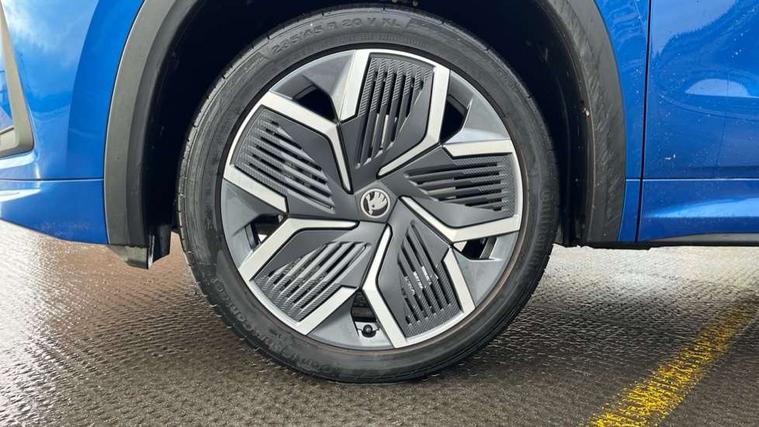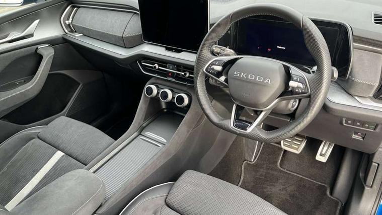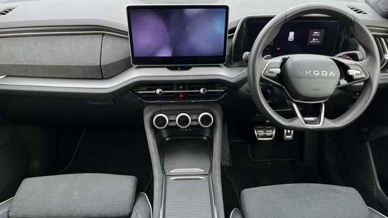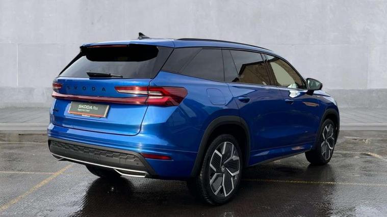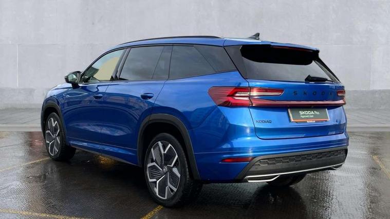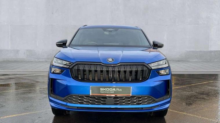 13" satellite navigation touchscreen display, Blind spot detection with door exit warning, Bluetooth system, ChatGPT functionality, Driver alert - Fatigue and drowsiness monitor, Dry display cleaner, Emergency call, Front and rear parking sensors, Front cross traffic assist, Lane assist, PAS, Rear traffic assist, Tailgate unlocking from outside, Traffic sign recognition, USB C Port x 2 in front centre console, Virtual Cockpit - 10.25" digital display, Voice control system, Wireless charging for two smartphones (15W) with cooling function, Wireless SmartLink for Apple CarPlay and Android Auto, Stop/start function, 2x USB-C in the rear, DAB Digital radio, Aero front windscreen wipers with intermittent function, Auto dimming rear view mirror, AWL (all weather lighting) and all weather light with cornering function, Black diffuser and decorative tailpipe with a unique dark chrome finish, Black roof rails, Black sports styling including front grille and window surrounds, Black wheel arch surrounds, Body colour door handles, Cornering light and poor weather light, Electric folding /adjustable/separted heated/folding door mirrors, auto dimming with boarding sports and memory function, Electric front and rear windows, Exterior black decorative trims, Front and rear sports bumpers including lower rear chrome strip, Gloss black door mirrors, Gloss black window frame and D pillar, Heat insulating glass in windshield, Heated rear window, Ice scraper in fuel tank cap, LED daytime running lights, LED third brake light in rear spoiler, Light assistant with automatic headlight control and coming home feature, Logo projection in door mirrors, Privacy glass, Rear roof spoiler, Rear side wing doors, Rear window wiper, Red decorative strip between rear LED lights, Safety reflectors on front and rear doors, Sportline badge on front fenders, Tailgate lettering in Black, Unique dark chrome design logo on alloy wheels, Window control switches with black trim, Windscreen wipers with rain sensor, Without engine designation, 1.5l bottle holder points in all door, 1x centre rear reading light, 2 seat bench in 3rd row, 3 configurable smart dials with 32mm coloured display, 3 seat bench in 2nd row, 4 foldable roof handles with rear coat hooks, Aluminium pedals, Ambient interior lighting - Dashboard, front-door stowage compartments, front and rear door panels and footwell lighting, Automatic gear selector on steering column, Chrome interior door handles, Driver/front passenger reading lights, Fabric headlining, Fixed bench 40:60:40 split folding backrests, Front and rear floor mats, Front centre armrest with jumbo box storage compartment, cup holder and 12V socket, Front sport seats, Height adjustable front headrests, Interior black decorative trims, Isofix child seat fittings in outer middle row rear seats and front passenger with top tether, Manually adjustable steering column, Pollen filter, Rear centre armrest with cupholders, Rear seat boot backrest release, Single front passenger seat, Skoda lettering on steering wheel, Storage pocket including mobile phone pockets on the backs of the front seats, Sunvisors with illuminated vanity mirrors, Three rear height adjustable headrests, Ticket holder on A Pillar, Tri zone climate control, Umbrella in door panel x1 made from sustainable materials, Upper and lower glovebox with card holder and coin compartment, USB C port by rear view mirror for charging only (15W), Acoustic package - Kodiaq, Performance package - Kodiaq, Sportline design selection pack - Kodiaq, Auto door release and activation of warning lights in the event of an accident, Driver and front passenger airbag with knee airbag and front passenger airbag deactivation, Electric child locks, Electronic parking brake, ESC (incl. ABS+EMD+MSR+ASR+EDL+HBA+DSR+RBS+ESBS+MCB+TSA+XDS), Front assist with braking reaction to vehicles, pedestrians and cyclists, Front disc brakes, Fuel cut off safety device, Height adjustable front 3 point seatbelts + pretensioners, Hill hold assist, Junction assist with automatic emergency braking, Rear disc brakes, Safety vest holder in door, Seat belt reminder for all seats, Three point rear seat belts, Two tone horn, Tyre pressure monitor, Alarm with interior monitoring and tilt sensor with safe function, Anti-theft wheel bolts, Immobiliser, Remote central locking with 2 keys, 20" Rila anthacite polished alloy wheel with black matte aero covers,