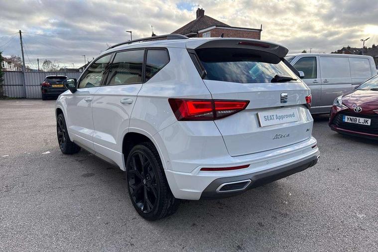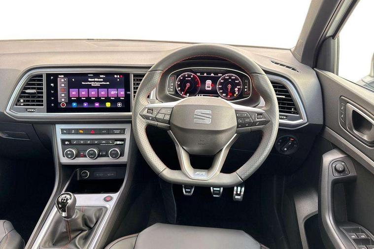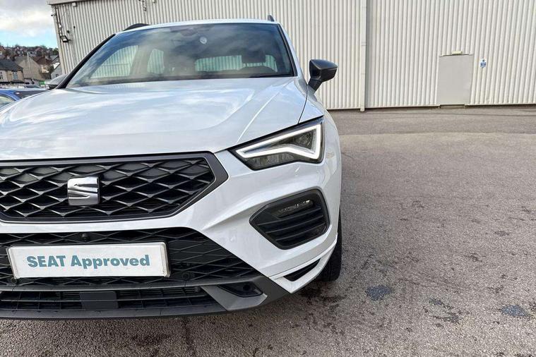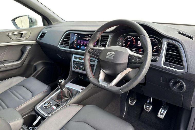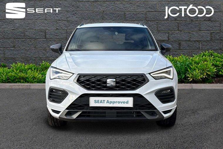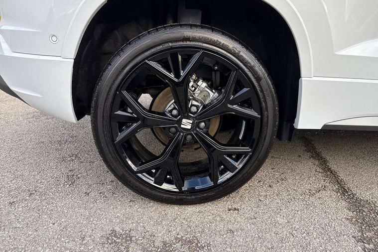 10" Digital cockpit, Bluetooth audio streaming with handsfree system, E-call, Electric tailgate with virtual pedal, Outside temperature gauge, Progressive power assisted steering, SEAT drive profile with driving experience button - Normal, Sport, Eco and Individual mode, steering and throttle response, Self parking functionality (includes front and rear parking sensors), Speed limiter, Start/stop system, Top view camera with rear view camera, Trip computer, wired and wireless full link smartphone integration, Wireless phone charger, Steering wheel mounted audio/phone controls, Black roof rails, Black side window trim, Body colour bumpers, Body coloured wheel arch surrounds, Chrome front grille frame, Dark tinted rear windows, Daytime running lights, Door mirrors with welcome light silhouette, Dynamic headlight range control with self adjusting whilst driving, Electric adjustable/heated/folding door mirrors, Front and rear electric windows, Illuminated aluminium front door sill, LED 3rd brake light, LED headlamps with lens and LED front fog lamps with cornering function, LED rear tail lights with dynamic indicators, Rear exhaust tailpipe, Rear fog lights, Rear side wing doors, Rear spoiler, Rear wash/wipe, Variable front intermittent wipers, 12V socket in front, 3 seat bench in 2nd row, 60/40 split folding rear seat, Aluminium pedals, Black greenhouse interior roof, Dual zone climate control, Electric adjustable driver seat with memory function, Front and rear head restraints, Front centre armrest, Front seat back storage pockets, Heated front seats, Height adjustable passenger seats with lumbar adjustment, ISOFIX points in outer rear seats with top tether anchorage points, Leather sports steering wheel and gear knob, Leather upholstery with front comfort seats, Rear armrest and easy back seat release mechanism from boot, Single front passenger seat, Convenience pack - Ateca, Interior lighting pack - Ateca, Navigation system pack with DAB - Ateca, Safety and driving pack (L) - Ateca, Safety and driving pack with attention and drowsiness assist - Ateca, 3x3 point rear seatbelts, ABS, Traction control system (TCS), Electronic stability control (ESC) and Electronic differential lock system (XDS), Airbags - Driver and front passenger airbag with deactivation, front side, two curtain and driver's knee airbags, Electric parking brake with auto hold function, Front and rear seatbelt reminder, Hill hold control, Manual rear child locks, Single tone horn, Tyre pressure monitoring system, Alarm, Keyless entry, Locking wheel bolts, Remote central locking, Chrome interior detailing, 19" Exclusive alloy whelels 36/10 in glossy black, Tool kit,