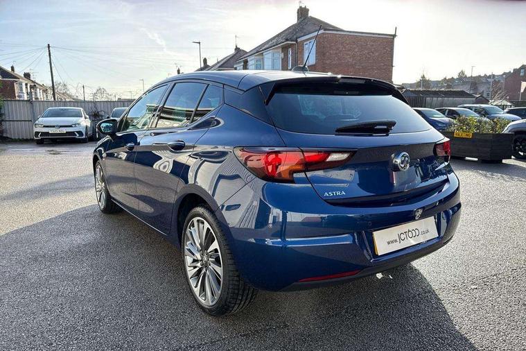 Central facia display with digital clock, outside air temperature and audio information, Cruise control with speed limiter, Driver information - Total mileage, service indicator, oil life, Electric speed sensitive power steering, Instrumentation - Speedometer, rev counter, low fuel gauge warning light + water temperature gauge warning light, shift up/down indicate light, Lights on audible warning, Multi function trip computer - Trip odometer, vehicle range, average speed and fuel economy, instantaneous fuel economy and driving time, Multimedia fully integrated european sat nav - 7" screen, AM/FM/DAB, bluetooth/2 USB, apple car play/android auto, 3.5" monochrome cluster, 6 speakers, My ECO driving advisor (ECO assistant), Battery rundown protection, Steering wheel mounted audio controls, Adaptive brake lights, Auto delay headlamp control with follow me home lighting, Automatic hazard warning light, Automatic lighting control with tunnel detection, Automatically dimming anti dazzle rear view mirror, Body colour door mirrors, Body coloured door handles, Bonnet/headlight/wiper structure, Chrome bar with black radiator grille, Chrome effect headlight, Chrome side glass molding DLO in upper part only, Dark tinted rear windows, Dipping rear view mirror, Door to door illumination, Electrically operated front and rear windows, Front fog lamps, Gloss black finish B pillar, Gloss black finish C pillar, Heated rear screen with timed cut off, Hidden exhaust pipe, High gloss exterior ornamentation, High level LED centre rear brake light, Laminated windscreen, LED daytime running lights, LED Headlights, LED side repeat indicators, Manual folding door mirrors, Rain sensitive windscreen wipers, Rear fog lamps, Rear spoiler, Solar absorbing heat front windscreen, Solar absorbing heat rear windows, Twin electrically adjustable and heated door mirrors, Two speed windscreen wipers with variable intermittent wipe, Upper and lower bumper design, Windscreen and side window demist vents, 12V electrical accessory socket in front, 12V power outlet in centre console, 2 way front passive headrest, 2 way rear outboard headrests, 3 spoke leather covered steering wheel with accent stitching, 60/40 split folding rear seat, Adjustable front armrest, Anti submarining ramps in all seats, Assist handles, Base centre console with manual park brake and small storage box, Black door panels with black atlantis cloth inserts, Central rear seat headrests, Chrome effect interior door handles, Dome lamp with front reading spots + illuminated switched, LED spot for ambient light and dual rear reading spot, Driver's and front passenger's sunvisors, Fade up/down courtesy light, Folding storage box on driver side lower facia, Formula cloth upholstery, Four adjustable facia vents, Four lashing eyes in load compartment, Front centre armrest with storage, Front door pockets, Front passenger vanity mirror, Front seatback storage pocket for driver and co-driver seats, Front/rear courtesy lights, Fully carpeted load area, Glovebox with lid, Height adjustable front seat head restraints, Illuminated load area, Interior tailgate handle, Isofix child seat mounting points on outer rear seats, Liquid palladium inserts on front door, Luggage compartment cover, Luggage compartment interior lamp, Plain black fabric side bolsters and surrounds, Reach and rake adjustable steering column, Rear door pockets, Satin chrome effect bezel on steering wheel, Storage compartment in centre console, Three height adjustable rear head restraints, Titanium black roof lining, Twin gas assisted tailgate struts, Two drinks holder in centre console, Driver's ergonomic active seat pack with AGR certified sports syle seats - Astra, Driving assistance pack 1 - Astra SRi/SRi Nav/SRi VX Line Nav/Elite Nav/Ultimate Nav, High gloss black pack - Astra, 3 point centre rear seat belt, 6 airbags - Driver and co-driver front, front side, head curtain roof airbags, front and rear row coverage airbags, Anti jam door design with burst proof door locks, Buckle activated smart seat belt reminder for driver only, Child locks on rear doors, Cornering brake control, Deactivation switch for front passenger's airbag, Deformation zones front and rear, Drag torque control, Electronic Stability Program (ESP) including Anti lock brake system (ABS) and hill start assist, Energy absorbing steering column, Front and outer rear seatbelt force limiters, Front seat belts with crash locking tongues for driver and co-driver, Front seatbelt unfastened audible warning and warning light, Height adjustable inertia reel front seatbelts, Key operated airbag off switch for front co-driver and side airbags, Outer rear seatbelt pretensioners, Pedal release system, Pedestrian detection and protection, Reinforced passenger safety cell, Rollover mitigation, Side impact protection beams, Single tone horn, Smart seat belt reminders for co-driver and 2nd row seat, sensor in co-driver seat cushion, Traction control, Tyre deflation detection system, Tyre pressure monitoring system with full indication, Electronically protected audio equipment, Engine deadlock and immobiliser, Freewheeling door locks, Key left in ignition audible warning, Locking wheel nuts, One flat and one rigid key with 2 button for lock/unlock, Remote control central locking, Remote control ultrasonic security alarm system, Visible vehicle identification number, Instrument panel bar in piano black, Liquid palladium with black facia trim inserts, Piano black trim inserts on front doors, Silver air vent surrounds, 18" Bi-colour alloy wheels, Low rolling resistance tyres,