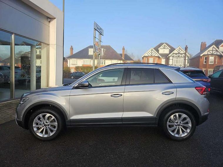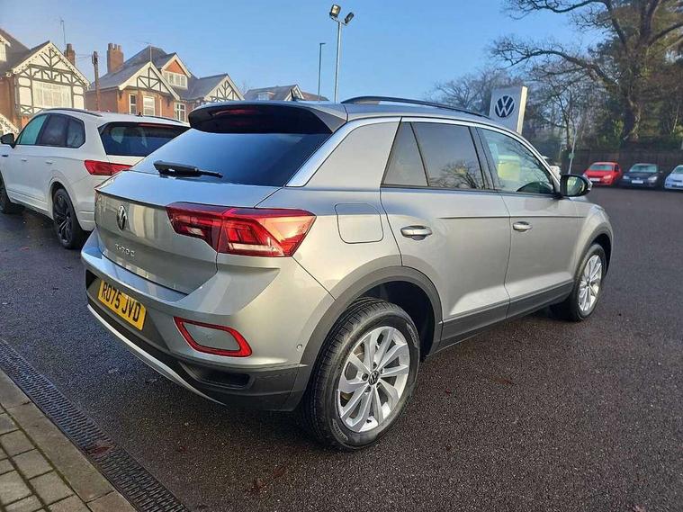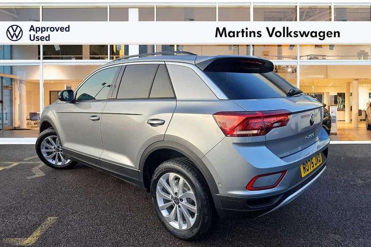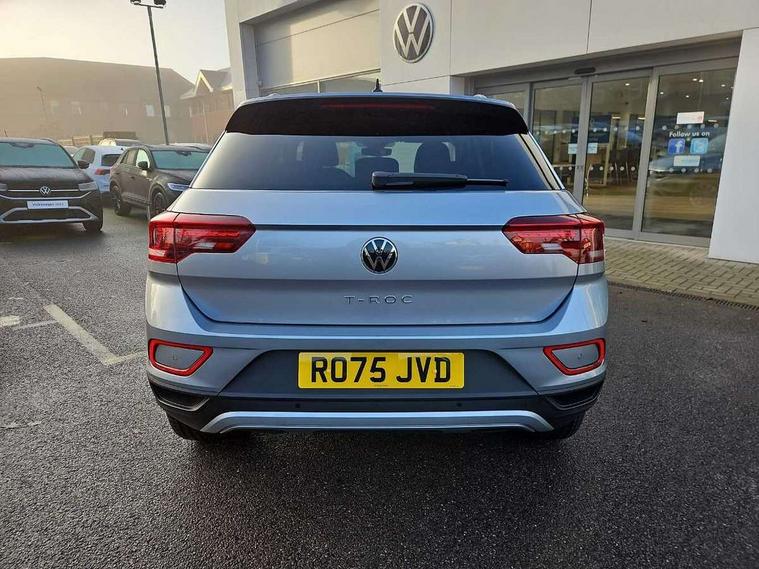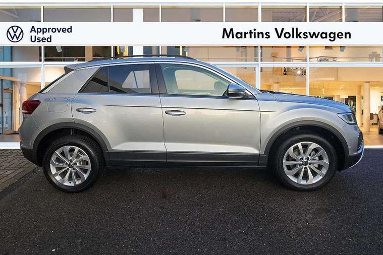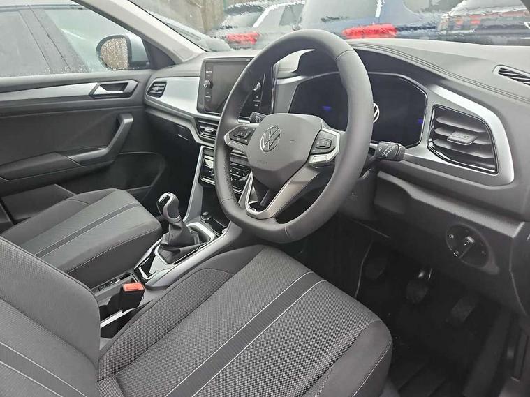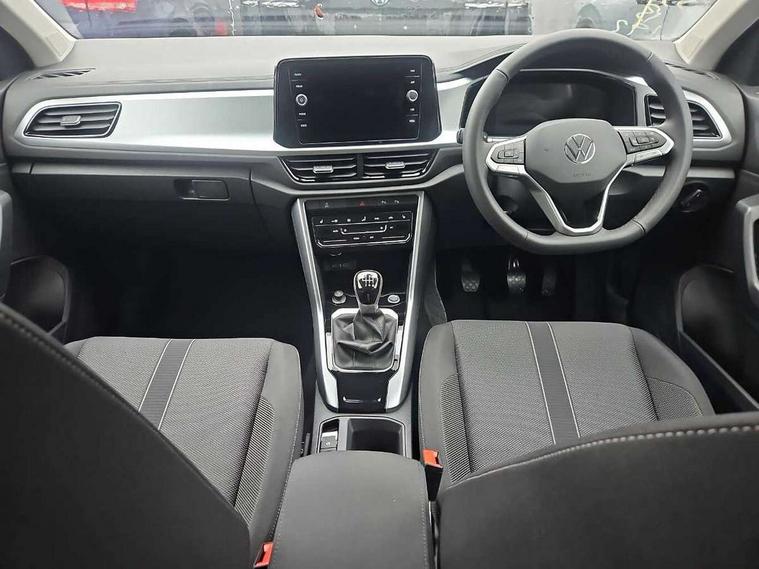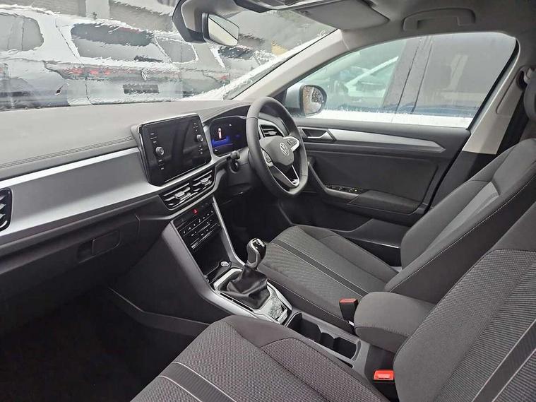 Advanced driver attention and drowsiness monitor, Dynamic road sign display, Emergency call service, Lane keeping system Lane Assist, Mobile phone interface, Modified key software - reduce switch off time for key status change to Long no motion, Online services, Park assist including front and rear parking sensors, Power assisted speed sensitive steering, Rear view camera, Service interval indicator, Tailgate/trunk lid release from outside, Think blue trainer driver tips and journey analysis, Warning sound and light for front seatbelts unfastened, Wireless app connect, Battery regeneration during braking, Front shock absorption, Rear shock absorption chassis with increased ride height, Start/stop function with battery regeneration, DAB Digital radio, Diversity antenna for FM reception, Music playback - MP3, WMA and AAC files, SD card slot, Simultaneous pairing of 2 compatible mobile devices, Title and cover art display, We Connect and We Connect Plus functionality, Auto dimming interior rear view mirror, Automatic hazard lights activation under emergency braking, Automatic headlight control with LED separate daytime running lights with coming/leaving home function, Black roof rails, Body coloured bumpers and radiator grille with chrome trim and front fog lamps with chrome bezel, Body coloured exterior mirror housings and door handles, Electrically adjustable and heated door mirrors, Extended roof spoiler, Exterior mirrors aspherical on driver side, convex on front passenger side, External USB type C socket and charging sockets, Front windscreen wiper with intermittent wipe and 4 position delay, Heated rear window, LED 3rd brake light, LED rear combination lamps, LED rear number plate lights, Power windows with comfort operation and circuit breaker, Privacy glass for rear side windows and rear window, Rain sensor, Rear exhaust tailpipe, Rear fog light on one side and reversing lights on both sides, Rear side wing doors, Rear wash/wipe with intermittent wipe setting, Remote electrically foldable door mirrors, puddle lights and reverse activated passenger's door mirror, 12V power socket in centre console, 3 rear head restraints, 3 seat bench in 2nd row, 4 load lashing points in luggage compartment, Air care climatronic air conditoning system with active combination filter and 2-zone temperature control, Black stitching for floor mats, Ceramique roof liner, Cloth upholstery, Door and side trim panel in cloth, Drawer under drivers seat, Driver/front passenger seat height adjustment, Front centre armrest, Front comfort sports seats, Front cupholders x 2, Front reading light, Front seat back storage pockets, Glove compartment door with light, Instrument lighting, white adjustable panel illumination, Interior ambient lighting and surround lighting, Interior light delay, Isofix child seat preparation, Leather gearshift handle, Load-through provision with cup holder when folded down ('Unsplit rear seat bench, split folding backrest, with centre armrest), Luggage compartment lighting, Lumbar support for driver's and front passengers seat, Non-folding front passenger seat backrest, Single front passenger seat, Storage compartment in left and right luggage area, Storage compartment in rear doors, Storage compartments in driver and front passenger doors, Sunvisors with illuminated vanity mirrors, Variable boot floor, height adjustable and removable, Driver assistance pack without proactive passenger protection - T-Roc Life/Match, 3 point height adj front seatbelts + pretensioners, 3 point seatbelts in outer rear with ECE label, ABS, Child locks on rear doors, City emergency braking and pedestrian monitoring, Driver and front passenger airbag with front passenger airbag deactivation, Driver and front passenger safety-optimised head restraints, Drivers seatbelt reminder, Electronic parking brake, Electronic Stability Control (ESC) inc EDL (Electronic Differential Lock) and ASR (Traction Control), Front and rear passengers curtain airbag system including front side airbags, Front disc brakes, Hill start assist, Predictive pedestrian protection, Rear disc brakes, Two tone horn, Tyre pressure loss indicator, Volkswagen roadside assistance, Alarm with interior protection, Keyless locking and starting system keyless access with safelock, Pewter matt decorative inserts for intrument panel, centre console and door panels at the front, Trims for alloy wheels,