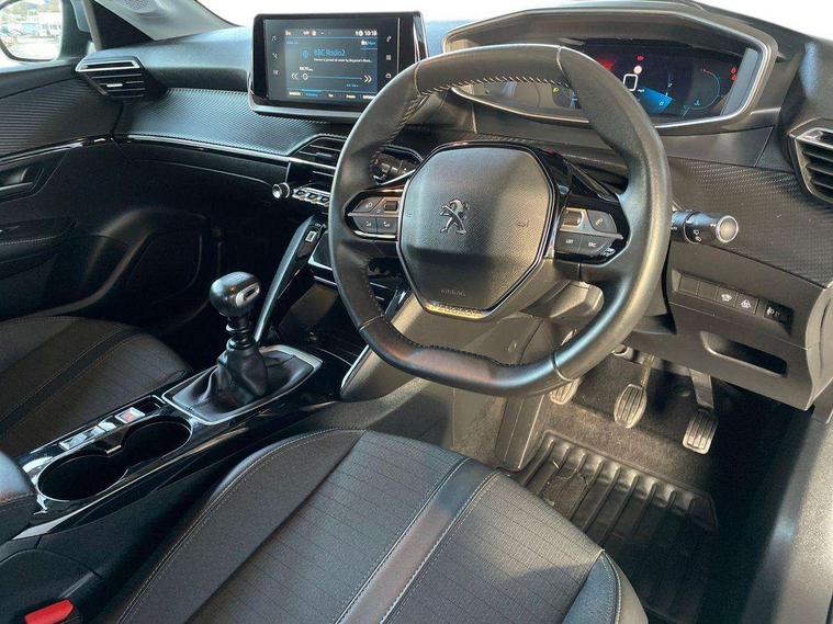 Bluetooth telephone facility, Driver attention warning, Exterior temperature indicator with ice warning, Lane keep assist, Mirror screen with mirror link, apple carplay and android auto, Multi function trip computer, PEUGEOT i-Cockpit with compact steering wheel, PEUGEOT i-Cockpit with configurable 3D headup instrument panel, PEUGEOT SOS and assistance, Push button start, Rear parking sensors, Smart phone docking station, Speed limit recognition and recommendation, Visio Park 1 with 180 degree Colour reversing camera, 2 front USB socket with USB-C, 2x USB sockets in rear, 6 speakers radio with mp3 compatible, DAB Digital radio, Voice recognition for radio, navigation and telephony features, 2 X Rear number plate lights, Automatic hazard light activation upon heavy brake application, Automatic lights, Automatic windscreen wipers, Body coloured exterior door handles, Dark tinted rear side and tailgate windows, Diamond black rear spoiler (roof), Eco LED headlights, Electric front windows + one touch + anti-pinch, Electric rear windows with one touch/anti-pinch, Electrically adjustable, heated and power folding door mirrors, Electrochrome rear view mirror, Follow me home headlights, Gloss black finish on B pillar, Gloss black rear cluster connecting strip, Gloss black window surround, Headlights left on audible warning, LED daytime running lights with 3 claw headlight with distinctive tooth design, LED side indicator lights integrated into door mirrors, Model designation badges front and rear, Nera black door mirror shells, Radiator grille chrome chequered, Rear bumper with gloss black finish, Rear full LED 3D peugeot signature claw effect lights with daylight function, Rear reversing lights, Rear windscreen wiper triggered automatically in reverse gear, Roof mounted aerial, Tailgate with heated rear windscreen and wiper blade, 1/3 to 2/3 split folding rear seats, 12V socket, Automatic air conditioning, Black rods on rear headrests, Black wheel nut covers, Driver and front passenger comfort seats, Driver and front passenger seat manual adjustment in longitudinal and back rest angle, Driver seat mechanical height adjustment, Electric power steering with reach and rake adjustable steering column, Front centre armrest with storage compartment, Front LED interior light with 2 reading spotlights and rear interior light with timer, Gear shift indicator, High centre console with 2 cup holders, Leather steering wheel, Map pockets on the backs of the front seats, Piano keys gloss black plated toggle switches to access main functions of the vehicle, Roof lining - light grey, Satin chrome gear lever, Seatbelt unfastened on the move audible and visual alert for front and rear seats, Tri material cloth/leather upholstery, 2x Isofix child seat fitting on outer rear seats, 3 rear 3 point seatbelts, ABS (Anti-lock Braking System) with EBD (Electronic Brakeforce Distribution) and EBA (Emergency Braking Assistance), Adaptive driver and front passenger airbags with passenger airbag deactivation function, Child locking functionality on rear doors, Driver/front passenger side airbags, Electric parking brake, ESP with Hill Assist, Front and rear curtain airbags, Front and rear disc brakes, Front optimised safety headrests and 3 x rear retractable headrests with height adjustable, Front three point retractable seatbelts with force limiters, Pedestrians active safety brake, Tyre pressure sensor, Acoustic vehicle alert system (AVAS), Automatic door locking when moving off, Deadlock, Electronic code immobiliser, Thatcham cat. 1 alarm with anti lift sensor, Carbon effect Dashboard, front and rear door panel finish, 16" Soho diamond cut alloy wheels, Tyre puncture repair kit,