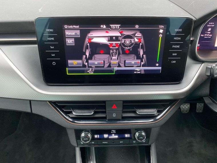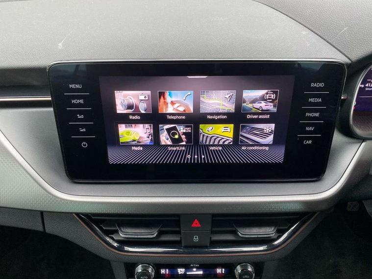 Amundsen satellite navigation with 9.2" glass colour touchscreen display, voice control, virtual cockpit, web radio and traffic sign recognition, Bluetooth system, E-call, Front and rear parking sensors, Front assist system, Gesture control, PAS, Rear view camera, Service indicator, Speed limiter, Virtual cockpit with 10.25" display, Wireless SmartLink for apple car play, android auto and mirrorlink, 8 Speakers, Auxiliary input socket, DAB Digital radio, Auto dimming rear view mirror, Body colour bumpers, Body colour door mirrors and handles, Chrome grille surround, Electric folding door mirrors, Electrically adjustable and heated door mirrors, Front and rear electric windows, Headlight range control, Heated rear window, LED rear lights - low functionality, LED third brake light, Light sensors, Privacy glass, Rear fog lights, Rear side wing doors, Rear wiper, 12V Accessory socket in centre console, 3 seat bench in 2nd row, Chrome inner door handles, Dual zone climate control, Front head restraints, Glove compartment with illumination, Ice scraper, Isofix child seat fittings on outer rear seats, ISOFIX on front passenger seat, Manual lumbar support for front seats, Rake/reach adjustable steering wheel, Reading lights, Single front passenger seat, Sun visors with illumination on front passenger, Textile floor mats, Third rear headrest, Top tether for front passenger seat, Umbrella in driver's door, 3x3 point rear seatbelts, Airbags - driver and front passenger, ESP, Front passenger airbag deactivation switch, Front side airbags with curtain airbags, Hill hold control, Manual parking brake, Manual rear child locks, One tone horn, Rear disc brakes, Seatbelt reminder for driver an co-driver, Traction control, Tyre pressure monitor, Anti-theft alarm system with interior monitoring, backup horn, towing protection and remote central locking with SAFE system, Anti-theft wheel bolts, Electronic engine immobilizer, Latice curved decorative insert on the dashboard with hot stamping in copper and white ambient lighting white,