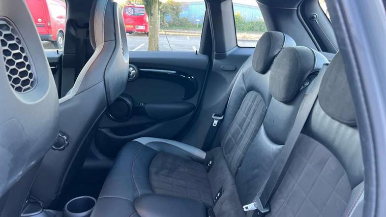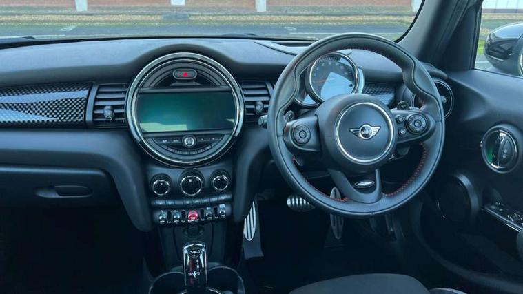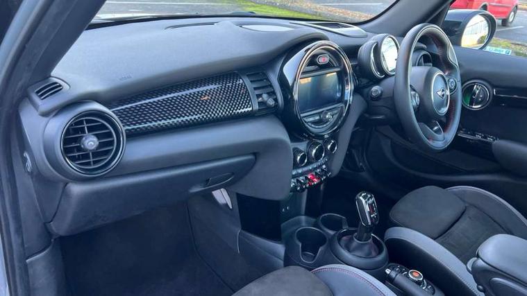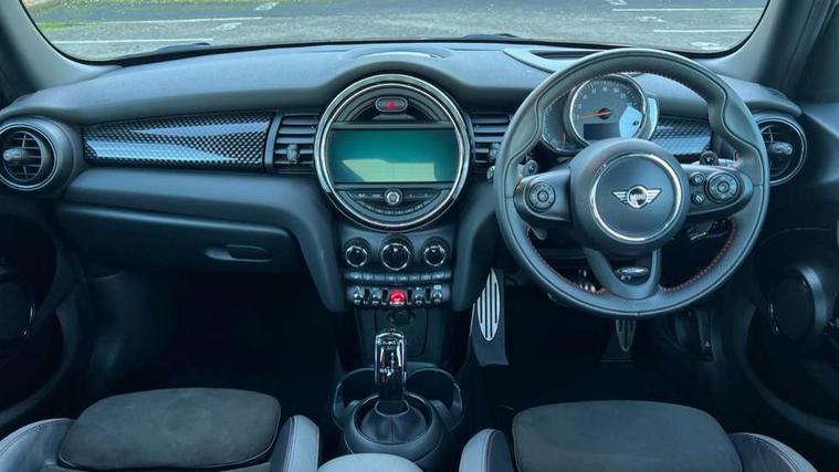 Automatic start/stop function with brake energy recuperation, Compatible mobile phone bluetooth with audio streaming, Electro-mechanical speed dependant steering assistance, Instrument cluster, Mini E-call, MINI TeleServices, On board computer, Service interval indicator, Double Vanos system, Fully variable valve control, High precision injection, Performance Control, Steptronic sport transmission with double clutch and steering wheel paddles, 6.5" touchscreen with LED ring, FM tuner and DAB digital radio, Automatic headlight activation switch, Bonnet scoop, Chrome border honeycomb structure radiator grille with S badge, Chrome plated fuel cap, Dynamic brake lights, Electric front+rear windows, Heated rear window, Heated windscreen washer jets, John Cooper Works - aerodynamic kit (front and rear apron, spoiler), front and rear sport bumpers and part-painted side sills with door sill finishers, John Cooper Works rear spoiler, LED headlight with closed ring and daytime driving lights, Metal door sill strips with Cooper S imprint, Model logo Cooper S on right of tailgate, Rain sensor window wipers, Rear fog lights, Rear LED lights with union jack design, Rear window wiper, Side scuttle panel with integrated indicator, Sun/heat protection glass, Two central exhaust tailpipes with chrome finisher, White indicator lenses, 12V Accessory socket in centre console, 4 lashing eyes in luggage compartment, 60/40 split folding rear seat, Anthracite headlining, Chrome interior highlights, Cupholders, Front and rear head restraints, Front and rear isofix with front passenger airbag deactivation, Glove compartment, Height and length steering column adjustment, Interior lighting with 12 basic colours selectable via toggle switch in roof, John Cooper Works leather steering wheel with contrasting stitching in Chilli Red with John Cooper Works logo, John Cooper Works Logo in seat, Leather gearshift lever and handbrake gaiters, LED reading lights, vanity mirror lights, front foot well light and spotlight on front seats, Manual air conditioning, Mechanical seat adjustment, driver seat height adjust, forward/back and front seats backrest, Mini logo projection on floor from drivers exterior mirror, Multifunction steering wheel, Storage compartments in doors, Storage pocket on back of front seats, Sunvisors with vanity mirrors, Tool kit, 3 point seatbelts on all five seats, 6 Airbags - front, side, head and seat belt tensioners, Anti-lock braking system (ABS), DSC - Dynamic Stability Control, Front and rear disc brakes, Hill start assist, Two tone horn, Tyre pressure monitoring system, Alarm system with tilt sensor, monitoring doors, bonnet interior and tailgate, Electronic vehicle immobiliser, Start/stop toggle with keyless go,