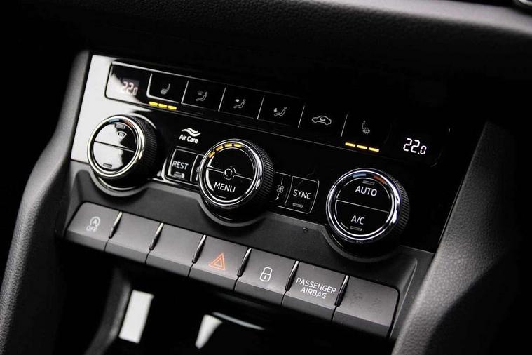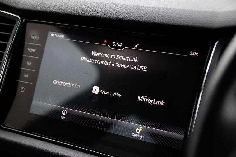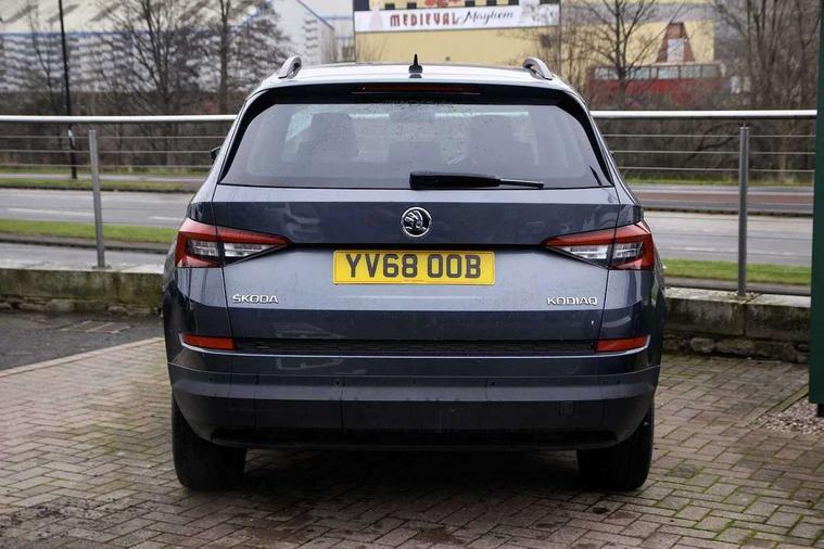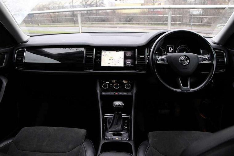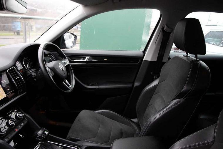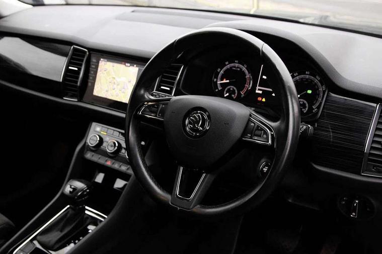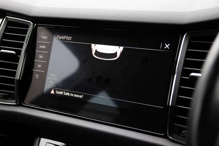 Bluetooth system, Columbus satellite navigation with 9.2" touch screen and integrated Wi-Fi, Digital voice enhancement, Drive mode selector, ECO Stop/start function, Exterior temperature indicator, SmartLink plus, Speed limiter, Tailgate unlocking from outside, Bolero Radio, DAB Digital radio, DVD System, USB and SD card connectivity, Aero front windscreen wipers with intermittent function, Aero rear window wiper, Auto dimming rear view mirror, Automatic activation of hazard warning lights, Black wheel arch surrounds, Body colour bumpers, Body colour door mirrors and handles, Electric front and rear windows, Electrically adjustable heated foldable and auto dimming door mirrors with boarding spots, Front and Rear door steps, Full LED Headlights with adaptive front light system and LED daytime running lights, Headlight washers, Heated rear window, Invisible tailpipe, LED front fog lights with static cornering light function, LED third brake light in rear spoiler, Light assistant (coming home/tunnel light), Radiator grille frame in matt black with chrome strip, Rain and light sensors, Rear spoiler, Safety reflectors on front and rear doors, Sunset privacy glass, Tinted windows, 12V socket in boot, 2 rails with 2 hooks including 4 hooks for net programme, 4 foldable roof handles with rear coat hooks, 4 lashing points on luggage floor, 60:40 foldable rear seat with sliding adjustment and backrest angle adjustment, Bottle holders in door panel in the 1.5 litre front and 1 litre rear, Centre console with open storage box, cup holder and 12V socket, Chrome headlight control button, Chrome interior door handles, Coat hooks on B pillar, Covered storage compartment on driver side, Drawers under driver and front passenger seats, Front and rear height adjustable headrests, Front centre armrest with storage compartment, Front/rear courtesy lights, Gear shift lever with chrome frame and black gloss insert, Height adjustable front seats, Illuminated and cooled glovebox, Illuminated luggage compartment, Isofix system on outer rear seats, Manually adjustable steering column, Net programme in boot (1x horizontal Net, 2x vertical Nets), Overhead glasses storage compartment, Passenger side net compartment on centre console, Pollen filter, Rear centre armrest with cupholders, Removable lamp in luggage compartment, Roll up luggage compartment cover with intermediate position, Small Bags on the inner sides of the front backrests, Small pockets on the inner side of the front backrests, Storage compartment in lower middle Instrument panel, illuminated with closing, Sunvisors with illuminated vanity mirrors, Ticket holder on A Pillar, Umbrella in door panel, Chrome pack - Kodiaq, Auto door release and activation of warning lights in the event of an accident, Driver and passenger airbags, Electronic parking brake with hill hold control, Emergency rear braking signal, ESC (incl. ABS+MSR+ASR+EDS+HBA+DSR+RBS+MKB), Front and rear three point safety belt on all seats, Front assist includes AEB city/urban, Front side airbags, Fuel cut off safety device, Head and knee airbags, Passenger airbag deactivate switch, Rear disc brakes, Safety vest holder in door, Seat belt reminder for all seats, Two tone horn, Tyre pressure monitor, Warning lights in front doors, Alarm with interior monitoring and tilt sensor with safe function, Immobiliser, Keyless entry and start system (KESSY), Remote central locking, Piano black dash inserts,