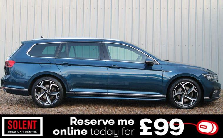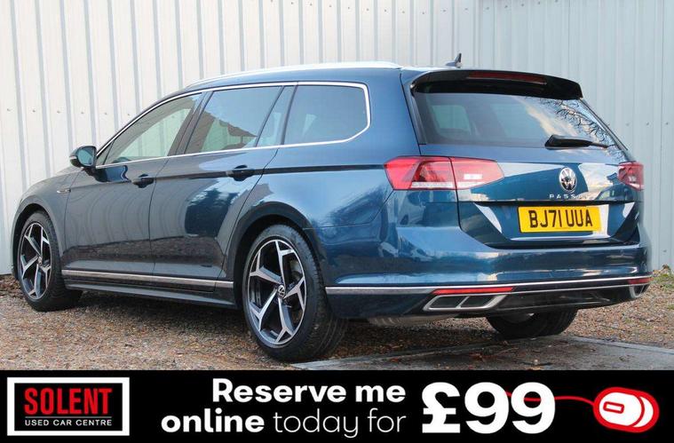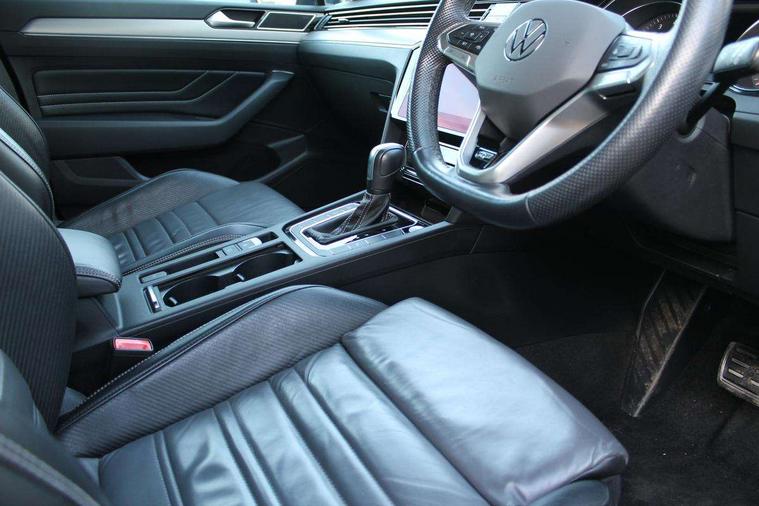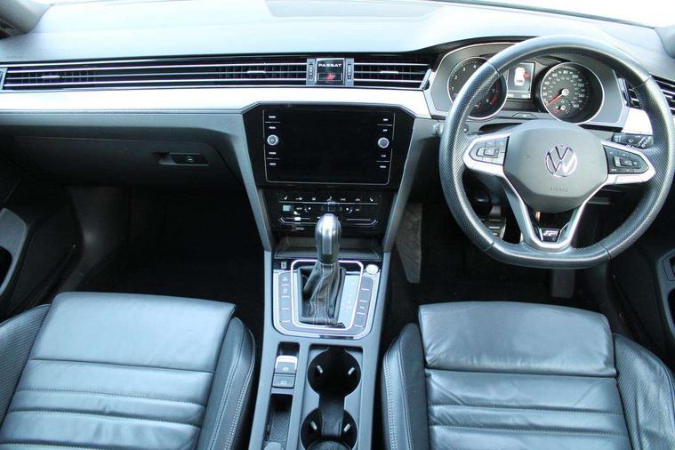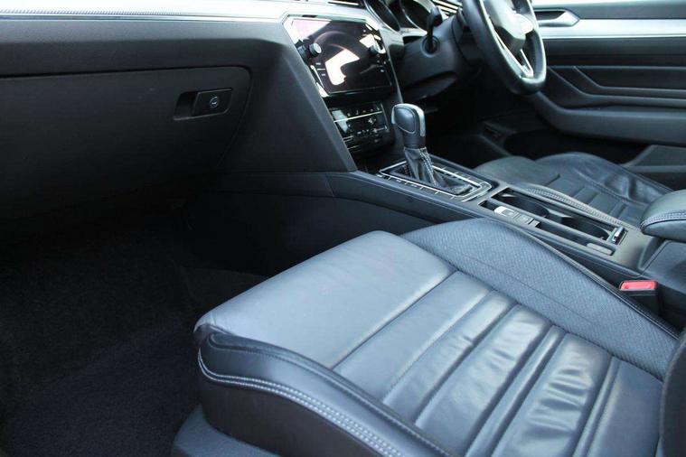 Adaptive cruise control including Front Assist, radar sensor controlled distance monitoring system, City emergency braking system, Driver alert system, Driver profile selection, Exterior temperature gauge with frost alarm, Lane assist, Low washer fluid warning light, Multifunction computer includes visual gear, One touch indicator turn signal, Proactive occupant protection, Security and service including e-call, Speed sensitive power steering, Speedo and rev counter, electronic odometer, trip, service interval display and fuel gauge, Start/Stop function, Traffic jam assist, Voice activation, Warning buzzer and light for front seatbelts unfastened, Battery regeneration during braking, Misfuel prevention device, Petrol Particulate Filter, Aerial for radio integrated into rear windscreen, DAB Digital radio receiver, Auto dimming interior rear view mirror, Automatic headlights with dusk sensor, Automatic leaving home and manual coming home lighting functions, Black radiator grille with chrome louvres, Body colour bumpers, Body colour door handles, Body coloured door mirrors with integrated indicators, Chrome side window surrounds, Electric heated windscreen washer jets, Front and rear electric windows, Fully galvanised body, Gloss black finish on B pillar, Heated rear window, High level 3rd brake light, LED rear lights, LED rear number plate lights, Plastic load sill protection, Rain sensor, Rear tinted glass from B pillar backwards, approx 65% tinted, Rear window wash/wipe, Remote electrically adjustable and foldable heated door mirrors including automatic dimming function on drivers side door mirror puddle lights, Silver anodised roof rails, Warning lights for open tailgate and doors, White instrument lighting, Windscreen wipers/ intermittent wipe + 4 position delay, 12V socket in front centre console, 12V socket in luggage compartment, 40:20:40 split folding rear seat backrests, Carbon optic side bolsters, Climate control - 3 Zone electronic air conditioning with automatic air recirculation, Driver's door storage compartment for 1.0 litre bottle, Extending luggage compartment cover with convenience opening, stowable, Front and rear interior lighting with delay and dimming function, Front centre armrest with storage compartment and two rear air vents, Front cupholders x2 with covers, Front passenger storage compartment for 1.5 litre bottle, Front seats with embroidered R Line logo on backrest, Height adjustable and removable variable boot floor, Height adjustable rear seat head restraints (x3), Height/reach adjust steering wheel, Illuminated vanity mirrors, Isofix child seat preparation, outer rear seats, Load lashing points x 4 in luggage compartment, Load through provision, Lockable, illuminated, cooled glovebox, Luggage compartment lighting, Nappa leather upholstery, Rear seat centre armrest with storage compartment, Stainless steel pedals, Storage compartment in rear doors, Storage compartment in roof console with cover, Unique R Line door sill protectors, Unique R Line front and rear carpet mats, Easy open package with full electric tailgate/ boot - Passat (Estate), R line styling pack - Passat (Estate), 3x3 point rear seatbelts, ABS (Anti locking brake system) includes BAS (Brake assist) and EBD (Electronic brake pressure distribution), Automatic post collision braking, Disc brakes front and rear, Door open warning reflectors, Driver/Front Passenger airbags, Drivers and front passengers safety optimised head restraints, longitudinal and height adjustable, Drivers knee airbag, Electronic parking brake with auto hold, First aid kit, Front and rear passenger curtain airbags, Front passenger airbag deactivation switch, Front side impact airbag, Height adjustable front 3 point seatbelts + pretensioners, Hill hold function, Pre crash preventive occupant protection, Rear seat side impact airbags, Rigid safety cell with front and rear crumple zones, Tyre pressure loss indicator, Volkswagen roadside assistance, Warning light for rear seat belts if unfastened, Alarm with interior protection and deactivation via infotainment system, Electronic engine immobiliser, Chrome air vent and instrument surround, Unique R Line dark diamond flag decorative inserts in dash and door panels,