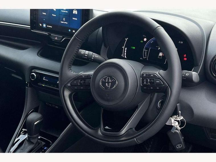 7" Digital Combimeter, Adaptive cruise control, Adjustable speed limit with speed warning, Bluetooth connectivity, Colour binocular inspired displays with digital speedometer, E-call, Electric power steering, Hybrid energy display, Lane trace assist, Multi information display switches on steering wheel, Pre-collision system (PCS), Reversing camera, Smartphone integration with Apple CarPlay and Android auto, Tailgate, Voice recognition, Vehicle Stability Control (VSC), 4 speakers, 9" Multimedia touch display, Toyota Touch 3 system with DAB radio, USB connection, Acoustic windscreen glass, Auto high beam assist, Auto windscreen wipers, Automatic headlights, Body coloured door mirrors, Electric adjustable heated door mirrors, Follow me home headlights, Front auto power windows with anti jam protection, LED daytime running lights, LED front fog lights, LED front light guide, LED Headlights, LED High mounted stop lamp, LED Indicators, LED rear light guide, Manual headlight levelling, Painted chequered front grille, Rain sensor, Rear auto power windows with anti jam protection, Rear privacy glass, Rear roof spoiler, Rear side wing doors, Rear wiper, Shark fin antenna, Turning signal integrated indicators in door mirrors, Variable front intermittent wipers, 3 adjustable rear headrests, 3 seat bench in 2nd row, 3 spoke leather steering wheel, 60/40 split folding rear seat, Active headrests, Adjustable boot height, Auto air conditioning, Coat hooks in rear grab handles, Cup holders (2 front & door), Data Communication Module (DCM) connected services, Fabric upholstery, Front armrest, Glovebox, Grey roof lining, Height adjustable driver's seat, Isofix seat fixing, Leather gearshift, Pollen filter, Shopping bag hooks, Single front passenger seat, Tilt/telescopic steering column, 3 point seatbelts on all rear seats, ABS+EBD+Brake assist, Electronic parking brake, Emergency brake light system (EBS), Front passenger airbag on/off switch, Front seatbelt reminder, Hill start assist control (HAC), Rear child proof door locks, Rear seat belt reminder, Supplemental Restraint System (SRS) 8 airbags: Driver & passenger's airbags, dual side curtain airbags, side impact airbags, front centre airbag, Toyota Safety Sense 3 with over the air updates, Tyre pressure warning system, 2x Master key, Alarm/immobiliser, Remote powered central double locking doors, Soft touch instrument panel, Space saver spare wheel,