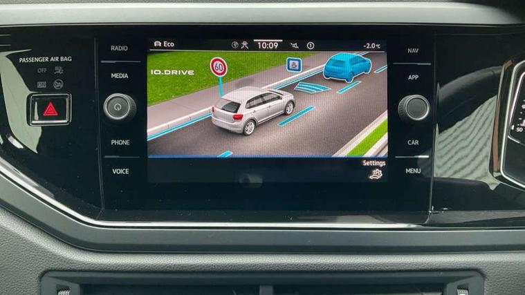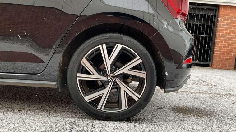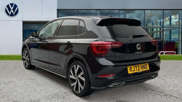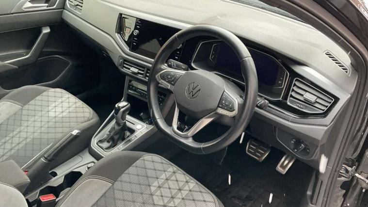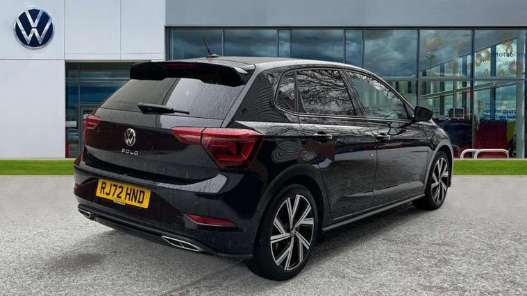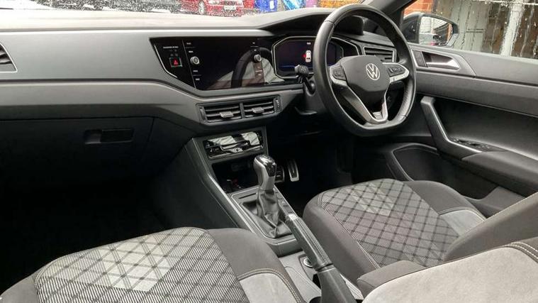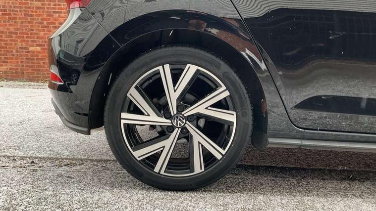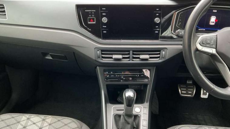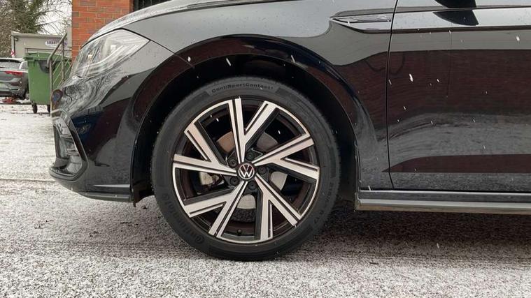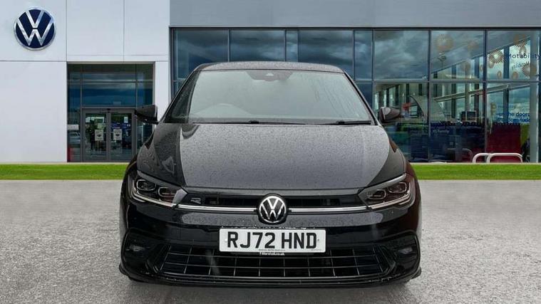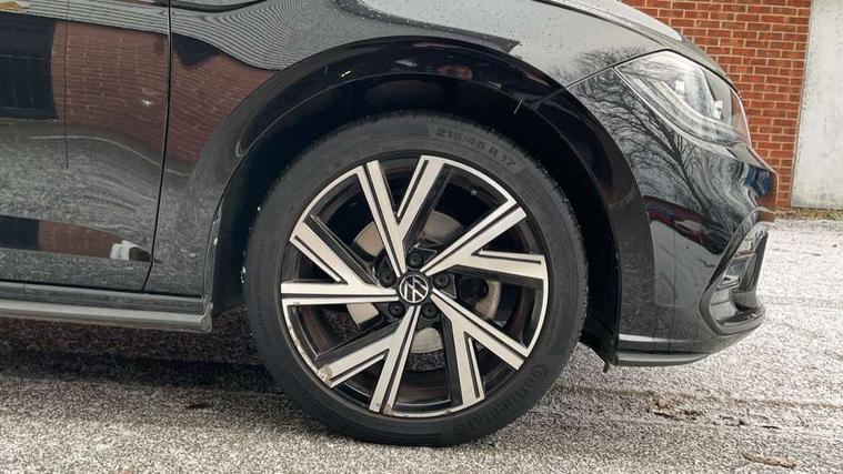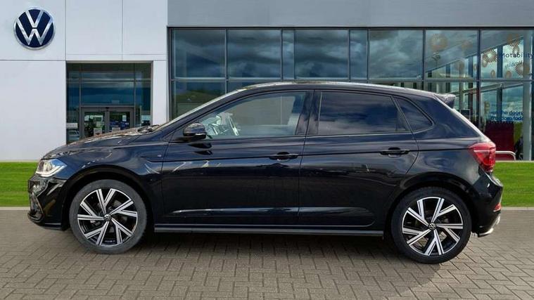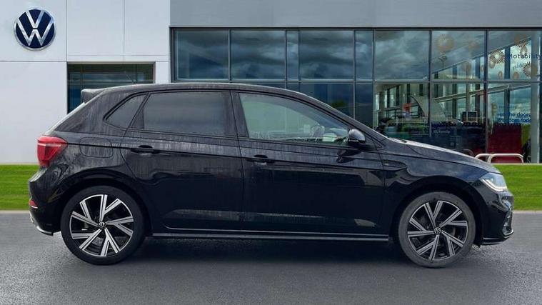 Adaptive cruise control with follow-to-stop and speed limiter, Bluetooth mobile phone interface, Digital Cockpit Pro with 10.25" Display, Driver alert system, Dynamic road sign display, Emergency call service, Power assisted speed sensitive steering, Preparation for We connect and We connect plus, Speedo and rev counter, electronic odometer, trip, service interval display and fuel gauge, Standard rear axle, Travel Assist - Lane keeping system and traffic jam assist, Travel assist including emergency assist, Trip computer, Warning signal and warning light for front and rear seatbelts not fastened, Washer fluid level indicator, Wireless app connect, Front wheel drive, Rear shock absorpion, Start-stop system with battery regeneration (recuperation - energy recovery during braking), DAB Digital radio, Diversity antenna for FM reception, Front and rear 6 speakers, Body colour bumpers, Body colour door handles, Electric front windows, Front scuff plates with R-Line logo, Heat insulating darkened glass in side and rear windows, Heat insulating glass windscreen, Power folding adjustable/heated exterior mirrors and front passenger exterior mirror lowering function, Rear electric windows, Rear fog light, Rear side wing doors, Rear windscreen washer and wiper with interval delay, Third brake light, 12V power socket in centre console, 2 USB-C ports in the front, 2 USB-C charging sockets on the center console in the rear, 3 rear head restraints, 60/40 split folding rear seat and rear seat bench not split, Air care climatronic air conditoning system with active combination filter and 2-zone temperature control, Black roof lining, Chrome plated radiator grille inserts, air vent surrounds and light switch surrounds, Door and side trim panel, Driver and front passenger seat height adjustment, Driver/passenger sunvisors with illuminated vanity mirrors, Front + rear carpet mats in recycled material, Front centre armrest, Front footwell illumination, Front seat backrest storage pockets, Front sports comfort seats, Handbrake lever handle in leather, Headliner in recycled material, Isofix child seat preparation easy-fit (for two outer rear seats, and front passenger seat) compatible with I-size, Karoso artvelours cloth upholstery, Leather trimmed gear knob, LED interior light with switch off delay and dimmer, 2 reading lights front and rear, Luggage compartment cover, Luggage compartment floor, Luggage compartment lighting, Lumbar adjustment for front seats, Single front passenger seat, Stainless steel pedals, Standard pedal cluster, Three spoke leather wrapped multifunction steering wheel with shifting paddles, Light and sight pack - Polo R-Line/Black Edition, 3 point height adj front seatbelts + pretensioners, 3x3 point rear seatbelts, ABS, Driver and front passenger airbag with front passenger airbag deactivation, Drivers and front passengers safety optimised head restraints, ESC (Electronic stability control) + EDL (Electronic Differntial lock) and ASR (Traction control), Extended and predictive pedestrian/ cyclist protection, Front curtain and side airbags with center airbag, Front/rear disc brakes, Hill hold control, Manual child lock in rear doors, Single tone horn, Tyre pressure loss indicator, Alarm with interior protection, Anti-theft alarm system with interior monitoring, backup horn, and towing protection, Anti-theft wheel bolts, Electronic engine immobiliser, Chrome applications on rotary light, mirror adjustment, window regulator switches, outlet with frame in black, Dark grey anodised matt decorative inserts in dash and front door panels, Low rolling resistance tyres,