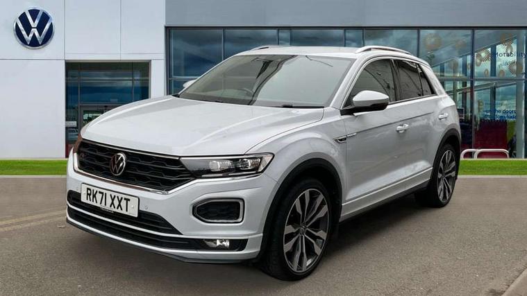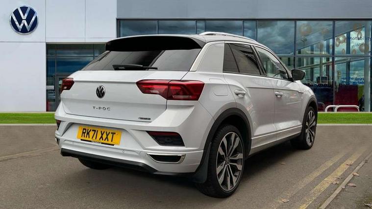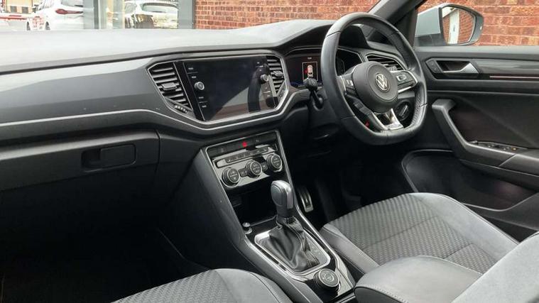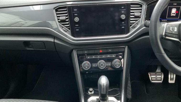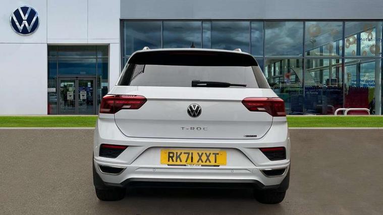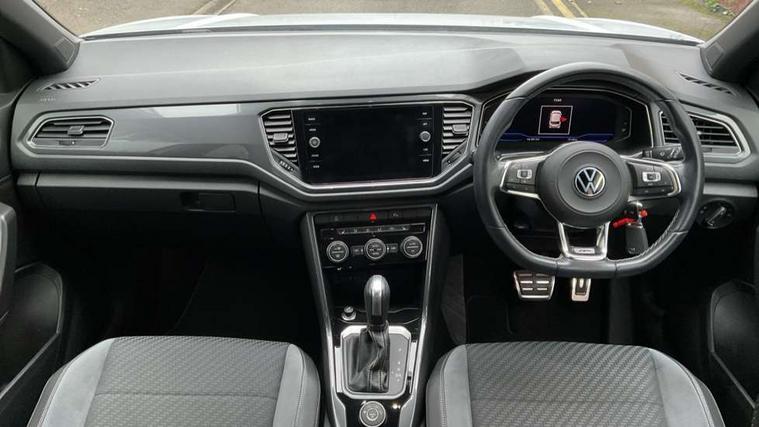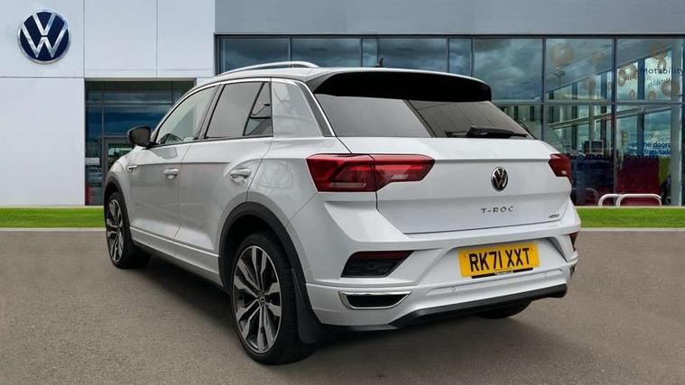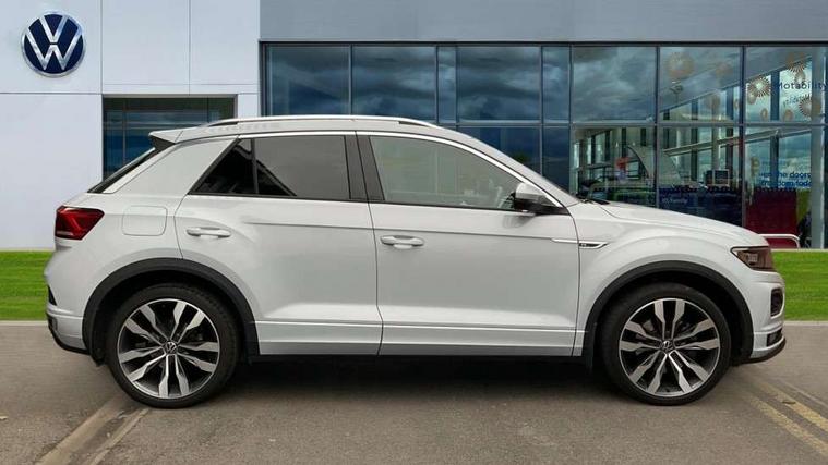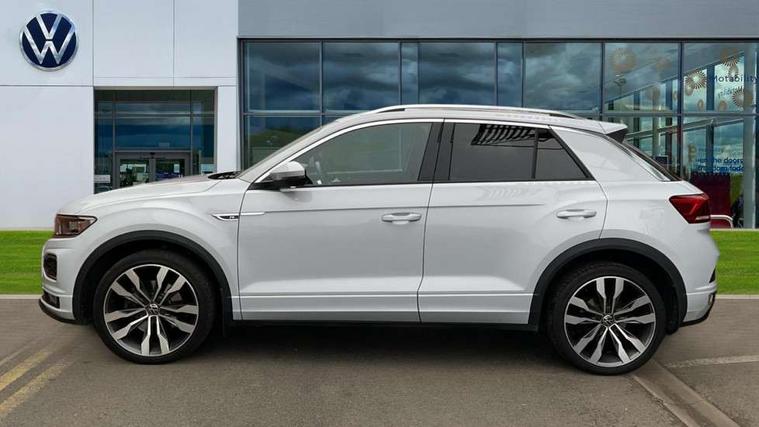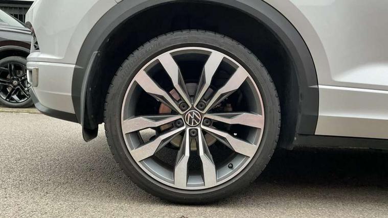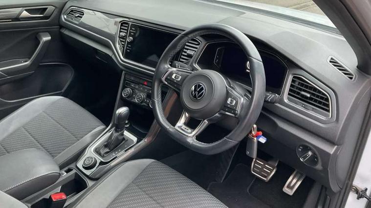 'Lights On' Reminder warning buzzer, Adaptive cruise control, Bluetooth telephone and audio connection for compatible devices, Car information display, Digital Cockpit Pro - Active info display, Driver alert system with audible and visual fatigue detection system, Driver tips and journey analysis, Emergency call service, Lane assist with warning text instrument cluster, Modified key software - reduce switch off time for key status change to Long no motion, Multifunction camera, Multifunction computer with visual gear change recommendation for fuel consumption, Navigation system discover media including streaming and internet, Service interval indicator, Think blue trainer driver tips and journey analysis, Traffic sign recognition, Voice activation, Warning sound and light for front seatbelts unfastened, Wireless app connect for apple carPlay, 4MOTION active control, Battery regeneration during braking, Rear shock absorption for sports version, Start/stop function with battery regeneration, DAB Digital radio, Disk brakes in front, Diversity antenna for FM reception, Music playback - MP3, WMA and AAC files, Premium USB cable in choice of either Apple or Android smartphone compatibility, SD card slot, Simultaneous pairing of 2 compatible mobile devices, SMS functionality - read, compose and send SMS messages using touch-screen display, Storage compartment with longitudinal and height adjustable in armrest and two rear air vents, Three route options - Fast, Short, Eco, Title and cover art display, USB-C Interface and USB charging socket, Auto dimming interior rear view mirror, Automatic coming/leaving home lighting function and daytime running lights, Automatic hazard lights activation under emergency braking, Black grained lower door protectors, Body colored door lower parts, Body colour door handles, Body colour rear roof spoiler, Chrome effect left and right trapezoid exhaust tailpipe fascia surround, Chrome plated moldings, Chrome trim on upper and lower radiator grille, Dusk sensor, Dynamic headlight range control with self adjusting whilst driving, Electrically foldable, adjustable and heated door mirrors with puddle lights and reverse activated kerb-view adjustment on passenger's door mirror, External USB type C socket and charging sockets, Front and rear electric windows, Front fog lights with static cornering function, Front windscreen wiper with intermittent wipe and 4 position delay, Fully galvanised body, Heated rear window, Heated windscreen washer jets, High level 3rd brake light, LED darkened rear light clusters, LED headlamps with automatic range adjustment and unique signature LED separate daytime running lights, LED rear number plate lights, LED tail lamp rear comination lamps, Privacy glass, R-Line design body coloured bumpers, Rain sensor, Rear tinted glass from B-pillar backwards approx 65% tinted, Rear wash/wipe with intermittent wipe setting, Silver anodised roof rails, Volkswagen roundel, 12V socket in centre console storage area, 3 rear head restraints, 4 load lashing points in luggage compartment, Aluminium pedals, Black roof lining and sun visors, Branded points of interest, Carbon flag cloth upholstery, Chrome plated radiator grille inserts, air vent surrounds and light switch surrounds, Climate control - 2 zone electronic air conditioning with automatic air recirculation and allergy filter, Door and side trim panel, Door and side trim panel in foam film, insert in leatherette, Drawer under drivers seat, Front + rear carpet mats, Front centre armrest, Front cupholders x 2, Front seat back storage pockets, Front sports seats with R-Line logo on seat backrest, Glovebox, Heated front seats, Height adjustable front seats, Height/reach adjust steering wheel, Instrument lighting, white adjustable panel illumination, Interior light delay, Interior light in footwell, Isofix easy fit child seat preparation for 2 outer rear seats, Leather gearshift knob, Leather multi function sport steering wheel with gear change selection via paddle shift on steering wheel, LED interior light with switch off delay/dimmer and 2 front/rear LED reading lights, Load through provision with single cup holder when folded down, Luggage compartment cover, removable, Luggage compartment lighting, R Line badge, Scuff plates in door apertures, Split folding rear seat backrests with centre armrest, Stainless steel pedals, Storage compartment in left and right luggage area, Storage compartment in rear doors, Storage compartments in driver and front passenger doors, Sunvisors with illuminated vanity mirrors, Unique R Line door sill protectors, White ambient lighting, R line styling pack - T-Roc, Winter pack - T-Roc, 3 rear three point seatbelts, ABS, Curtain airbags, Driver and front passenger safety-optimised head restraints, Drivers and front passengers airbags with passengers deactivation switch, Drivers seatbelt reminder, Electronic parking brake with auto hold, Electronic stability control (ESC) includes ASR, EDL, EDTC and trailer stabilisation function, Front assist with city emergency braking and pedestrian monitoring, Front seat side impact airbags, Hill start assist, Predictive pedestrian protection, Rigid safety cell with front and rear crumple zones, Single tone horn, Three point height adjust front seatbelts + pretensioners, Tyre pressure loss indicator, Ventilated front and rear disc brakes, Volkswagen roadside assistance, Alarm with remote central locking and interior protection, Electronic engine immobiliser, Remote central locking with SAFELOCK, radio remote control with 2 remote control folding keys, Shadow grey decorative inserts in dash, centre console and door panel, 19" Suzuka alloy wheels with low rolling resistance tyres and anti wheel bolts,