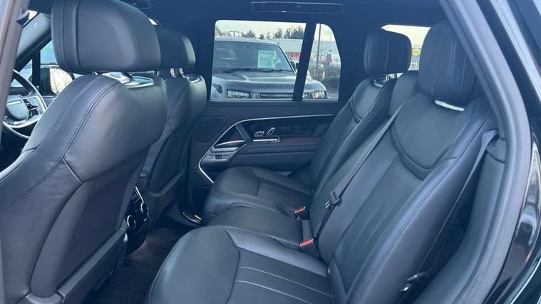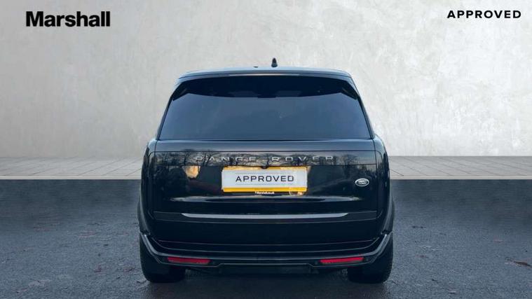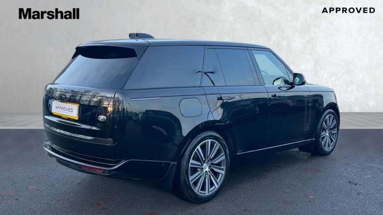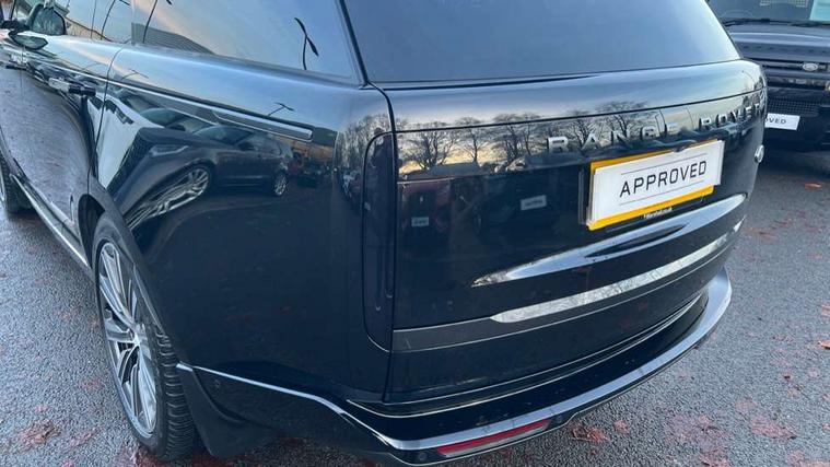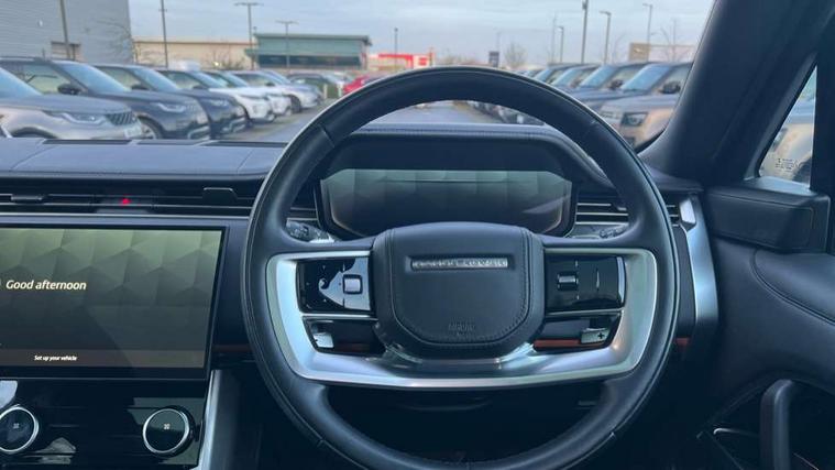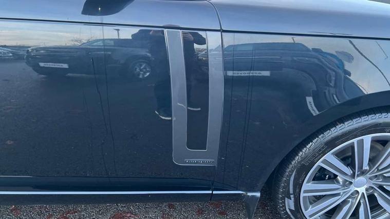 13.1" Touchscreen, 3D surround camera inc frwd traffic detection, vehicle clearance guidance, 3D view, clearsight ground view, manoevure light, 360 parking aid, wade sensing, Adaptive cruise control with steering assist, All Terrain Info Centre, All wheel steering, Android Auto, Apple car play, Blind spot assist, Bluetooth connectivity streaming, Configurable programs, Driver condition response, Eco mode, Electric power assisted steering (EPAS), Emergency call service, Front and rear parking aid, Head up Display, Interactive driver display, Lane keep assist, Powered gesture tailgate/boot lid, Rear collision monitor, Rear traffic monitor, Remote, Traffic sign recognition with adaptive speed limiter, Wi-Fi Enabled with data plan, Wireless device charging with phone signal booster, 8 speed automatic transmission, Active damper technology system, Adaptive dynamics, All terrain progress control, All Wheel Drive (AWD), Automatic access height, Electronic active differential with torque vectoring by braking, Electronic air suspension with dynamic response, Terrain Response 2 Auto, Twin speed transfer box, Digital Audio Broadcast radio-DAB, Meridian 1600W signature sound system, Pivi pro including smart settings, Connected navigation pro, nuance speech, USB socket, Acoustic laminated windscreen, Animated directional indicators, Automatic headlights, Automatic levelling headlights, Centre high mounted stop light, ClearSight interior rear view mirror, Electric windows with one touch open/close and anti trap, Flush deployable exterior door handles, Front and rear recovery eyes, Front fog lights, Headlamp power wash, Heated rear window, Heated washer jets, Illuminated metal treadplates with Autobiography script, Laminated front and rear side glass, LED tail lights, Power fold, auto-dimming, heated door mirrors with approach lights, Rain sensing windscreen wipers, Rear boot, Rear fog lights, Rear side wing doors, Rear wash/wipe, Side repeater indicators in mirror, Solar attenuating windscreen, Trailer stability assist, Winter wiper park position, 12V power sockets, 3 seat bench in 2nd row, Air quality sensor, Auto folding loadspace cover, Bright metal pedals, Cabin air purification pro, Cabin lighting, Customer configurable single point entry, Driver and passenger front seat armrests, Easy boot loading, Ebony Carpet, Electric rear side window sunblinds, Four zone climate control, Front and rear cupholders, Front and rear grab handles, Front head restraints, Gearshift paddles, Heated steering wheel, Hook in load space, Loadspace light, Luggage tie down in loadspace, Multifunction steering wheel, Rear centre armrest, Rear head restraints, Rear ISOFIX, Single front passenger seat, Soft close doors, SV bespoke carpet mats, Twin blade sunvisors with Illuminated vanity mirrors, Upper and lower glovebox, Versatile loadspace floor in tailgate, Online pack with data plan - Range Rover, 3x3 point rear seat belts, Anti-lock braking system (ABS), Black brake calipers, Brake hold function, Cornering brake control (CBC), Customer configurable autolock, DSC - Dynamic Stability Control, Electronic brake force distribution, Electronic parking brake, Electronic traction control, Emergency brake assist, Emergency braking, Front airbags with passenger seat occupant detector, Front side airbags, Hill descent control, Hill launch assist, Illuminated seat belt buckles, Low traction launch, Occupant protection assist, Power operated child locks, Roll stability control, Tyre pressure monitoring system (TPMS), Immobiliser, Intrusion sensor and alarm, Keyless entry, Locking wheel nuts, Remote central locking, Noble chrome controls,