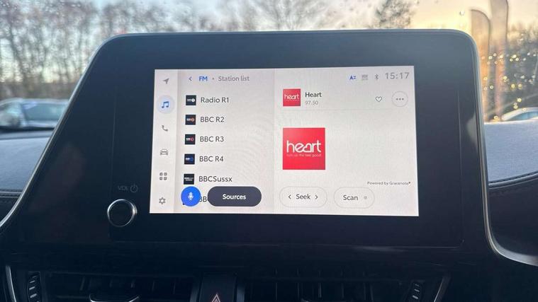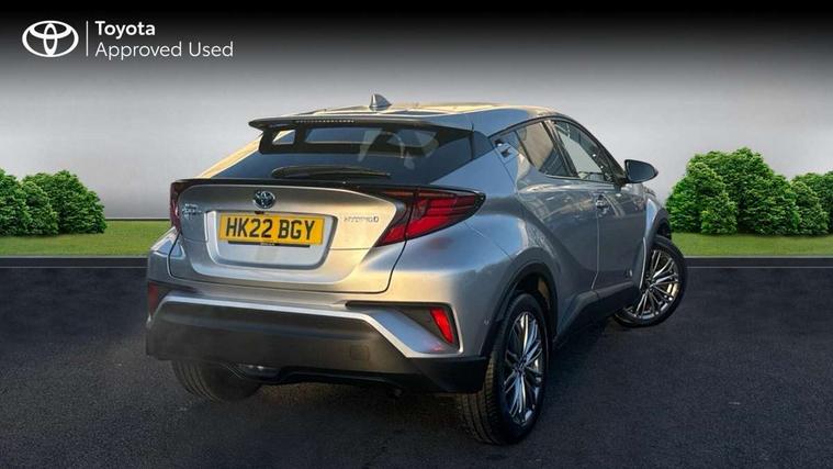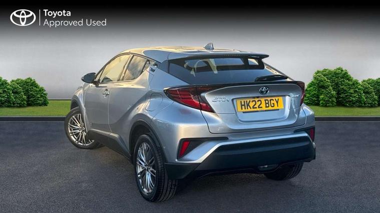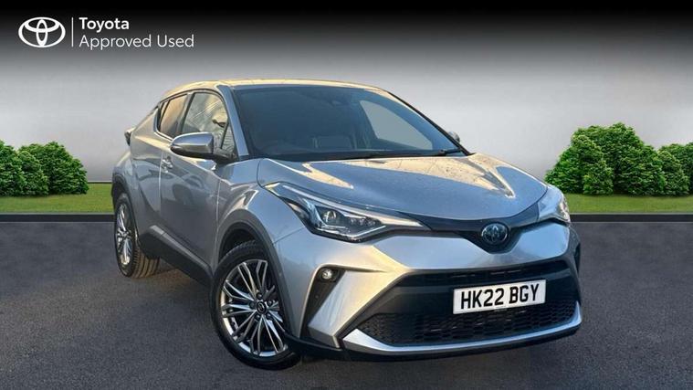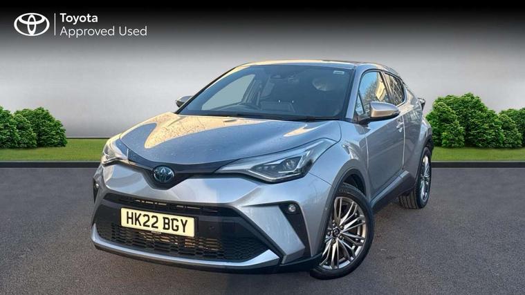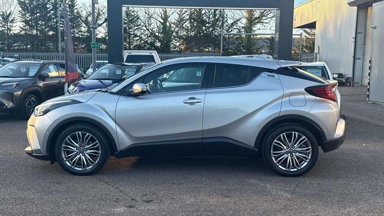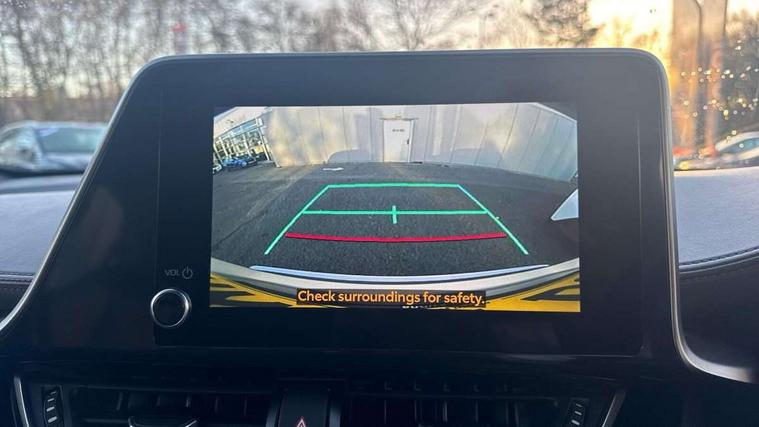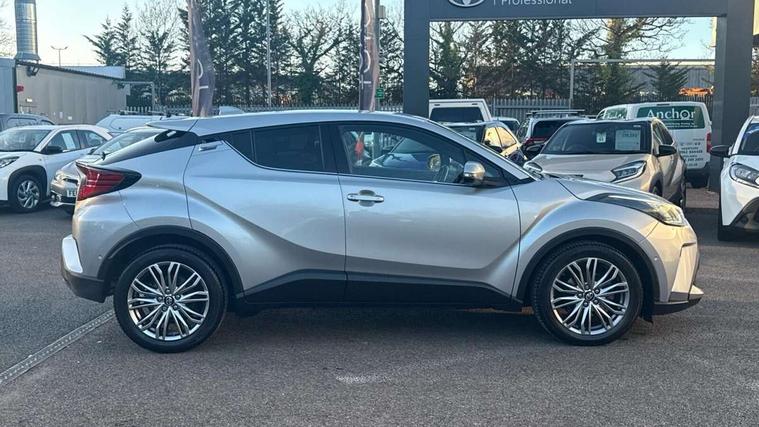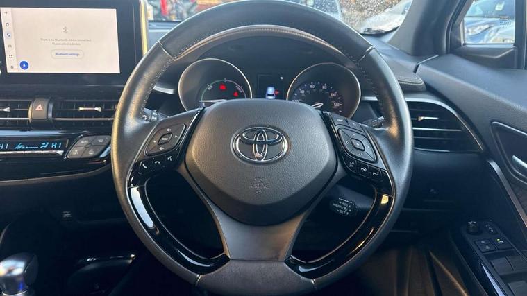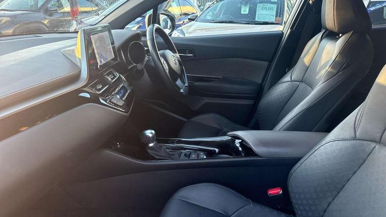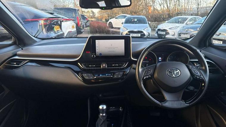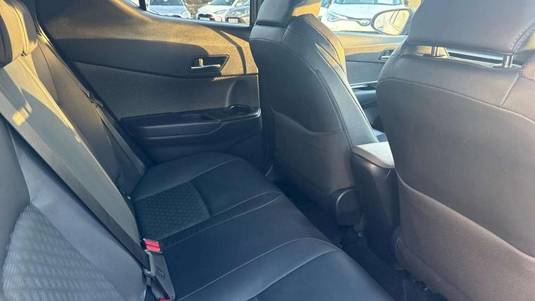 4.2" coloured TFT screen for multi-information display, Adaptive cruise control, Bluetooth connectivity, E-call, Electric power steering, Hybrid system indicator, Lane departure alert with steering control, Remote boot door release in cabin, Remote boot door release in key, Reversing camera, Road sign assist - RSA, Simple Intelligent parking assist, Touch 2 Go navigation system, Trip computer, Voice recognition, Vehicle Stability Control (VSC), 6 speakers, AM/FM radio, DAB Radio (Digital Audio Broadcasting), Toyota touch 2 multimedia system with 8" display, USB connector, Wi-fi connectivity, Adaptive front light system, Adaptive LED Headlights, Anti-jam protection on power windows, Auto high beam, Auto up and down function on all power windows, Automatic headlight levelling, Automatic headlights, Automatic headlights cut-off, Black and body coloured rear bumper, Black upper front grille, Body colour door handles, Body colour door mirrors, Body colour front spoiler lip, Body coloured front bumper, Boot door release with push button, Electric heated door mirrors, Follow me home headlights, Front and rear power windows, Honeycomb lower front grille, LED daytime running lights, LED fog lights, LED front light guide, LED High mounted stop light, LED rear brake lights, LED rear combination lights, Noise reduction layer on front windows and windscreen, Power adjustable door mirrors, Privacy glass, Rain sensor, Rear sequential indicators, Rear side wing doors, Rear spoiler, Rear tailgate, Rear window defogger, Rear window wiper, Shark fin antenna, UV-filter on driver and passenger windows, UV-filter on rear windows, 12v power outlet - front, 3 rear headrests, 3 seat bench in 2nd row, 3 spoke leather steering wheel, 60/40 split folding rear seat, Adjustable rear headrests, Adjustable speed limiter switch on steering wheel, Assist grips front and centre pillar, Audio and telephone switches on steering wheel, Black front door assist grips, Blue ambient lighting on front cup holders, Blue ambient lighting on front doors, Boot light, Chrome interior door handles, Driver and front passenger personal light, Driver and front passenger Whiplash Injury Lessening seats, Driver and passenger seatback pockets, Dual zone automatic air conditioning, Floor mats, Front cupholders, Front head restraints, Front sports seats, Glovebox with internal light, Hard tonneau cover, Heated driver and front passenger seats, Heated steering wheel, Hooks for luggage holding net, Humidifying Nanoe air purifier, Illuminated entry system, Isofix attachments on outer rear seats, Leather gearshift, Light on driver sun visor, Light on passenger sun visor, Manual telescopic steering wheel, Manual tilt steering wheel, Microphone on front personal light, Mirror on driver sun visor, Mirror on passenger sun visor, Multimedia switches on steering wheel, Pollen filter, Power adjustable lumbar support on driver seat, Power tilting cushion on driver seat, Shopping bag hooks, Single front passenger seat, Slow opening on lower glovebox, Voice recognition switch on steering wheel, Leather pack - C-HR, Tech with parking sensor pack - C-HR, 16 Disk front wheel brake, 3x3 point rear seatbelts, ABS+EBD+Brake assist, Electronic parking brake, Front and rear seatbelt reminder, Front passenger airbag on/off switch, Hill start assist control (HAC), Pre collision system with pedestrian detection, Pre-tensioners and force limiters, Rear door child safety locks, SRS Airbags - Driver + Front passenger, front side, front and rear curtain and driver's knee airbags, Toyota safety sense, Tyre pressure monitoring system, Acoustic vehicle alert system (AVAS), Glass-breaking alarm sensors, Immobiliser, Intrusion alarm, Intrusion sensor, Motion sensor alarm, Power door locks, Power passenger window lock, Remote central locking, Black lower dashboard, Dark brown upper dashboard, Piano black console, Silver deco line on upper dashboard, Tyre repair kit,