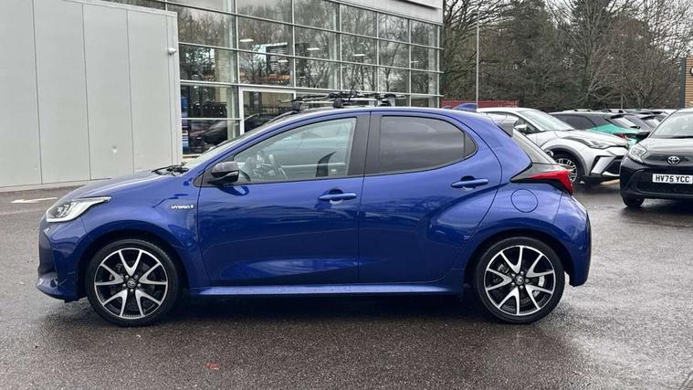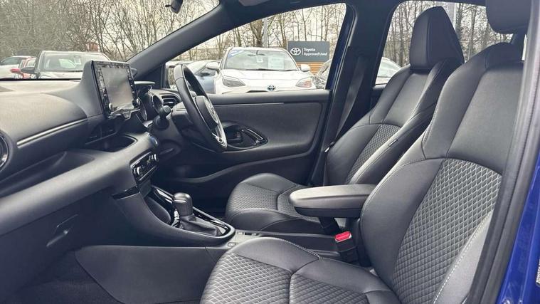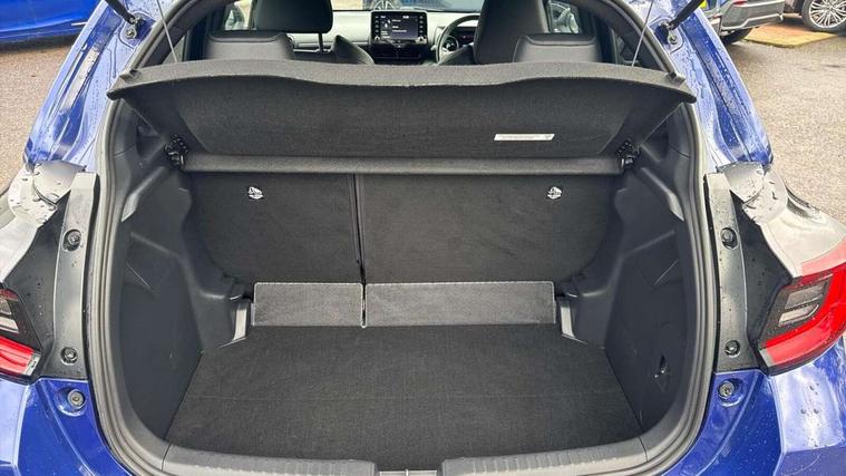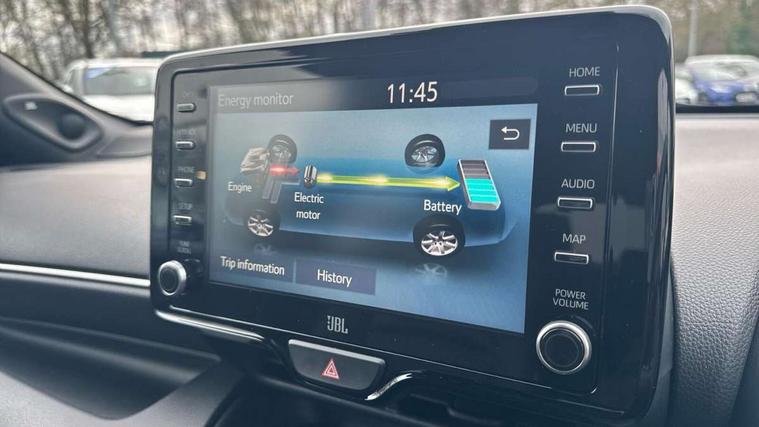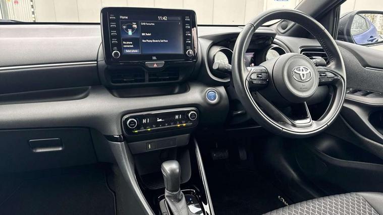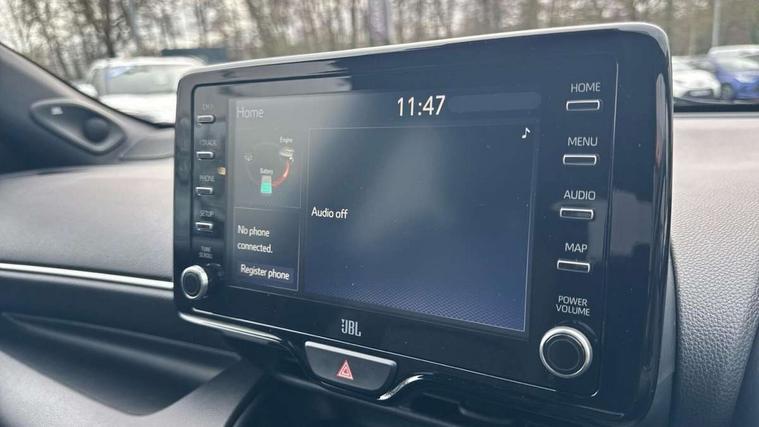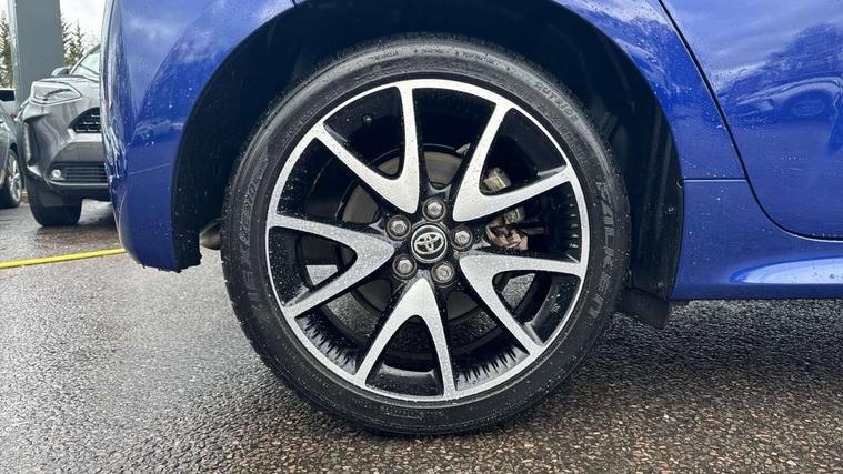 Adaptive cruise control, Adjustable speed limit with speed warning, Bluetooth connectivity, Colour binocular inspired displays with digital speedometer, E-call, Electric power steering, Hybrid energy display, Multi information display switches on steering wheel, Reversing camera, Smartphone integration with Apple CarPlay and Android auto, Vehicle Stability Control (VSC), 8" Multimedia display touch screen, JBL Premium sound system with 8 speakers, Toyota Touch 2 with DAB, USB connection, Acoustic windscreen glass, Auto windscreen wipers, Automatic headlights, Body coloured door mirrors, Electric adjustable heated door mirrors, Follow me home headlights, Front auto power windows with anti jam protection, Full LED rear lights, LED daytime running lights, LED front fog lights, LED Headlights, LED High mounted stop lamp, Painted front grille, Rear auto power windows with anti jam protection, Rear privacy glass, Rear spoiler, Shark fin antenna, Turning signal integrated indicators in door mirrors, 3 adjustable rear headrests, 3 spoke leather steering wheel, 60/40 split folding rear seat, Adjustbale boot height, Coat hooks in rear grab handles, Cup holders (2 front & door), Data Communication Module (DCM) connected services, Dual zone automatic air conditioning, Fabric seat with partial synthetic leather upholstery, Front armrest, Front sport seats, Glovebox, Height adjustable driver's seat, Height adjustable passenger seat, Isofix seat fixing, Leather gearshift, Map pockets on the backs of the front seats, Pollen filter, Shopping bag hooks, Tilt/telescopic steering column, 3 point seatbelts on all rear seats, ABS+EBD+Brake assist, Active headrests, Electronic parking brake, Emergency brake light system (EBS), Front passenger airbag on/off switch, Front seatbelt reminder, Hill start assist control (HAC), Rear child proof door locks, Rear seat belt reminder, Supplemental Restraint System (SRS) 8 airbags: Driver & passenger's airbags, dual side curtain airbags, side impact airbags, front centre airbag, Toyota Safety Sense 2, Precollison + Night time Pedestrian & Cyclist Detection, Lane Trace Assist, Auto High Beam, Intelligent ACC & Road Sign Assist, Tyre pressure warning system, Alarm/immobiliser, Keyless smart entry with push button start, Remote powered central double locking doors, Piano black interior trim, Soft touch instrument panel, Space saver spare wheel,