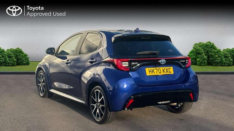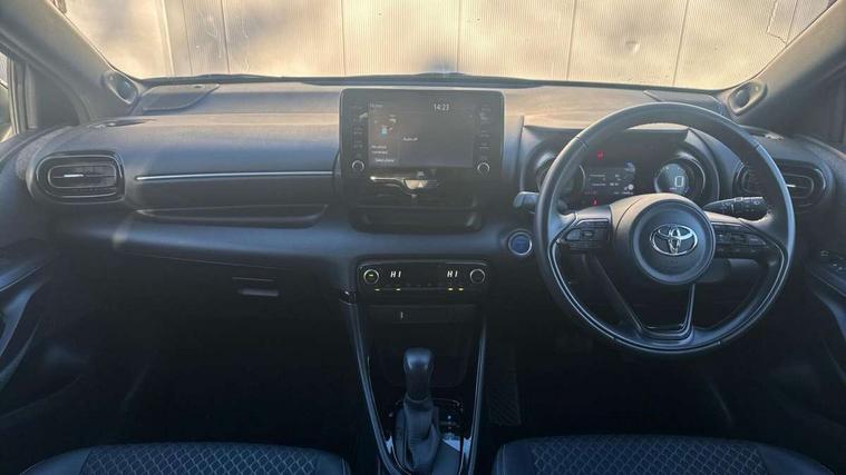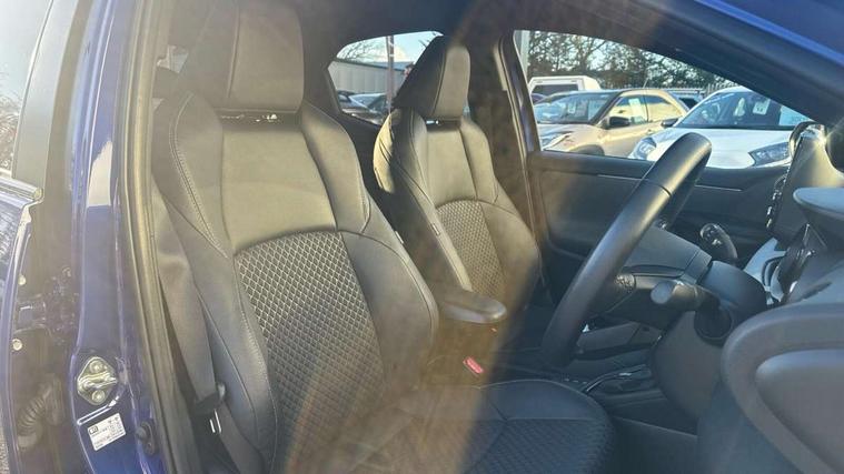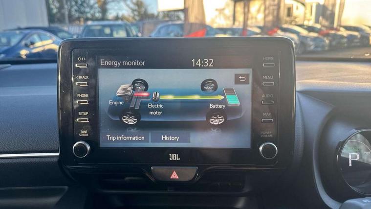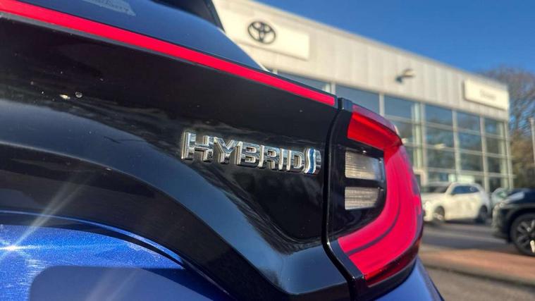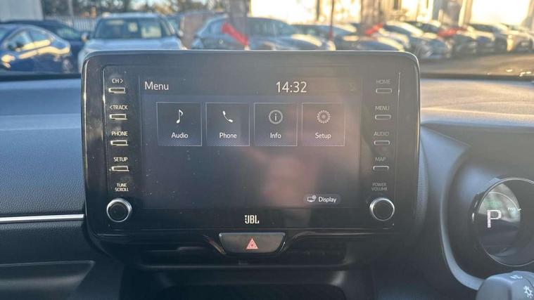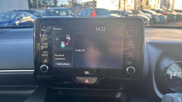 Adaptive cruise control, Adjustable speed limit with speed warning, Bluetooth connectivity, Colour binocular inspired displays with digital speedometer, E-call, Electric power steering, Hybrid energy display, Multi information display switches on steering wheel, Reversing camera, Smartphone integration with Apple CarPlay and Android auto, Vehicle Stability Control (VSC), 8" Multimedia display touch screen, JBL Premium sound system with 8 speakers, Toyota Touch 2 with DAB, USB connection, Acoustic windscreen glass, Auto windscreen wipers, Automatic headlights, Body coloured door mirrors, Electric adjustable heated door mirrors, Follow me home headlights, Front auto power windows with anti jam protection, Full LED rear lights, LED daytime running lights, LED front fog lights, LED Headlights, LED High mounted stop lamp, Painted front grille, Rear auto power windows with anti jam protection, Rear privacy glass, Rear spoiler, Shark fin antenna, Turning signal integrated indicators in door mirrors, 3 adjustable rear headrests, 3 spoke leather steering wheel, 60/40 split folding rear seat, Active headrests, Adjustable boot height, Coat hooks in rear grab handles, Cup holders (2 front & door), Data Communication Module (DCM) connected services, Dual zone automatic air conditioning, Fabric seat with partial synthetic leather upholstery, Front armrest, Front sport seats, Glovebox, Height adjustable driver's seat, Height adjustable passenger seat, Isofix seat fixing, Leather gearshift, Map pockets on the backs of the front seats, Pollen filter, Shopping bag hooks, Tilt/telescopic steering column, 3 point seatbelts on all rear seats, ABS+EBD+Brake assist, Electronic parking brake, Emergency brake light system (EBS), Front passenger airbag on/off switch, Front seatbelt reminder, Hill start assist control (HAC), Rear child proof door locks, Rear seat belt reminder, Supplemental Restraint System (SRS) 8 airbags: Driver & passenger's airbags, dual side curtain airbags, side impact airbags, front centre airbag, Toyota Safety Sense 2, Precollison + Night time Pedestrian & Cyclist Detection, Lane Trace Assist, Auto High Beam, Intelligent ACC & Road Sign Assist, Tyre pressure warning system, Alarm/immobiliser, Keyless smart entry with push button start, Remote powered central double locking doors, Piano black interior trim, Soft touch instrument panel, Space saver spare wheel,