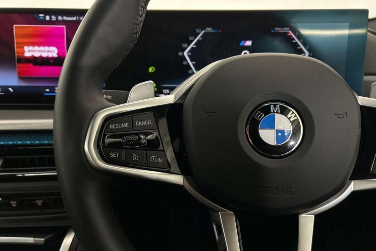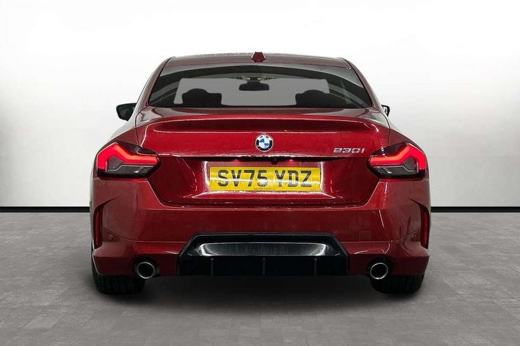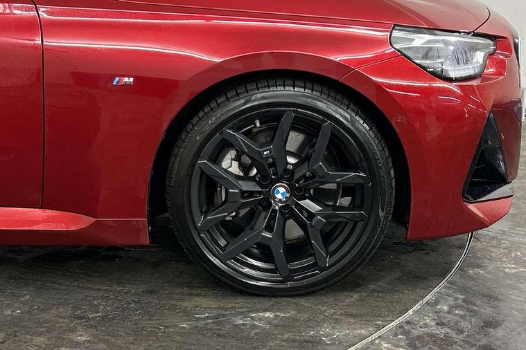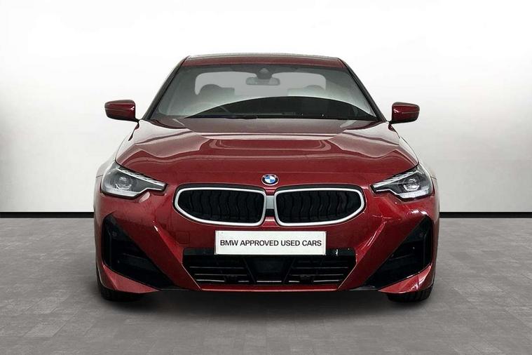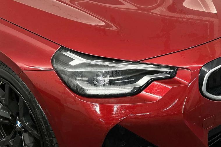 Active guard plus, Attentiveness assist, Bluetooth with USB, BMW ConnectedDrive online services, BMW Intelligent Personal Assistant, BMW Live cockpit plus, BMW Teleservices, Check Control warning system for monitoring of lights and door/luggage compartment open warning, Control Infotainment, Direct selection buttons, Drive off assistant, eSim with 5G connectivity, Front and rear parking sensors, iDrive controller with turn and press function, Intelligent functions, Oil sensor for level and grade, Optimum shift indicator, Parking assistant with active park distance control, reversing assistant, lateral parking aid and rear view camera, Personal Profile, Smartphone integration, Touch operation on control display, Variable sport steering, Widescreen display with 12.3" fully digital instrument cluster and 14.9" control display, WiFi interface for wireless connection of mobile terminal devices, Aluminium lightweight construction, Balancer shaft, BMW TwinPower Turbo four-cylinder petrol engine, Double VANOS, Drive performance control with ECO PRO comfort + sport mode, Dynamic stability control, Electronic differential lock, High precision injection, M sport suspension, Petrol Particulate Filter, Steptronic transmission with gearshift paddles, Twin scroll turbocharger with Valvetronic, 1 x USB Type A with data transfer and 1.5 Ampere charging function in the centre console, 1 x USB Type C with 3 Ampere charging function in the front centre armrest, DAB tuner, Acoustic windscreen wipers for reduced driving noise, Automatic windscreen wipers and automatic headlight, Body colour door handles flush with door surface, Body colour door mirrors, Body colour front and rear bumpers, Daytime running lights, Electric windows - front and rear, with open/close fingertip control and trap release, Exhaust tailpipes x2 - 90mm in left and right, Fading support, Front and rear bumper system with replaceable deformation elements, Front door sill finishers in black plastic with BMW designation, Front windscreen wipers with integrated washer jets, Green tinted heat protection glazing, High gloss black sill, bumper trim sides and diffuser insert, High level third brake light, Indicators integrated int mirror housing, Interior rear-view mirror with automatic anti-dazzle function, LED registration plate light, LED technology rear tail lights, brake lights and turn indicators, M high gloss shadowline, Radiator grille frame and tailpipe trims in pearl chrome, Rear boot, Rear fog lights, Reversing light in rear light cluster, Shark fin antenna, Single part LED rear lights with smoked glass components, Trailer stabilisation logic, Visible VIN plate, 12V power socket in front centre console with blanking plug, 2 cupholders in front centre console, 2 zone automatic air conditioning, Ambient door pocket lighting in the cetre console, Ambient inside door handle light, Area lighting in the door trim panel, Conditioned based service, Door entry lights in the front door trim panel, Dynamic ambient lighting for welcome, goodbye, open doors, phone call, English handbook, Folding rear seat head rests, Front ambient footwell lighting, Front ambient lighting, Front and rear side armrests integrated into door trim, Front armrest, Front door pockets, Front head restraints, Heated front seats, Illuminated glove compartment with separate small compartment, M headliner Anthracite, M sport leather steering wheel, Manually adjustment steering wheel column, Rear seat backrest with manual 40:20:40 split folding, Rear seat centre foldable armrest with integrated cup holder, Single front passenger seat, Storage compartment between rear seats, Storage tray and compartment with cover in centre console, Sun visors with vanity mirrors and insert tab, Through loading system with 40/20/40 split folding 2 rear seat in 2nd row, Velour floor mats, Connected pack professional - 2 Series Coupe, M Sport exterior styling aerodynamics pack - 2 Series Coupe, Storage compartment pack - 2 Series Coupe, 2 tone horn, Anti lock braking system (ABS) with cornering brake control, BMW emergency call, Brake drying, Child seat ISOFIX attachment for the two outer rear seats, Crash sensor activating of airbags, Unlocking doors, hazard warning lights, interior light, safety battery terminal, Deactivation of fuel pump in the event of a crash, Driver and front passenger airbags, Driver and front passenger side airbags, integrated in the door side seat backrest bolsters for all seat variants, Dynamic brake control, Dynamic Traction Control - DTC, Electrically operated hand brake including automatic hold function and automatic release when driving off, Front and rear disc brakes, Front centre airbag between driver and front passenger seats, Front passenger airbag deactivation, Head airbags for all 4 outer seats, PC iBrake (Post crash approach control warning with light braking function), Seat belt security check for driver and front passenger, Seatbelt warning, Side impact protection, Three point seat belts on 4 seats including front belt stopper, pyrotechnic belt tensioners and belt force limiters, Tyre pressure monitoring system, Warning triangle and first aid kit, Alarm system (Thatcham 1) with remote control and electronic engine immobiliser, Central locking switch for all doors, fuel filler cap and luggage compartment, Deadlocking function system to all doors, Drive away locking system on all doors and luggage compartment, Locking wheel bolts, Start/Stop button (illuminated) in centre console with keyless engine start and Auto Start-Stop deactivation button, Two remote control key with integrated key - one button for open and close doors/fuel flap/tailgate and separate button for unlock luggage compartment, Electrically powered 12V compressor, Reduced rolling resistance tyres, Tyre repair kit,