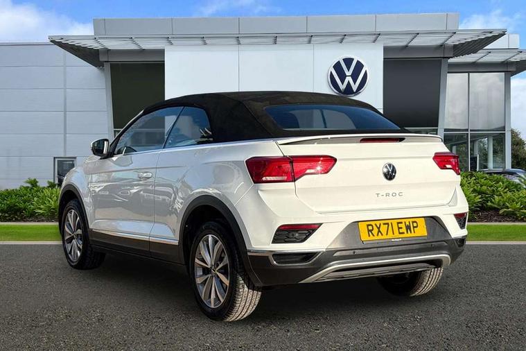 8" colour touch screen, Adaptive cruise control, Bluetooth telephone and audio connection for compatible devices, Brake pad wear indicator, Car information display, Car-Net Security and Service, Driver alert system with fatigue detection, Driver tips and journey analysis, Dynamic road sign display, Emergency call service, Lane assist with warning text instrument cluster, Mobile phone interface, Modified key software - reduce switch off time for key status change to Long no motion, Multifunction computer with visual gear change recommendation for fuel consumption, Navigation system discover media including streaming and internet, Online services, Power assisted speed sensitive steering, Speedo and rev counter, electronic odometer, trip, service interval display, digital clock and fuel gauge, Start/stop system with brake energy recovery, Tailgate/trunk lid release from outside, Warning sound and light for front seatbelts unfastened, Wired and wireless app connect, Bluetooth - Simultaneous pairing of 2 compatible mobile devices, DAB Digital radio, Diversity antenna for FM reception, Music playback - MP3, WMA and AAC files, SMS functionality - read, compose and send SMS messages using touch-screen display, Title and cover art display, USB-C Interface and USB charging socket, WeConnect plus, Auto dimming interior rear view mirror, Automatic coming/leaving home lighting function and daytime running lights, Automatic hazard lights activation under emergency braking, Body colour rear roof spoiler, Body coloured bumpers and radiator grille with chrome trim and front fog lamps with chrome bezel, Body coloured exterior mirror housings and door handles, Chrome effect left and right trapezoid exhaust tailpipe fascia surround, Chrome trim on upper and lower radiator grille, Dusk sensor, Electrically power adjustable, heated, folding, auto dimming, front passenger exterior door mirror lowering function, Front and rear electric windows, Heat insulating glass windscreen, High level 3rd brake light, LED rear number plate lights, LED tail lamp rear comination lamps, Power operated canvas convertible top, Rain sensor, Rear exhaust tailpipe, Rear fog lamp, Volkswagen roundel, Windscreen wiper with intermittent wipe light, 12V socket in centre console storage area, 2 front reading lights, 3 spoke leather wrapped multifunction steering wheel, 50/50 rear seat bench split folding rear seat backrests, Activated charcoal canister for intensified evaporation system, Black door lower parts with chrome trim, Chrome plated surround to light, mirror and window switch, Climate control - 2 zone electronic air conditioning with automatic air recirculation and allergy filter, Entry aid easy entry (Front folding seats), Front + rear carpet mats, Front centre armrest, Front comfort seats with manual height adjustment, Front cupholders x 2, Front seat back storage pockets, Glove Compartment with light, Height/reach adjust steering wheel, Illuminated vanity mirrors in sun visors with air bag label on sun visor and b-pillar, Instrument lighting, white adjustable panel illumination, Interior light delay, Interior light in footwell, Isofix easy fit child seat preparation for 2 outer rear seats, Luggage compartment lighting, Rear head restraints, Standard pedal cluster, Storage compartments in driver and front passenger doors, White ambient lighting, 2 x 3-point rear seatbelts, ABS, Autonomous emergency braking, Driver and front passenger safety-optimised head restraints, Drivers and front passengers airbags with passengers deactivation switch, Drivers seatbelt reminder, Electronic parking brake with auto hold, Electronic stability control (ESC) includes ASR, EDL, EDTC and trailer stabilisation function, Front assist with city emergency braking and pedestrian monitoring, Pedestrian monitoring, Predictive pedestrian protection, Rigid safety cell with front and rear crumple zones, Side airbag/thorax airbag system, for front passengers, Single tone horn, Three point height adjust front seatbelts + pretensioners, Tyre pressure loss indicator, Tyre pressure monitor, Ventilated front and rear disc brakes, Volkswagen roadside assistance, Alarm with interior protection and deactivation via infotainment system, Electronic engine immobiliser, Dashboard unicolour out of hard material including decorative insert 1st line different colours chooseable, Silver silk decorative inserts in dash and front door panels,