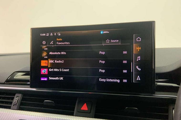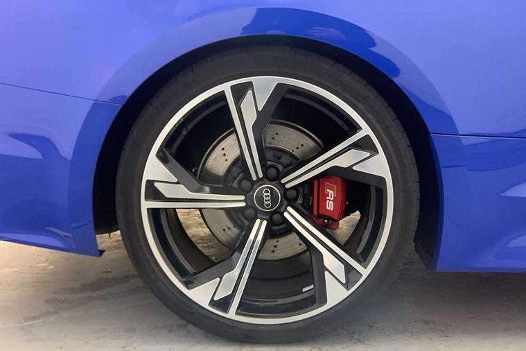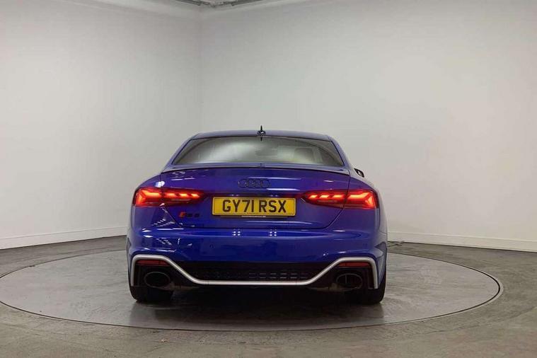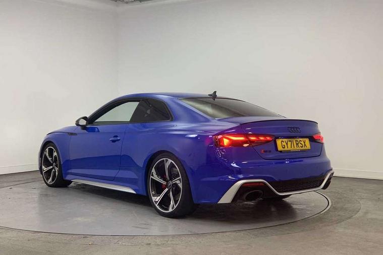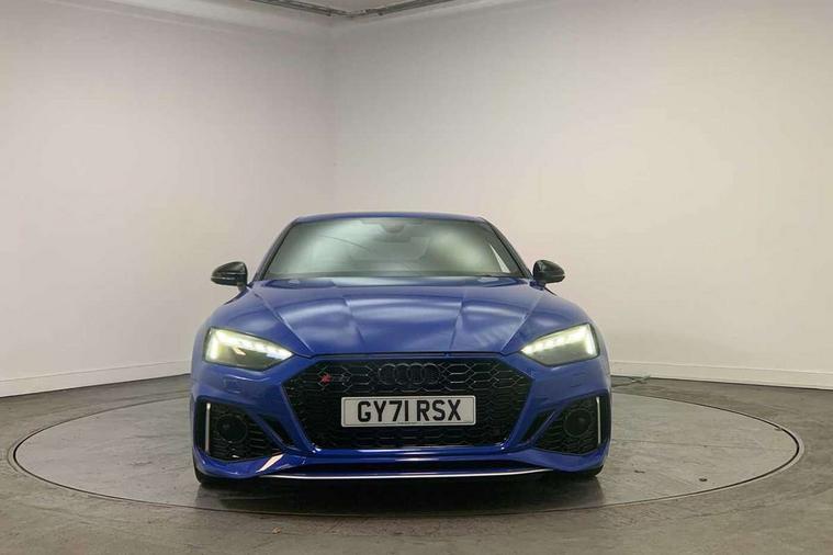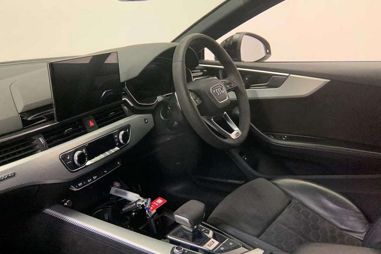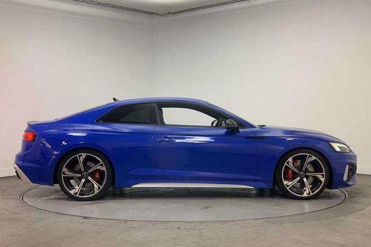 360 degree camera, Advanced key with electric hands free boot opening system, Audi connect safety and service (e-call), Audi parking system plus with front and rear sensors, Audi phone box with wireless charging, Audi side assist, Audi smartphone interface, Audi Virtual Cockpit with RS specific design and 12.3" display, Automatic start-stop system with coasting functionality and efficiency programme, Bluetooth interface, Cruise control system with speed limiter with free wheeling capability, Electromechanical power steering, Email, calendar and text messages displayed via MMI, MMI Navigation plus with MMI touch includes 10.1" high resolution colour MMI display, 3D map, RS Audi drive select, RS drive modes on steering wheel, Service interval indicator, Voice control system, Quattro sports differential, RS sports suspension, Bang + Olufsen 3D sound system, DAB digital radio reception, Audi Beam uses LEDs to project the Audi logo, Audi exclusive paint, Audi matrix LED headlights with LED rear lights + dynamic front and rear indicators, Audi rings and lettering glossy black, Auto dimming rear view mirror, Body colour door handles, Electric front windows, Electric rear windows, Electrically folding, adjustable and heated door mirrors with integrated LED side indicators and kerb view function for passenger side, Exterior mirror housing in high gloss black, Front blade, side flaps, sill extension inserts and horizontal bar in rear diffuser in aluminium matt look, High beam assistant, Larger singleframe grill, LED daytime running lights, Privacy glass with rear acoustic glazing, Rain and light sensors, RS bumper with quattro lettering, RS sport exhaust system, RS5 badges on grille, the front wing panels and rear, RS5 dual branch chrome tailpipes with left and right oval pipes, Windscreen with acoustic glazing, 2 x USB charging port with aux input socket, 40/20/40 split folding 2 seater rear seat bench with rear centre armrest, 40/20/40 split folding 3 seater rear bench seat, Alcantara side centre console, black with contrast stitching in denim blue, Aluminium shift paddles, Black cloth headlining, Deluxe 3 zone electronic climate control, Door armrest in fine nappa leather, black with contrast stitching in denim blue, Electrically adjustable front seats, Fine nappa leather with contrast honey comb stitching + super sports seats with pneumatic massage function, Floor mats in black and denim blue contrast stitching on floor and piping in alcantara coblat blue, Front head restraints, Heated front seats, Illuminated door sill trims with RS5 logo, ISOFIX child seat mounting and top tether, Leather door armrests and knee pad, Rear head restraints, Seat centre panels in alcantara, black with honeycomb pettern in denim blue, Seat side bolsters, head restraints and centre armrest, front in fine Nappa leather, black with contrast stitching in denim blue backrests, Selector lever knob in Alcantara, black and selector lever gaiter in leather, black with contrasting stitching in denim blue, Stainless steel pedals, Steering wheel rim in Alcantara, black and contrasting stitching in denim blue, Tool kit, Extended LED Interior multi-coloured lighting pack - A5/RS5, RS bodystyling pack - RS5, 2 x 3-point rear seat belts, 6 airbags - Driver, front passenger, curtain and side airbags, Electromechanical parking brake, Electronic Stabilisation Control (ESC) including ABS, ASR and EDL, Front passenger airbag deactivation, Height adjustable front seatbelts, High gloss red painted brake callipers with RS logo at front, Hill hold assist, Multi collision brake assist, Pop-up bonnet for pedestrian protection, Pre sense city, RS Model enhanced braking system, Seatbelt monitoring, Tyre pressure warning, Warning triangle and first aid kit, Anti theft alarm system, Anti theft wheel bolts, Immobiliser, Keyless Go, Remote control key with RS emblem, Aluminium race inlays, 20" 5 arm flag design sport alloy wheels with gloss anthracite black and diamond cut finish, Tyre repair kit,