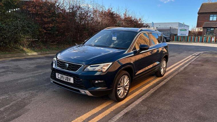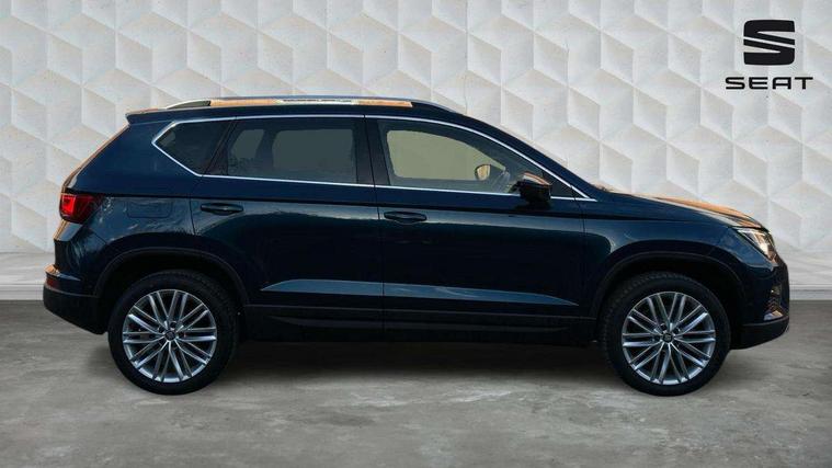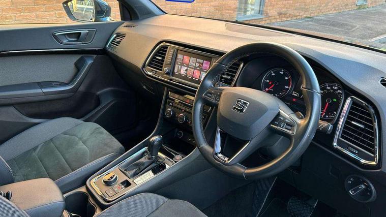 'Lights On' Reminder warning buzzer, 3.5" driver's display, 8.0" colour touchscreen with proximity sensor, Adaptive cruise control, Digital clock, Driver alert system, Front assist city emergency braking and pedestrian protection, Full Link Smartphone Integration with Mirror Link, Apple Car Play, Google Android Auto, Low fuel warning light, Multi function display, Outside temperature gauge, Rear view camera, Remote fuel flap release, RPM counter, Satellite navigation system, SEAT drive profile with driving experience button, SEAT logo boot release, Self parking functionality (includes front and rear parking sensors), Trip computer, Voice control system, Comfort suspension, XDS electronic differential lock, 2 USB ports, 8 speakers, AM/FM radio, DAB digital audio broadcast, High resolution colour driver display, SD card slot, SEAT USB media cable, Steering wheel mounted audio/phone controls, Aluminium front door sills, Armrest with air outlet in rear, Auto dimming rear view mirror, Auto headlights with automatic coming and leaving home function, Black wheel arch extensions, Body colour bumpers, Body colour door handles, Body colour door mirrors, Chrome front grille frame, Chrome roof rails, Chrome side window trim, Dark tinted rear windows, Door mirrors with welcome light silhouette, Electric adjustable/heated/folding door mirrors, Front and rear electric windows, Front grille in glossy black, Full LED headlights, Heated windscreen, Illuminated aluminium front door sill with trim logo, LED daytime running lights, LED front fog lights, Rear fog lights, Rear LED tail lights, Rear wash/wipe, Twin chromed exhaust pipes, Visible dual exhaust pipes, 12v socket in front, 4 Lashing eyes in boot, 60/40 split folding rear seat, Adjustable front armrest with storage compartment, Ambient spot lighting and front footwell illumination, Black roof lining, Driver and passenger seats, height-adjustable, with lumbar adjustment and height-adjustable headrests, Driver and passenger sun visor, covered and illuminated mirror, driver sun visor with card holder, Dual zone climate control, Frameless interior mirror, Front courtesy lights, Front cupholders, Front reading lights, Front seat back storage pockets, Gear shift indicator, Illuminated boot, Illuminated glovebox, Instrument lighting with brightness control, ISOFIX points in outer rear seats with top tether anchorage points, Leather steering wheel and gear knob, Microsuede upholstery with front comfort seats, Multicoloured ambient lighting with LED interior illumination, Rear armrest and easy back seat release mechanism from boot, Rear reading lights, Steering wheel gearshift paddles, Storage box under drivers seat, Convenience pack - Ateca, Navigation system pack - Ateca, 3x3 point rear seatbelts, ABS, Active front headrests, Automatic post collision braking, Driver/Front Passenger airbags, Drivers knee airbag, Electronic parking brake with auto hold, Electronic stability control, ESP+EBA, Front and rear seatbelt reminder, Front passenger airbag deactivation, Front side airbags, Hill hold control, Tiredness recognition system, Traction control, Twin curtain airbags, Tyre pressure monitoring system, 2 folding remote keys with window open/close function, Immobiliser, Keyless entry and go and connectivity hub with wireless charger, Locking wheel bolts, Remote central locking, Volumetric alarm with back up horn, Chrome interior detailing, 18" Performance alloy wheels,