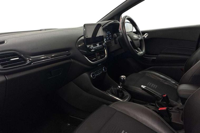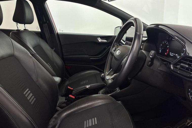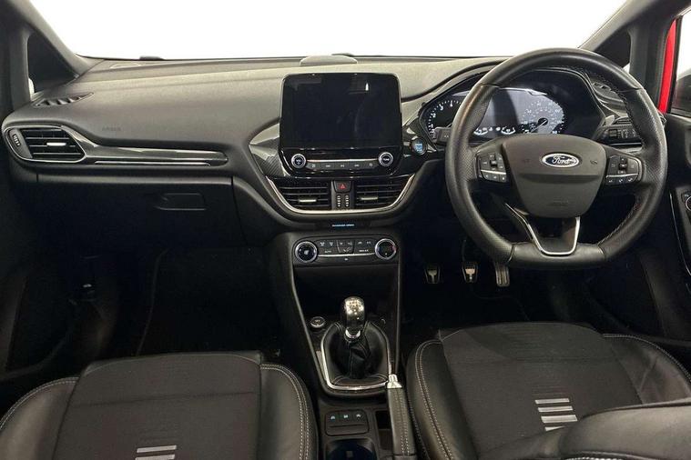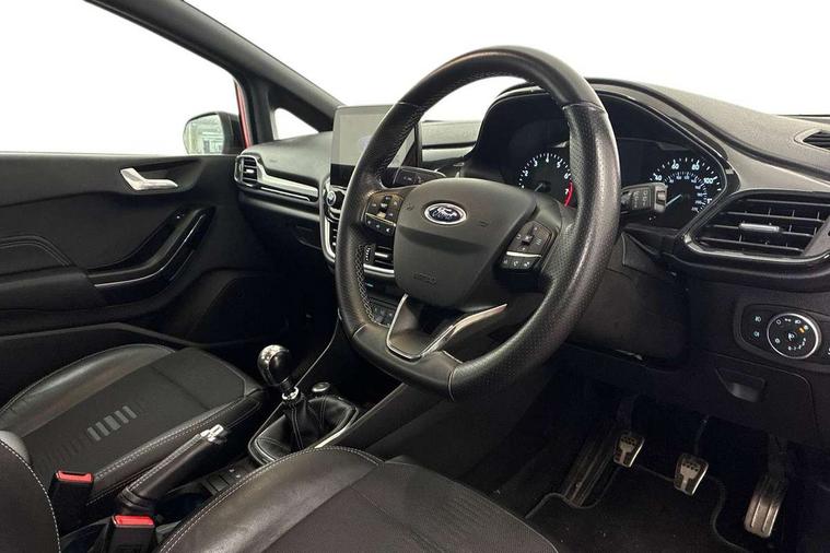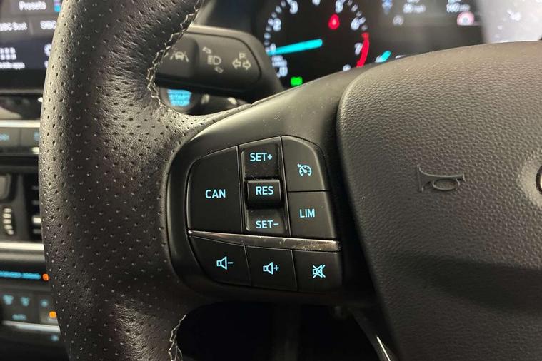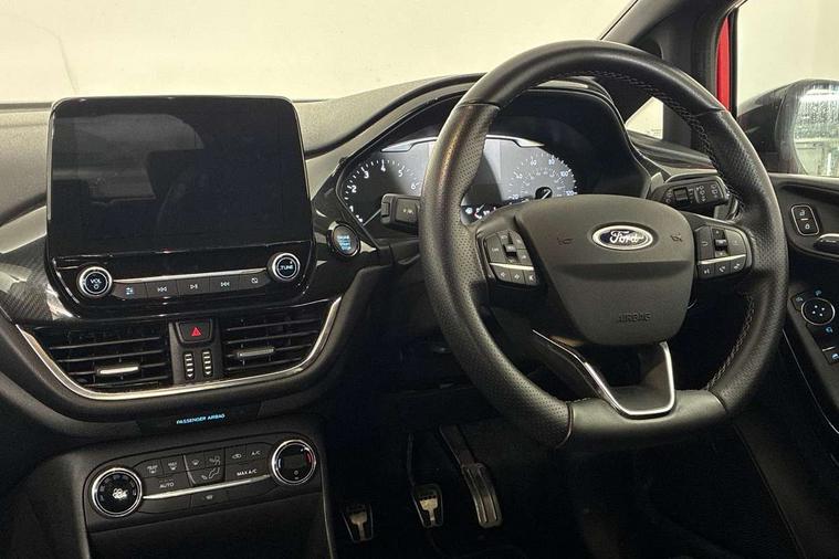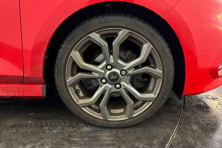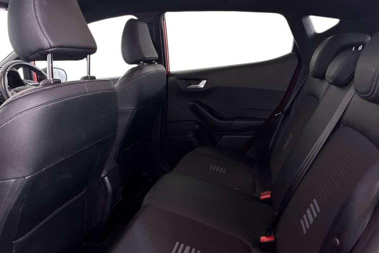 Bluetooth system, Driver alert system, Electric power steering, Ford SYNC 3 nav system, apple car play and android auto with voice control, Lane keep assist, SYNC Emergency Assistance, Traffic sign recognition, Trip computer, Sports suspension, 2 USB ports, Auxiliary input socket, DAB with voice control, Steering wheel mounted controls, USB connection, Auto dimming rear view mirror, Auto high beam, Automatic headlights, Body colour bumpers, Body colour door handles, Body colour electric adjustable heated door mirrors, Body colour large rear spoiler, Body styling kit, Chrome door handles, Cornering front fog lights, Electric folding door mirrors with puddle lamps, Electric front windows/one touch facility, LED daytime running lights, LED rear lights, Quickclear heated windscreen, Rear privacy glass, Rear wiper, Tinted glass, Upper front grille chrome surround, 12V Accessory socket in centre console, 3 spoke flat bottomed leather steering wheel, 60/40 split folding rear seat, Adjustable head restraints, Air conditioning + Electric Auto Temperature Control (EATC), Black headlining, Boot carpet, Centre console with armrest, Chrome inner door handles, Driver/passenger seat height adj/lumbar support, Footwell illumination, Front and rear velour floor mats, Front map reading lights, Front seat and rear pockets, Illuminated cup holders, Illuminated glovebox, Leather gear knob, Leather trimmed handbrake handle, Load area light, Overhead console with sunglasses holder, Pollen filter, Rake/reach adjustable steering wheel, Rear centre head restraint, Sports front seats, Sports pedals, 3 point seatbelts on all rear seats, ABS+EBA, Curtain airbags, Driver and passenger airbags, Drivers knee airbag, ESP + traction control, Front passenger airbag deactivation, Front side airbags, Hill start assist, Seatbelt warning, Tyre pressure monitoring system, Immobiliser, Keyless start with 'Ford Power' starter button, MyKey system, Remote central locking, Thatcham Cat.1 alarm,
