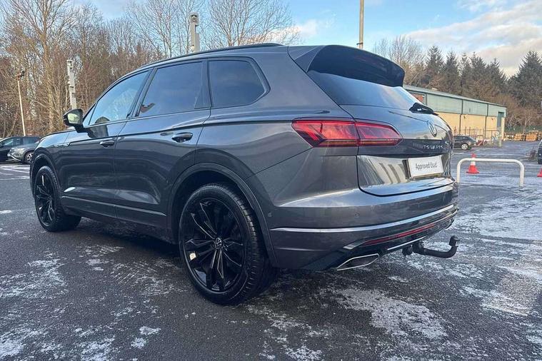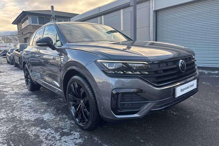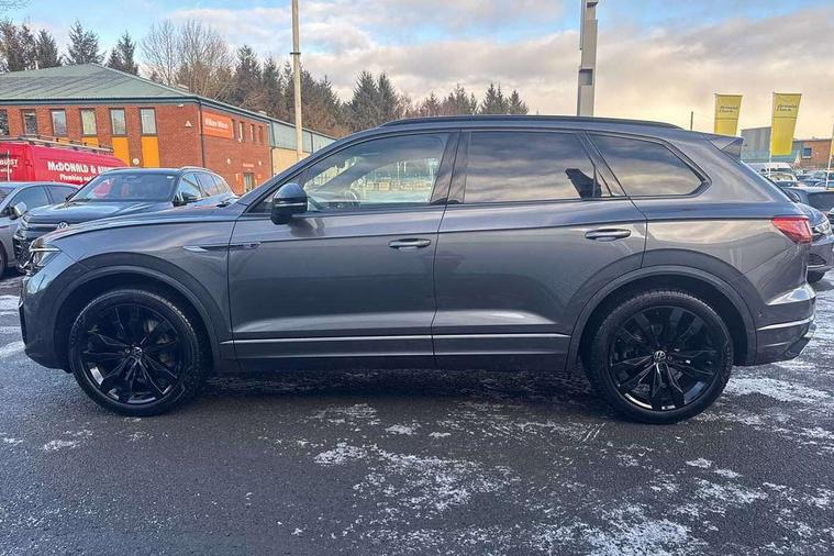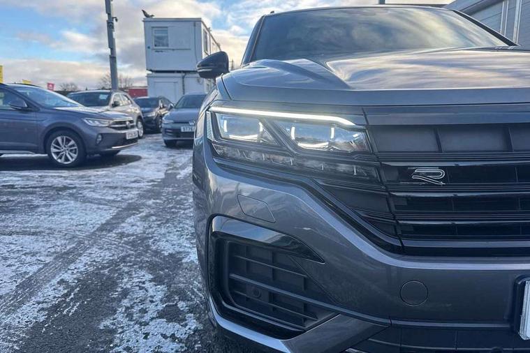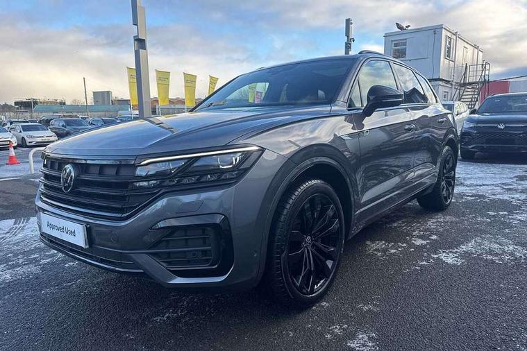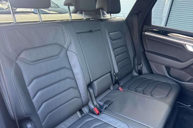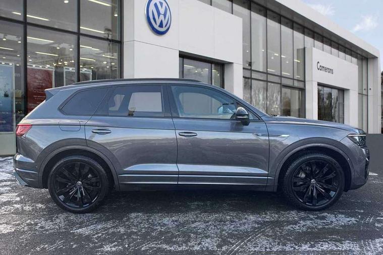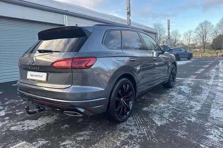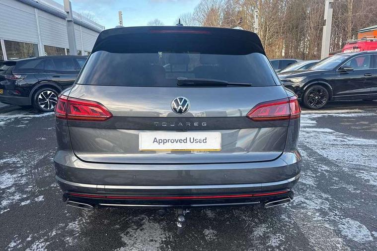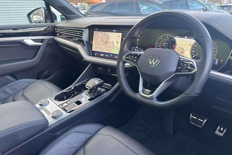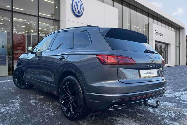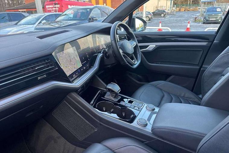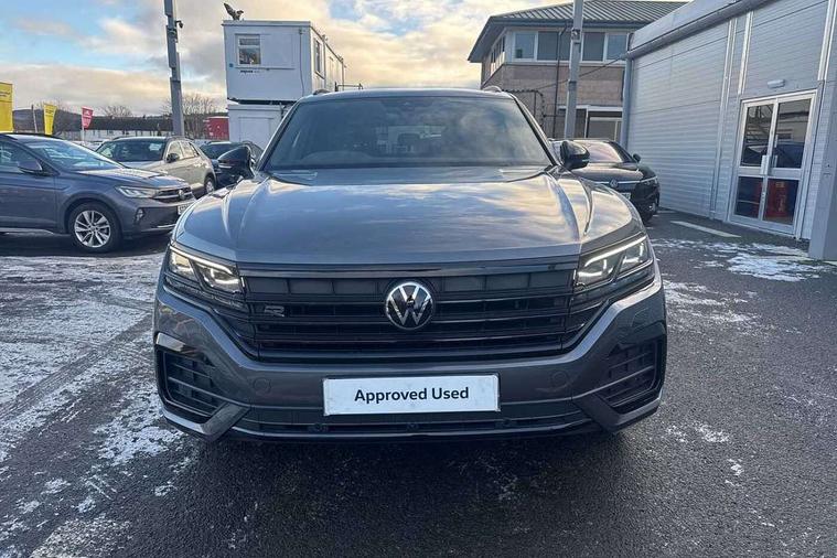 2D/3D map view, ACC - Adaptive cruise control with front assist, forward collision warning, distance monitoring, city emergency brake and speed limiter, Apple car play/Android Auto, Audible and visual fatigue detection system, Bluetooth hands free telephone connection, Car information display, Drive select with Damper control, Driver alert system, Driver profile selection, Dynamic road sign display camera controlled system with visual warning for traffic and road signs, eCall emergency system, Fully electric tailgate + keyless entry and start, Instrument cluster, MirrorLink, Multifunction camera with lane assist, Multifunction computer premium with 7" colour display, One touch indicators with repeat function, Service interval indicator, Speed sensitive power steering, Start/stop system with regenerative braking, Tailgate power latch, Think blue trainer driver tips and journey analysis, Traffic sign recognition, Voice control system, Wireless Smartphone charger, 24 litre AdBlue tank, Torsen limited slip differential, DAB Digital radio, Dynamic navigation based on TMC+, Gesture control for infotainment system, Multi device interface (MDI) with illuminated USB-C connection, Music playback - MP3, WMA and AAC files, SD card slot, Simultaneous pairing of 2 compatible mobile devices, SMS functionality - read, compose and send SMS messages using touch-screen display, Title and cover art display, Volkswagen media control, Adaptive low beam for urban and motorway use, Auto dimming rear view mirror, Automatic coming/leaving home lighting function, Automatic headlights, Black anodised roof rails, Black door mirrors, Black rear diffuser, Black side window surrounds, Black upper and lower grille louvres extending into headlights and radiator grille, Body colour door handles, Body coloured wheel arches, C signature gloss black front air intake, Chromed tailpipe on the left and right integrated in the bumper with trapezoid design, Dusk sensor, Dynamic headlight range control, Electric front tilt/slide panoramic sunroof and fixed rear sunroof, Electrically power adjustable, heated, folding, auto dimming, front passenger exterior door mirror lowering function, Front and rear electric windows, Galvanised body, Gloss black finish B pillar, Gloss black rear diffuser, Headlight washers, Heat insulating darkened glass in side and rear windows, Heated windscreen washer jets, IQ.Light-LED matrix headlight, daytime running light with dynamic cornering light and indicator, LED rear fog light, LED rear number plate lights, Plastic scuff plates in door apertures, Poor weather light, Puddle lights, Rain sensor, Rear side wing doors, Rear wiper, 12V socket in front and rear centre console and boot, 2 Coat hooks on B pillar, 3 rear head restraints, 3 spoke sport heated leather multi-function sports steering wheel with gear shift paddles - generation 2, 4 way adjustable front head restraints, 4 way electric lumbar support for driver and front passenger, 4 zone climate control, 40:20:40 split folding slide/recline rear seat, B pillar vents, Black lower edge of door extending sills, Branded points of interest, Double sun visor for drivier and passenger with LED illuminated vanity mirrors, Electric luggage compartment cover, Folding rear centre armrest with 2 cupholders, Front + rear carpet mats, Front centre armrest with storage box, Gear shift indicator, Height/reach adjust steering wheel, Illuminated air conditioned glovebox, Isofix preparation for 2 rear child seats, Jack and tool kit, Leather trimmed gear knob with gloss black inlay/aluminum trim, Leatherette door trim, LED luggage compartment lighting, Load through provision, Luggage compartment with load lashing rings, Plastic loading edge protection, Rear seat remote release levers, Soul black headlining, Stainless steel pedals, Innovision cockpit pack - Touareg, 3 point front seatbelts with pre-tensioners, ABS, Active bonnet, Automatic post collision braking system, Curtain airbags, Driver/Front Passenger airbags, EBD + Brake Assist, EDL, Electronic parking brake with auto hold, ESC with ASR, Front seat side impact airbags, Hill descent control, Hill start assist, Passenger airbag deactivate switch, Seatbelt warning lamp and buzzer, Three 3 point rear seatbelts, Two tone horn, Volkswagen roadside assistance, Warning triangle and first aid kit, Alarm with interior monitoring in cab, backup horn and towing protection, Child security locks for front and rear doors, Electronic engine immobiliser, Remote central locking, Black decorative trims on the side windows, High gloss black centre console,