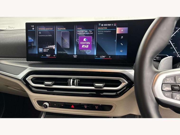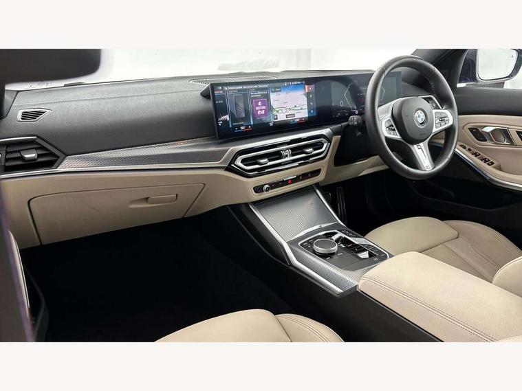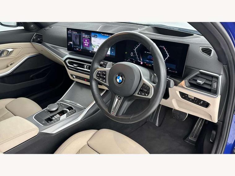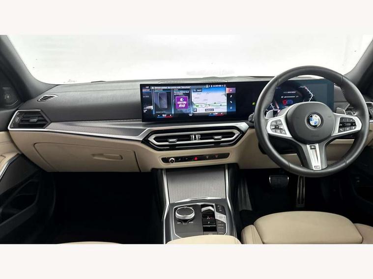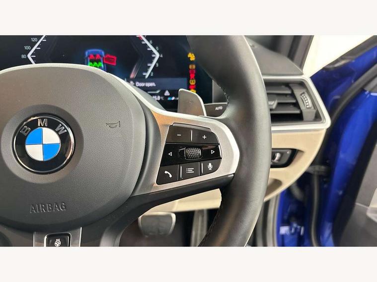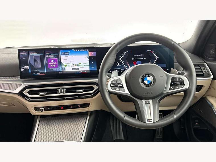 Active guard plus, Attentiveness assist, Automatic Start/stop button, BMW iDrive, BMW Teleservices, Condition based service, ConnectedDrive Services, Driving experience switch, Oil sensor for level and grade, PAS, Preparation for driver assistance, Shifting point display, Variable sport steering, 48V Mild hybrid technology, Double joint spring strut front axle, Fuel tank breather system, M Sport differential, Sport automatic transmission with steering-wheel mounted gearshift paddles and launch control, DAB tuner, 3rd brake light, Auto dimming rear view mirror, Auto dimming with folding wing mirrors, Automated High beam assist, Automatic headlight beam throw control with load dependent regulating reaction, dynamic compensation of braking dive and acceleration squat, BMW emblem, engine compartment lid and tailgate, BMW individual lights shadow line, BMW M Individual high gloss shadow line with extended contents, Body colour roof fin, Door sill strips, Electric windows - front and rear, with open/close fingertip control, anti-trap facility and comfort closing, Follow me home headlight function, Front and rear bumper system with replaceable deformation elements, Front apron plastic in body colour, Fuel filler flap - right rear in body colour, Heated washer jets, High gloss shadow line exterior trim, Illuminated bow type door handles in body colour drivers side with door lock, Interior rear view electrochromatic mirror with automatic anti dazzle function, LED rear lights, Licence plate panel integrated into front bumper and tailgate, M Sport spoiler, Matt black B-pillar finsher, Matt black window recess cover, Model designation on right side of tailgate, One piece front bumper cover including towing eye cover in body colour, Rain sensor with automatic headlight activation, Rear boot, Rear side wing doors, Reversing lights, Side frame decorative moulding black matt, Sun protection glass, Visible exhaust tailpipe finisher, Welcome lights in interior and door handle area, 12V power socket in front storage compartment, 2 front cupholder in centre console with clamping elements and matt black inlay, 3 seat bench in 2nd row, 3 zone automatic air conditioning, 40:20:40 split folding rear seat with loading system, Ambient inside door handle light, Ambient light design projected onto the left and right entering and exiting area, Ambient lighting front and rear with 9 selectable colours, Ambient storage compartment lighting in the centre console, Anthracite headlining, Armrest integrated in front and rear door trim + front centre console armrest, BMW ID, Contour lighting in instrument panel and door trim panel, Cruise control operation in steering wheel, Driving experience mode switch, Electric memory seats, Extended storage, Folding rear centre armrest with 2 cupholders, Front and rear ambient footwell lighting, Front and rear door exit lighting (left / right), Front and rear headrests, Front and rear reading lights, Front and rear velour floor mats, Heated front seats, Height adjustable mechanically and infinitely variable steering column, Illuminated armrest storage compartment, Illuminated glove compartment, Illuminated luggage compartment, Lashing eyelets in luggage compartment, M Sport multifunction leather steering wheel, Make-up mirror lights, Single front passenger seat, Standard seat for driver and passenger with manual adjustment, Sunvisors with illuminated vanity mirrors and ticket pocket, Toolkit located in luggage compartment, Connected pack professional - 3 Series Saloon/Touring, Interior and exterior mirror pack - 3 Series Touring/Saloon, M Aerodynamics package - 3 Series Saloon/Touring, M sport exterior styling pack - 3 Series Saloon/Touring, Storage compartment pack - 3 Series Saloon/Touring, 3x3 point rear seatbelts, BMW emergency call, Child locks on rear doors, Crash sensor activating of airbags, Unlocking doors, hazard warning lights, interior light, safety battery terminal, Driver and front passenger with seat occupancy detection for driver's and passenger side, Driver and passenger side airbags, body protection at side and airbags deploy from seat backrests, Dynamic brake control, Dynamic stability control + (DSC+) - Anti-lock Braking System (ABS) with brake assist and cornering brake control + Automatic Stability Control (ASC), Dynamic Traction Control - DTC, Electric parking brake including automatic hold function and automatic release of the parking brake when driving off, Electronic differential lock control (EDLC), Front airbag deactivation, Head airbags in 1st and 2nd row, head protection at side, curtain airbags open from headliner above 1st and 2nd row, M sport seatbelt, Plastic fuel tank, Side impact protection, Tyre pressure monitoring with three level warning strategy, Ventilated front and rear disc brakes, Warning triangle and first aid kit, Alarm system, Centre lock switch, Closing system with central locking, Electronic vehicle immobiliser, Locking wheel bolts, Tyre repair kit,