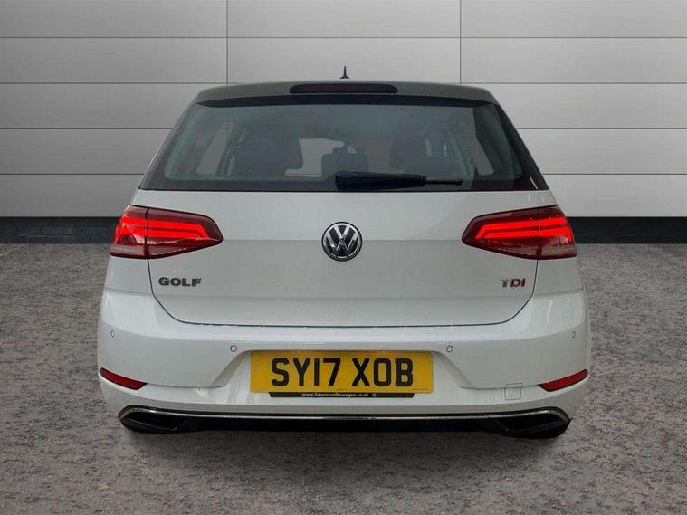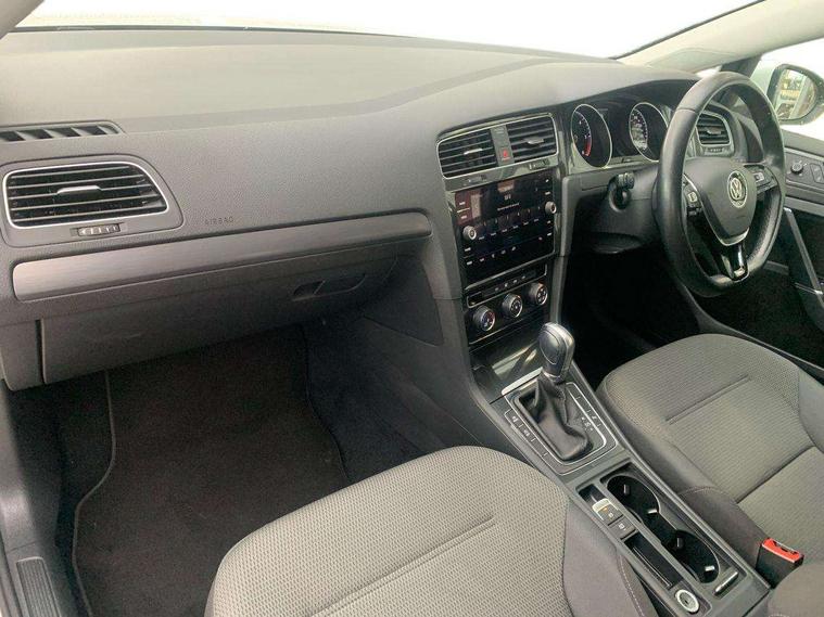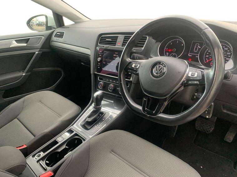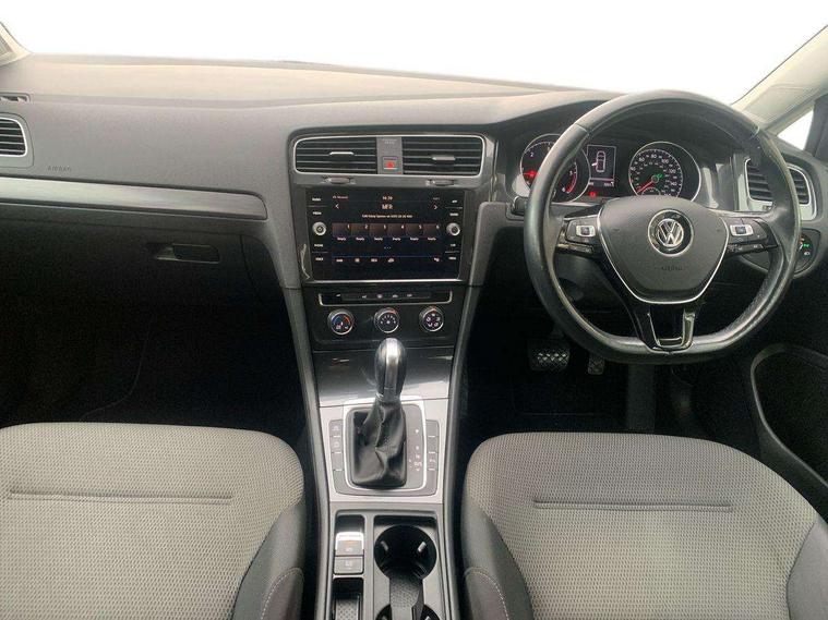 'Lights On' Reminder warning buzzer, 8" touch screen, Adaptive Cruise Control with pedestrian detection and speed limiter, App-Connect, Bluetooth hands free telephone connection, Brake pad wear indicator warning light, Driver alert system, Driver profile selection, Exterior temperature gauge, Front assistant collision mitigation, Instrument cluster in white, Multifunction computer, PAS - speed related, Rev counter, Trip and service interval display, Ultrasonic front and rear optical and audible parking sensors, Warning buzzer and light for front seatbelts unfastened, Diesel particulate filter, XDS electronic differential lock, CD/MP3/WMA, USB and SD card reader, aux-in, Composition media system, DAB Digital radio, Auto dimming rear view mirror, Automatic coming/leaving home lighting function, Automatic headlights, Black front air intake and radiator grille with chrome insert, Black rear diffuser, Body colour bumpers, Body colour door handles, Body colour door mirrors, Electric front windows, Electric rear windows, Electrically adjustable and heated door mirrors, Heated rear windscreen, LED daytime running lights, LED rear lights, Rain sensor, Rear roof spoiler, Rear windscreen washer and wiper with interval delay, 12V socket in luggage compartment, 3 rear headrests, 3 spoke steering wheel, 60/40 split folding rear seat, Bag hook in luggage compartment, Boot lashing points, Cooled glovebox, Courtesy light delay, Cover for storage compartment in centre, Dust/pollen filter, Front and rear reading lights, Front centre armrest with storage box and rear air vents, Front passenger drawer stowage, Front passenger seat height adjust, Front seat back storage pockets, Grab handles, Height adjustable driver's seat, Height/reach adjust steering wheel, Illuminated vanity mirrors, Isofix preparation for 2 rear child seats, Load through provision with rear centre armrest and cupholders x2, Luggage compartment cover, Luggage compartment lighting, Multifunction leather steering wheel with leather gear knob/handbrake grip, Overhead storage box, Pearl grey headlining, Storage box in luggage compartment, Storage compartments in doors, Sun visors, Variable boot floor, height adjustable and removable, Mirror pack - Golf, 3 point height adj front seatbelts + pretensioners, 3 rear 3 point seatbelts, ABS, Automatic post collision braking, Child locks on rear doors, Driver/Front Passenger airbags, Driver/Passenger whiplash optimised head restraints, Drivers knee airbag, Electronic parking brake with auto hold, ESP with EDL + ASR, Front and rear curtain airbags, Front passenger airbag deactivation, Front side airbags, Pre crash system, Tyre pressure monitor, Alarm with interior protection, Electronic engine immobiliser, Remote central locking with 2 remote folding keys, Brushed dark metal decorative inserts in dash and front door panels, Chrome-plated light switch surround, Polar night black centre console, Steel space saver spare wheel,