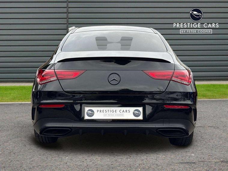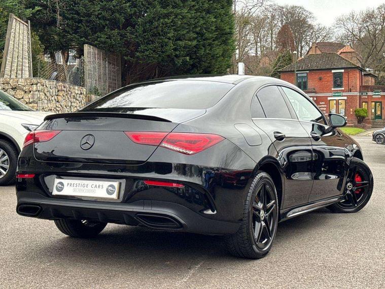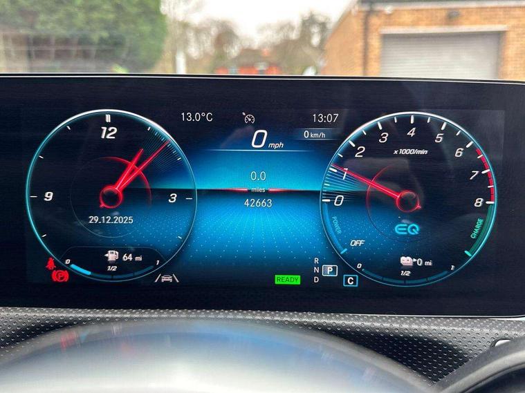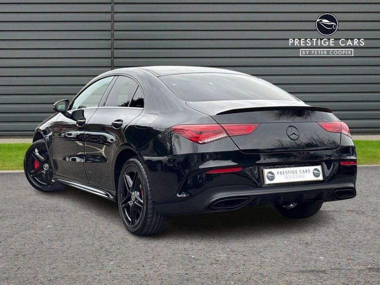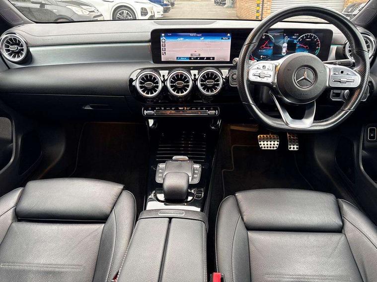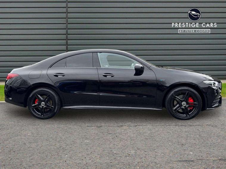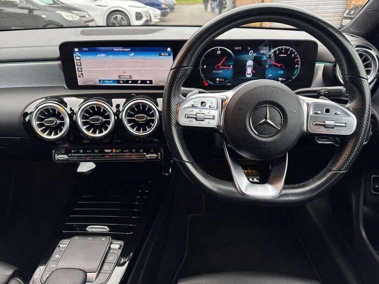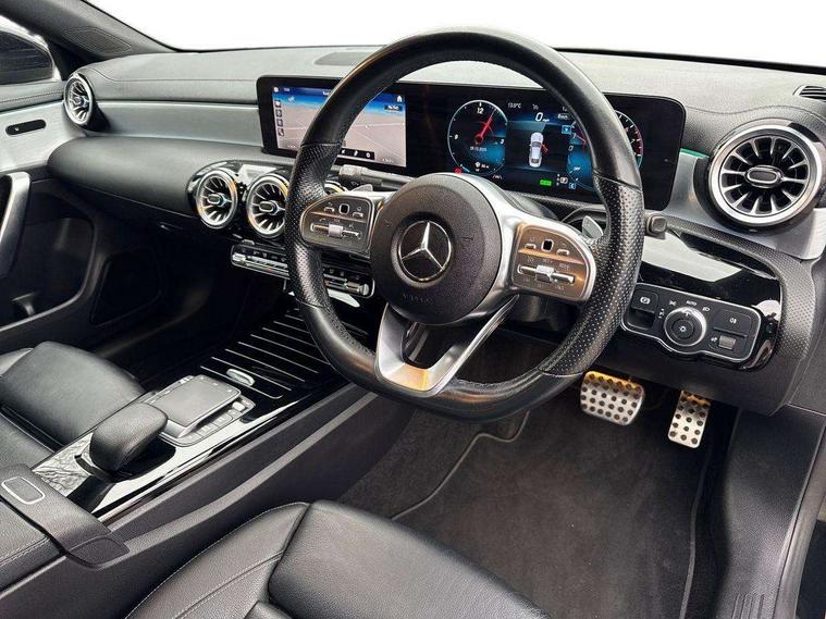 10.25 inch Instrument display with digital cockpit, 10.25 inch touchscreen central media display, Acoustic ambient protection, Active lane keeping assist, Attention assist - Monitors steering behaviour and long journey fatigue, Bluetooth connection, Car wash mode, Cruise control with limiter, Direct steer system with speed sensitive power steering, DYNAMIC SELECT with a choice of driving modes (ECO, Comfort, Sport and Individual), ECO start/stop function, Fluid level warning indicator for fuel, oil, coolant and washer fluid, Hard-disk navigation, Hey Mercedes Voice activation, Lamp failure indicator, Mercedes me connect including emergency call system, accident recovery, breakdown and maintenance management, Mercedes me remote services, Outside temperature gauge, Owners manual and service booklet in English, Pre-installation for remote and navigation services, Pre-installation of private car share, Preinstallation for Mercedes Benz link, Radio aerial integrated into front and rear windshields, Remote and charging services plus, Service indicator (ASSYST), Smartphone integration with Apple CarPlay and Android auto, Speed limit assist, Trip computer in multifunction display with current consumption indicator, 4m charging cable for wall box/charging stations, 7.4 kW onboard charger, Comfort suspension, Lowered comfort suspension, Rear axle multi-link, DAB digital radio tuner, MBUX multimedia system with DAB digital radio and touchpad including satellite navigation, Mercedes Benz sound system (100 W) with 6 speakers, USB (type C) ports (2) in stowage compartment and 1 in front of centre console, Adaptive brake lights, AMG body styling with AMG front apron and rear apron and visible exhaust tailpipe in chrome trim elements, AMG bodystyling side skirts, Body colour bumpers, Body colour door handles, Chrome beltline strips, Chrome weather strip, Diamond radiator grille pins in chrome with silver painted louvres and chrome insert, Electric windows, Electrically adjustable and heated door mirrors with integrated LED indicators, Exhaust system with 2 Visible tailpipe trim elements and rear apron with trim in chrome, Headlamp assist automatic headlamp activation, Heated glass rear windscreen + timer control, High level LED third brake light, Interior mirror with black reading lamps and frameless, LED high performance headlamps with integrated LED daytime running lights, LED tail lamp, Privacy glass with dark tinting on rear side windows and rear window, Rain sensing windscreen wipers with two sensitivity settings, Rear fog lamp, Window line trim strip in chrome, 3 Pin charging cable, 3 spoke flattened bottom nappa leather multifunction steering wheel with perforated leather in grip area, 40:20:40 split folding rear seat backrests, Air conditioning - Two zone thermotronic luxury automatic climate control with display, Air vents with surround in silver chrome, Automatic child seat recognition sensor, Black roof lining, Brushed stainless steel sports pedals with rubber studs, Charging socket, Floor mats with stitched AMG lettering, Front centre armrest with stowage, Galvanished gear shift paddles on steering wheel, Heated front seats, Illuminated front door sills with changeable cover, Illuminated glove compartment stowage, Interior lighting - 64 colour Ambient lighting, Luggage net on driver/front passenger seat backrest, Manually adjustable front seats, Manually height and reach adjustable steering column, Pre-entry climate control, Rear armrest with two integral cup holders for drinks, Rear head restraints, Sport seats with fixed head restraints, Stowage compartment in centre console with retractable cover, Sunvisors with illuminated vanity mirrors, Touchpad on center console, Twin front cupholders, Two outer rear seat isofix and top tether child seat fixing points, Light and sight pack - CLA, Mirror pack - CLA, Parking package - CLA, Seat comfort pack - CLA, Active bonnet pedestrain safety measure which detects an impact and raises bonnet by 65mm, Active brake assist includes forward collision warning system with autonomous braking, Adaptive brake assist with hold function and hill start assist, Anti-lock braking system (ABS), Black seat belts, Bonnet with power domes, Brake pad wear warning indicator, Childproof locks manually operated for rear doors and electrically operated for rear power windows, Crash responsive emergency lighting, Driver and front passenger head and sidebags, Driver and front passenger windowbags, Drivers knee airbag, Dual stage driver and front passenger airbags, Electric parking brake, Electronic stability programme with acceleration skid control, ESP curve dynamic assist, Front and rear seatbelt reminder, Front passenger seat occupancy sensor, Perforated front brake discs, Radar-based recuperation, Three point rear seat belts, Tyre pressure monitoring system, Warning triangle and first aid kit, Remote central locking and crash sensor with emergency opening function, Urban guard vehicle protection system with immobiliser and interior protection, Light aluminium with longitudinal grain interior trim, 18" 5 twin spoke design alloy wheels painted in titanium grey with high sheen finish, Summer tyres, Tirefit tyre sealant kit,