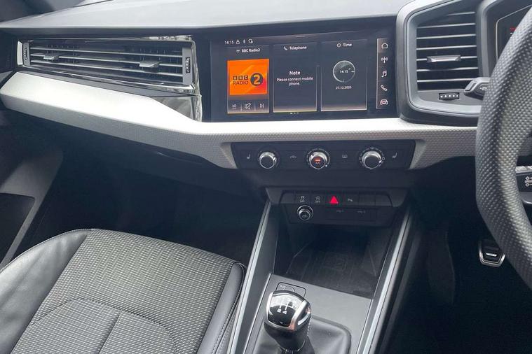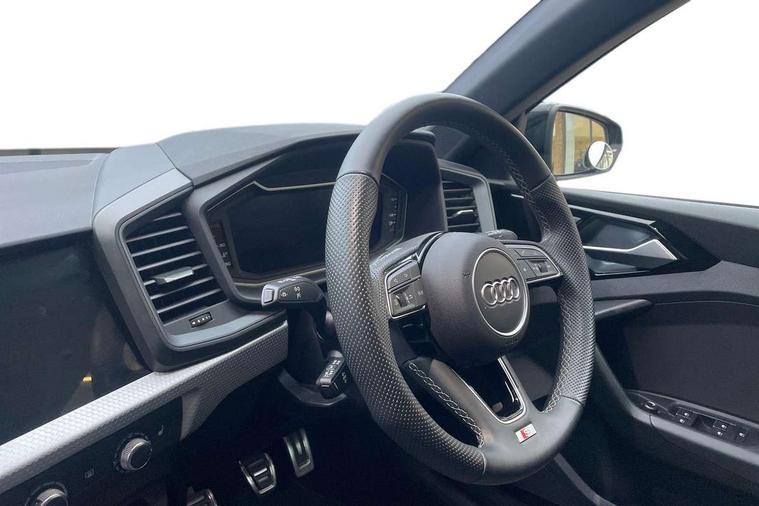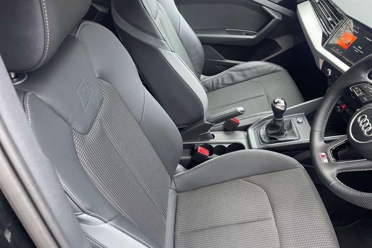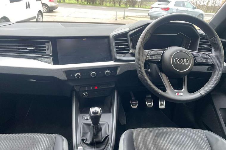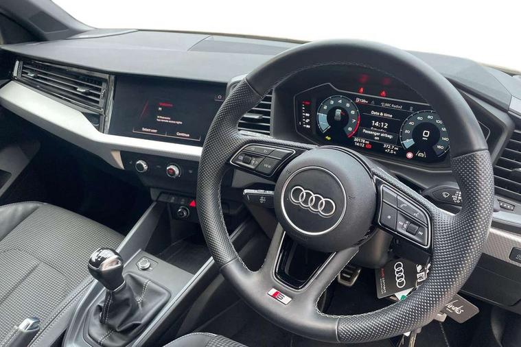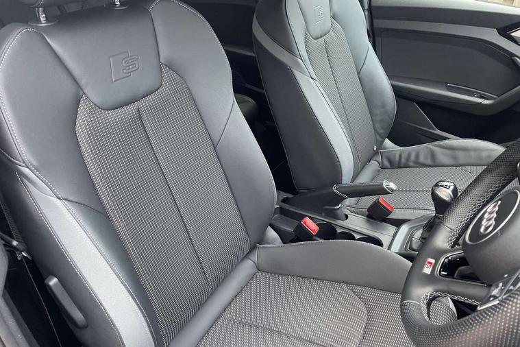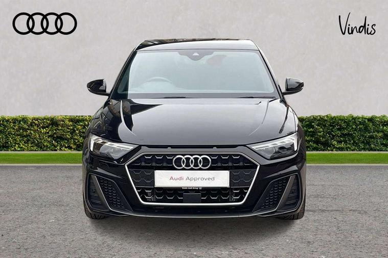 10.25" Digital instrument cluster display classis style instrument dials + speed, odometer, time, outside temperature, telephone menu + fuel level warning, Advanced driver attention and drowsiness monitor, Audi connect emergency call and service, Audi remote connect and control, Audi smartphone interface, Bluetooth interface, Camera based traffic sign recognition, Cruise control, Driver's information system, Electromechanical power steering, Lane departure warning system, Rear parking sensor, Service interval indicator, Speed limiter, Start stop system with recuperation, Voice control system, Washer fluid level indicator, Sports suspension, 2 x USB type C connection points, 6 loudspeakers, DAB Digital radio, MMI radio plus with 10.1" colour MMI display screen and MMI touch, Auto dimming rear view mirror, Body coloured door mirrors, Door sill trims with aluminium inlays and S line logo in front, Electric front and rear windows, Electrically adjustable, heated, folding door mirrors with integrated LED side indicator, Front side air inlets in grained matt black and C frame in anthracite black, Headlight cleaning system, Heat insulating glass windscreen and side windows, Heated rear windscreen, High level LED brake light, LED daytime running lights, LED headlights with range control LED rear lights + dynamic rear indicators, Privacy glass, Radiator grille and rear diffuser in matt anthracite black, Radiator protective grille frame in matt aluminium silver, Rain and light sensors, Rear fog lights, Rear side wing doors, Rear wiper, S line badges on front wings, Side front spoiler lips in grained matt black, 12V socket in centre console with two cup holders, 3 rear seats with headrests, 3 seat bench in 2nd row, 3 spoke leather multi-function plus steering wheel features S badging and grips in perforated leather with contrast stitching, 40:60 Split folding rear seat or fully collapsed, Black cloth headlining, Front and rear velour black floor mats with contrast stitching in fine silver, Front head restraints, Front passenger seat, Height and reach adjustable steering wheel, Interior lighting includes roof module, front and rear reading lights and right luggage compartment lighting, ISOFIX child seat mounting for front passenger and outer rear seats including top tether attachment point of outer rear seats, Leather gear knob with aluminium trim, Leather handbrake grip, Manual air conditioning, Manual height adjustable for driver and front passenger seat, Manually adjustable lumbar support in front seats, Stainless steel pedals, Ambient lighting package - A1, Luggage compartment pack - A1, S line exterior styling pack - A1 Sportback, 3x3 point rear seatbelts, Audi pre-sense front with pedestrain and cyclist recognition, Brake assist function, Driver and front passenger airbag with front side and head airbags, Electronic Stability Control including ABS, EBD, ASR and EDL, Front passenger airbag deactivation switch, Hill hold assist, Manual rear child locks, Seatbelt height adjustment for front seats, Seatbelt monitoring, Tyre pressure loss indicator, Warning triangle and first aid kit, Anti theft alarm, Anti theft wheel bolts, Immobiliser, Remote control key with safelock, Aluminium trim for control switches, air vents and digital instrument cluster, Black dashboard, Silver grey inlays polygon structure in diamond paint finish, Structured grey accent surfaces insert of air vents, interior door handle recesses and centre console in quartz paint finish,