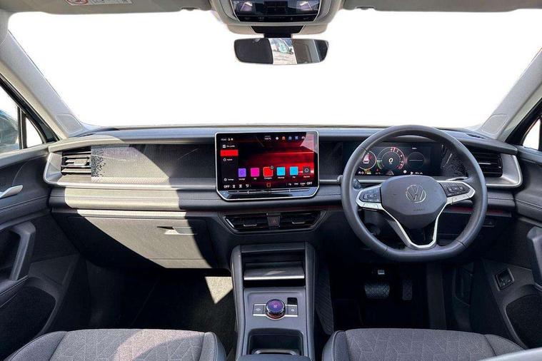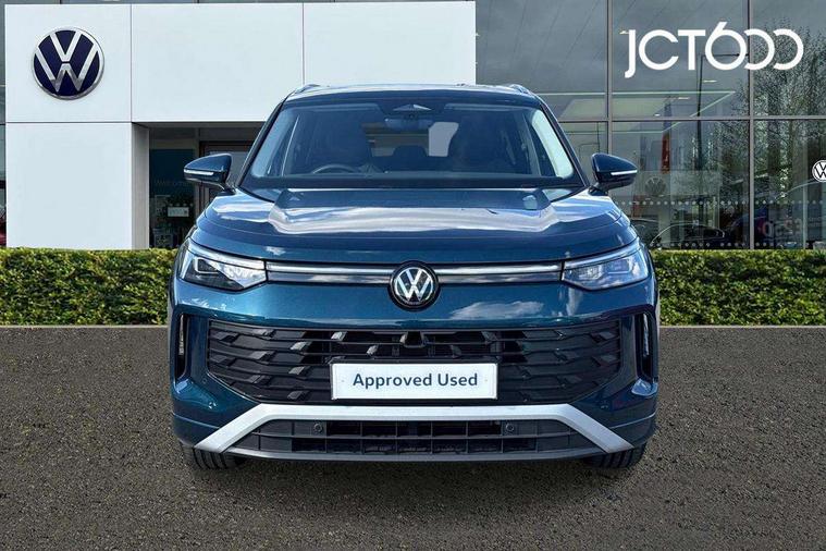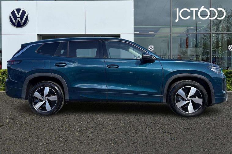 Adaptive cruise control (ACC), Digital Cockpit Pro - 10.25" high resolution dash display screen with customisable menus and information, Driver alert system, Driver attention monitoring system, Dynamic road sign display, E-Sim card for online connectivity, eCall emergency call system, Lane change system, Side assist, Rear traffic alert and Exit warning system, Multifunction front facing camera, Oncoming vehicle braking when turning including swerve support, Power assisted steering with speed sensitive, Start/stop system with regenerative braking, Voice activation spoken voice commands for telephone and navigation system, Warning signal and warning light for front and rear seatbelts not fastened, Wireless App-Connect, Adaptive chassis control DCC pro includes driving mode selection, Charging cable Mode 2 Type 2 / G (10A), Charging cable Mode 3 Type 2 / 3 (16A), Front shock absorption G08, Front wheel drive, Rear shock absorption, Digital radio reception (DAB), Diversity antenna for FM reception, Auto dimming interior rear view mirror, Automatic headlight control system, Body colour door handles, Body-coloured exterior mirror housings, Chrome moldings on the side windows, Comfort bumpers, Coming/leaving home lighting function, Exterior mirrors convex on the left and aspherical on the right, Heat insulating glass in side and rear windows, Laminated safety glass windshield, heat insulating, LED 3rd brake light, Puddle lights, Rain sensor windscreen wipers, Rear fog light on one side, reversing light on both sides, Rear side wing doors, Rear wiper, Reverse activated passenger's door mirror, Surround lighting with welcome light, Tilting and sliding panoramic sunroof with rear panoramic sunroof, 12V outlet in center console rear and in luggage compartment, 3 rear headrests, 3 rear seat bench in 2nd row, split folding, longitudinally movable and folding with load-through hatch, Carpet mats, front and rear, Centre console with illuminated storage compartment with sliding cover and two drinks holders, Door and side trim panel with leatherette insert, Flat luggage compartment floor, Front centre armrest, ISOFIX anchors for child seats on outer rear seats and front passenger seat compatible with i-Size, Mechanical rear seat release, Power adjustable lumbar support in front, Single front passenger seat, Sun visors with illuminated vanity mirrors, Comfort package with park assist pro - Tayron, 3 Point seat belts in front with pretensioners, 3 point seatbelts in outer rear with ECE label, Autonomous emergency braking front assist with pedestrian and cyclist monitoring, Driver and front passenger airbag with front passenger airbag deactivation, Electronic parking brake with auto hold, First aid kit with warning triangle and safety vest, Front and rear curtain airbags, Front and rear side airbags, Front centre airbag, Front disc brakes, Hill start assist, Rear disc brakes, Two tone horn, Decorative material set, Tool kit for tyre mobility set, Tyre mobility kit including compressor and sealing foam. In lieu of spare wheel,