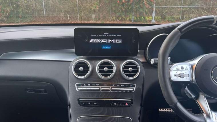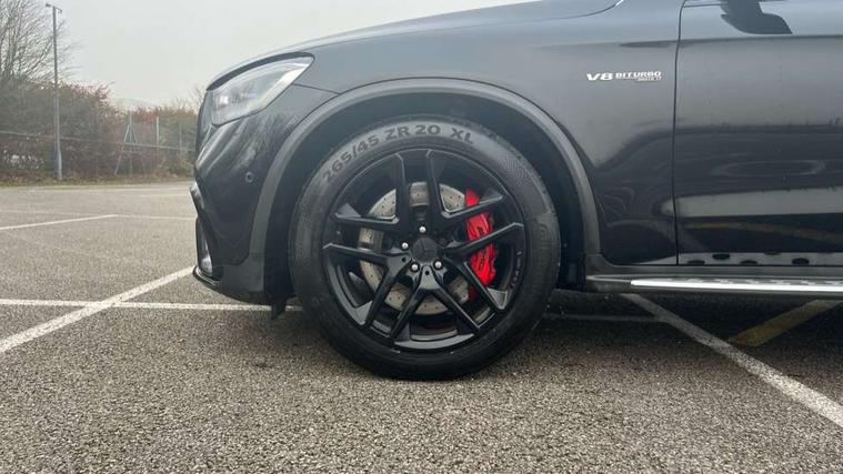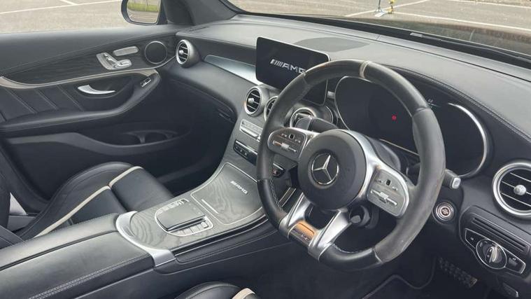 Active parking assist with parktronic system, AMG track pace, Attention assist, Bluetooth interface for hands free telephone, Collision prevention assist plus, DYNAMIC SELECT with a choice of driving modes (ECO, Comfort, Sport, Sport+ and Individual), Easy pack automatic powered tailgate, ECO start/stop function, Hard disk navigation, Hey Mercedes Voice activation, Instrument cluster with12.3-inch digital instrument cluster display. High resolution instrument cluster screen with choice of three display styles, MBUX augmented reality for navigation, MBUX Interior assistant, Mercedes connect me with remote online services, Multi function trip computer, Outside temperature display, rear seatbelt status indicator, Remote boot release, Reversing camera, Service indicator (ASSYST), Smartphone integration with Apple CarPlay and Android auto, Traffic sign assist, Wireless charging, 66 litre fuel tank, Air body control air suspension for front and rear axles with continuously adjustable damping, AMG electronic rear axle limited slip differential lock, AMG performance 4MATIC+, AMG SPEEDSHIFT MCT 9 speed automatic sports transmission steering wheel gearshift paddles and RACE START function, silver aluminium gear shift paddles, Petrol Particulate Filter (PPF), DAB Digital radio, MBUX multimedia system with DAB digital radio and touchpad including satellite navigation, Media display 10.25-inch touchscreen display, Mercedes Benz sound system (225w) includes mid-range sound system, Pre installation for Mercedes Benz Link, USB ports x 2 in centre console, Adaptive brake lights, AMG bodystyling with 2 black louvres in outer air intakes, AMG bodystyling with rear apron and diffuser fins, AMG radiator grille with black vertical louvres and trim strip in high gloss chrome, Badging - V8 BITURBO 4MATIC+ lettering on front wings, Body coloured bumpers, Electric windows one touch open/close, Electrically adjustable and heated door mirrors, Front and rear exterior chrome trim, Headlamp assist automatic headlamp activation, LED tail lamp, Multi beam LED headlamps with 84 indiviually control LED, daytime running lamps, Active Light, cornering light, enhanced fog lamp, adaptive Highbeam Assist, Privacy glass with dark glass from B pillar backwards, Rain sensor windscreen wipers, Range adjustable headlights, Rear wiper, Running boards, Tinted glass all round with single layer safety glass, 2 way rear head restraints, 3-spoke multifunction AMG steering wheel in black nappa leather with flattened bottom section, chrome inserts and perforated leather in grip area, 40:20:40 split folding rear seats, Ambient lighting, AMG floor mats with edging and embroidered AMG lettering, AMG performance seats, Automatic child seat recognition sensor, Dividing net - rear, Double cup holder in centre console, Electrically adjustable height/reach steering wheel, Front armrest with storage box, Front door sills with Mercedes Benz lettering, Front head restraints, Front seats with electric adjust (backrest, height and seat cushion inclination) with 4 way electric lumbar support and manual cushion depth adjust, Heated front seats, Illuminated and lockable glove compartment, Nappa leather upholstery, Rear top tether child seat ISOFIX attachment, Sports pedals with stainless steel surfaces and rubber studs, Steering wheel with touch control buttons, THERMATIC automatic climate control, AMG Driver's package - GLC, Easy-pack load compartment cover, Interior lighting pack - GLC, Mirror pack - GLC, Storage pack - GLC, 3 rear 3 point seatbelts, Active bonnet, Adaptive brake system with HOLD function and brake drying in the wet, ASR, Brake calipers with Mercedes-Benz lettering + perforated brake discs, Child proof door locks, Dual-stage airbags - driver and front passenger, driver knee bag and window bags for driver, front passenger and rear passengers, Electronic parking brake, Electronic stability programme (ESP) with curve dynamic assist and cross wind assist, Front and rear seatbelt reminder, Front passenger seat occupancy sensor, Hill hold function, Seat belts in Crystal grey, Tyre pressure monitoring system, Warning triangle and first aid kit, Alarm system/interior protection/immobiliser, Automatic door locking, KEYLESS-GO starting function, Remote central locking, Tirefit tyre sealant kit,