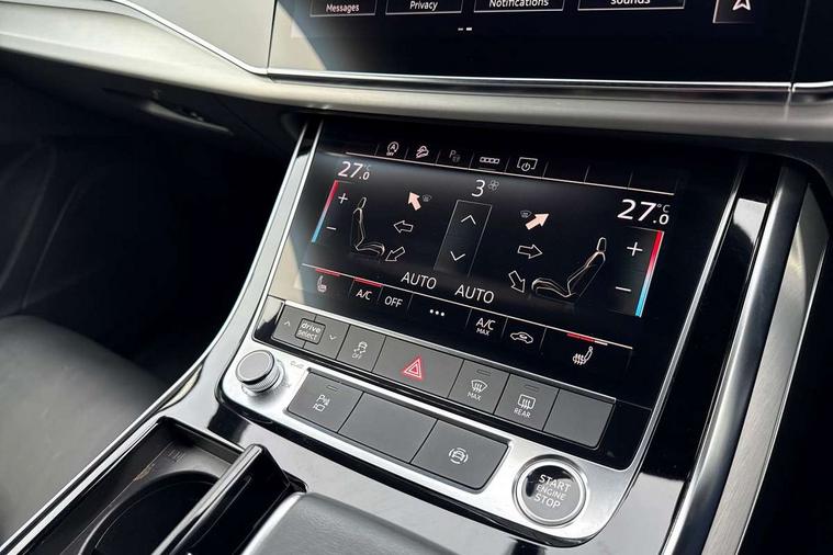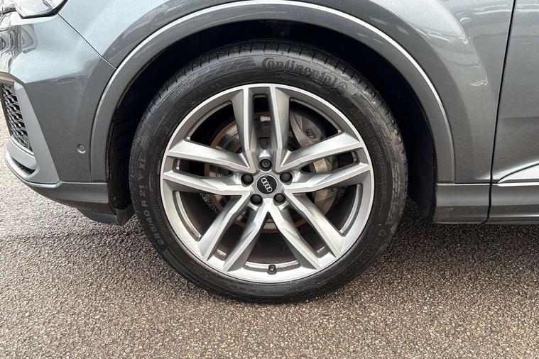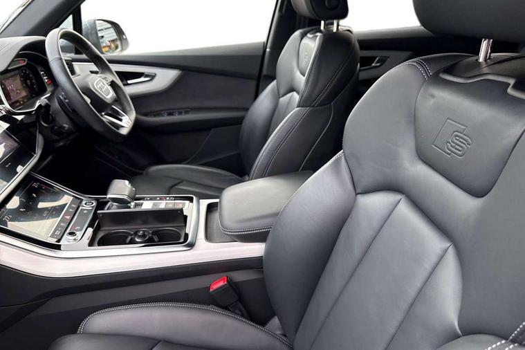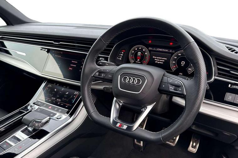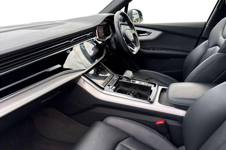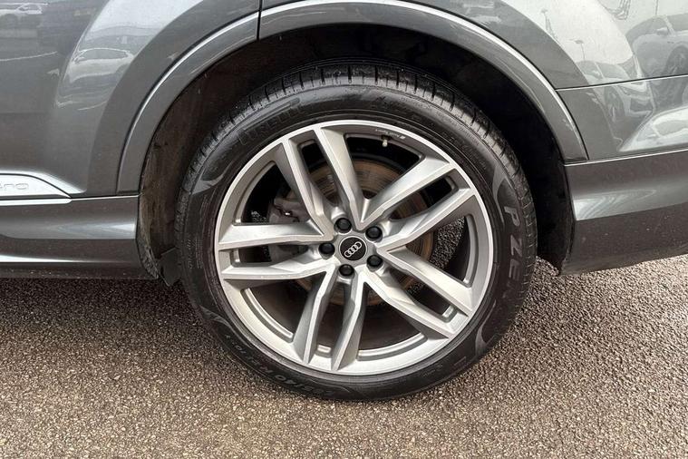 Audi connect safety and service (e-call), Audi connect with Amazon Alexa Integration, Audi drive select (Auto, Comfort, Dynamic, Efficiency, Individual, Off-road and All road), Bluetooth interface, Camera based traffic sign recognition, Electromechanical steering, MMI navigation plus with MMI touch screens includes 10.1" and 8.6" screens with haptic feedback, Natural voice recognition, Parking system plus with 360 degree display (front, rear and side sensors) - acoustic and visual park assist system, Power operated tailgate, Rear view camera, Smartphone interface includes wireless Apple carplay/Android Auto, Start/stop system, 48V Mild hybrid technology, 85 litre fuel tank, Adaptive air suspension, Quattro all wheel drive with self locking centre differential, Audi music interface - front 2 USB-C ports with charger and data functions, Audi sound system with 6 channel amplifier, 180 watt amplifying capacity and 10 loudspeakers including subwoofer, DAB digital radio module, 3rd brake light, Aluminium roof rails, Aluminium window trim, Audi matrix LED headlights with dynamic front and rear indicators, Auto dimming frameless rear view mirror, Body coloured door mirrors, Electrically adj heated/folding + automatically dimming exterior mirrors with memory + automatic kerb side function for passenger side exterior mirror, Heat insulating glass in windshield, Integrated LED indications in door mirrors, LED daytime running lights, LED rear tail lights, Privacy glass - dark tinted rear and rear side windows from B-pillar backwards, Rear side wing doors, Rear wiper, S Line badge on wings, S line bumpers in full body colour paint finish, S line roof spoiler, S line styling side ventilation grilles and side skirts, 2 seat bench in 3rd row, 2 zone automatic climate control, 3 seat bench in 2nd row, 7 seat layout with ISOFIX points for the front passenger seat and rear passenger seat, Black cloth headlining, Comfort front centre armrest, Electric adjustable front seat with 4 way lumbar support, driver memory functionality, Folding rear seats, Front head restraints, Front/rear floor mats, Heated front seats, Illuminated door sill trims with S logo, LED interior ambient lighting, Luggage compartment cover, Luggage compartment sill protection in stainless steel, Rear head restraints, Single front passenger seat, Stainless steel pedals, Sunvisors with illuminated vanity mirrors, 3 point seatbelts on all rear seats, Audi pre sense front, Child locks on rear doors, Driver and front passenger, front side and curtain airbags, Electromechanical parking brake, Electronic Stabilisation Control (ESC) including ABS, ASR and EDL, Extended pedestrian protection measures, Hill hold assist, Seatbelt monitoring, Tyre pressure loss indicator, Warning triangle and first aid kit, Anti theft alarm, Anti-theft wheel bolts and wheel loosening detection, Keyless Go, Remote central locking, Darkened matt brushed aluminium inlays, Tool kit, Tyre repair kit,