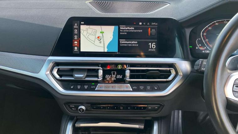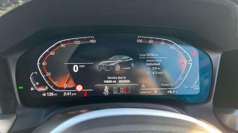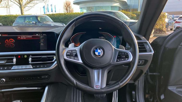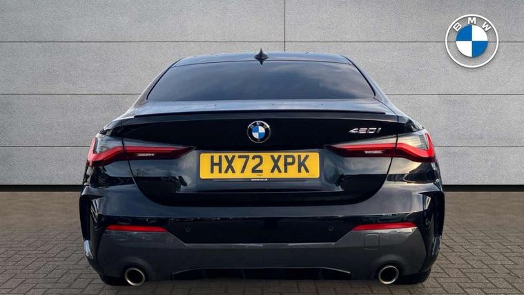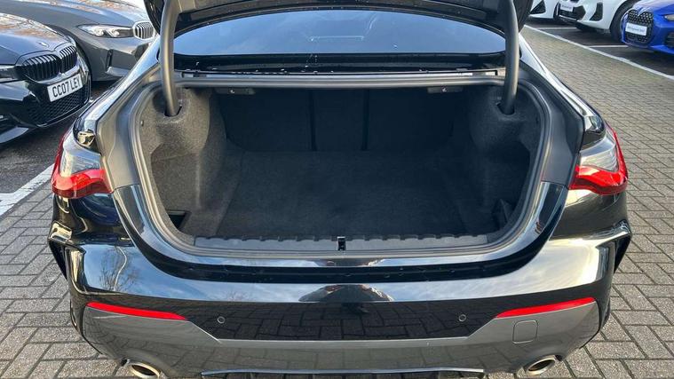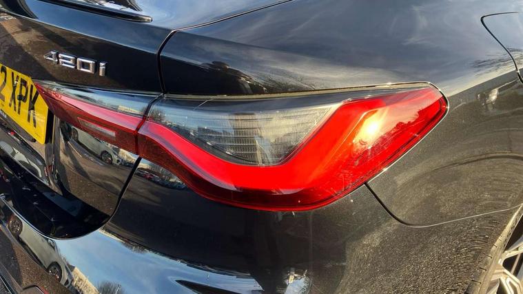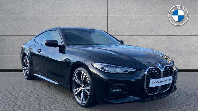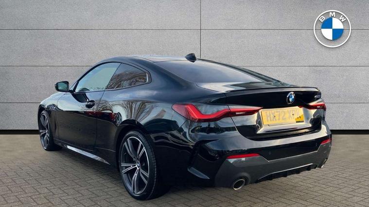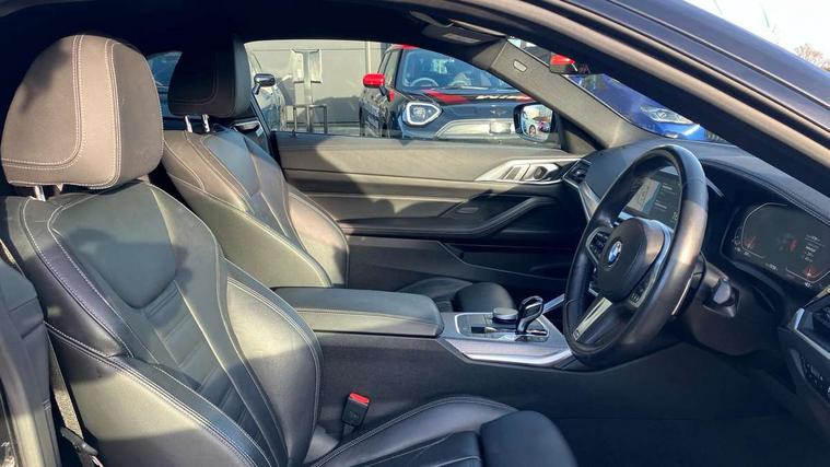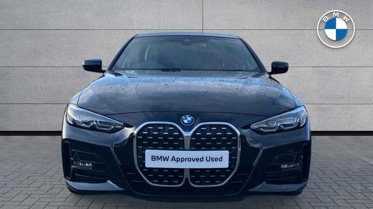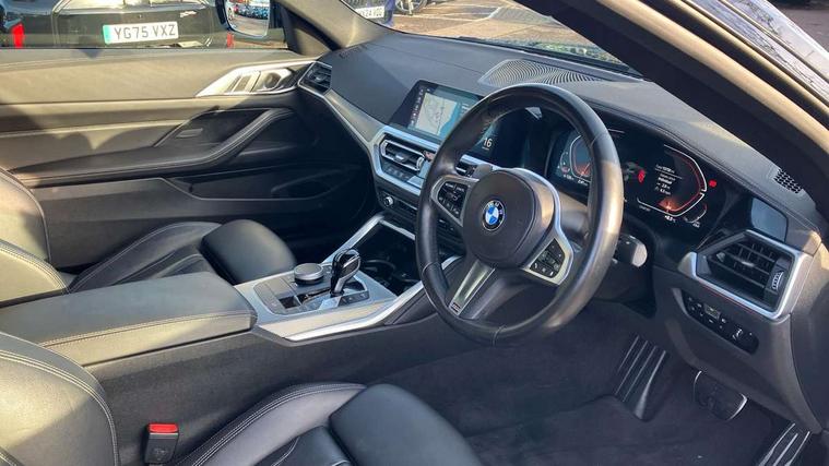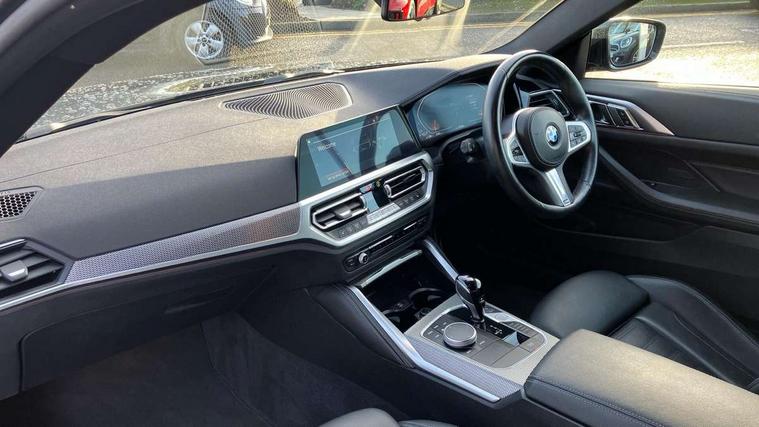 Active guard plus, Attentiveness assist, Auto start-stop, BMW ConnectedDrive online services, BMW iDrive controller on centre console, BMW Live Cockpit Professional Nav with 12.3" instrument display + 10.25" display, Intelligent Voice Assist, BMW OS 7, HDD, 2USB, 4G LTE connect, BMW service history, BMW Teleservices, Brake pad wear indicator in front and rear, Check Control warning system for monitoring of lights and door/luggage compartment open warning, Condition based service, Cruise control with speed limit function, Electric power steering with Servotronic steering optimised at all speed ranges, Gearshift time display in manual mode, Instrument cluster with speedometer with mph readout, tachometer, fuel gauge and oil temperature gauge, Integrated owners handbook, Oil sensor for level and grade, warning by check control system, On board computer - average speed, fuel consumption, outside temp display with acoustic warning, clock/date, service interval, odometer/trip meter, Optimum shift indicator, Run flat indicator, Shifting point display, Touch control functionality for BMW Live Cockpit Professional Nav, Variable sport steering, 8 speed automatic steptronic transmission with gearshift paddles, Balanced 50/50 weight distribution, Double joint spring strut front axle, Double VANOS, Drive performance control - ECO PRO, comfort and sport modes, High precision injection, Low centre of gravity, M sport suspension, Petrol Particulate Filter, Stroke dependent dampers, VALVETRONIC engine management, 2x USB Type C ports in front centre console for charging and data transfer, 2x USB Type C ports in rear centre console for charging, DAB tuner, Electronic service booklet, Acoustic glazing, Automatic headlight beam throw control with load dependent regulating reaction, dynamic compensation of braking dive and acceleration squat, Automatic windscreen wipers and automatic headlight, Automatically dimming electrochromatic rear view mirror, BMW emblem on engine compartment lid and tailgate, BMW kidney grille with mesh grille front side of the nuggets in matt aluminium and frame in chrome high gloss, Body colour fuel filler flap, Body colour roof fin, Brushed aluminium inserts in the front door sill finishers with BMW designation, Door sill strips, Dynamic brake lights, Electric windows - front and rear, with open/close fingertip control, anti trap facility and comfort closing function all round, Exterior mirrors - electrically folding with anti-dazzle, Fading support, Follow me home headlights, Front and rear bumper system, Front apron plastic in body colour, Green tinted heat protection glazing, High gloss shadow line exterior trim, Illuminated bow type door handles in body colour drivers side with door lock, Interior rear view electrochromatic mirror with automatic anti dazzle function, LED daytime running lights, LED front fog lights, LED front indicators, Licence plate panel integrated into front bumper and tailgate, Lightweight engineering, M designation on front side panels, left and right, M rear boot spoiler, Model designation on right side of tailgate, One piece front bumper cover including towing eye cover in body colour, Preparation for high beam assistant, Rear boot, Reversing light, Side frame decorative moulding black matt, Two part LED tailights in L-shape with components in smoked glass, brake light, LED turn indicator and rear fog light, Visible exhaust tailpipe finisher, Visible VIN plate, Welcome lights in interior and door handle area, Widened track and increased camber values for max transverse dynamics, agility and steering precision, Window recess cover black high gloss, Windscreen wipers with integrated heated washing jets, 12V power socket in front centre console, 2 front cupholder in centre console with clamping elements and matt black inlay, 2 Rear seat headrests, 2 seat bench in second row, 3 spoke M sport leather multifunction steering wheel, 3 zone automatic air conditioning, 4 pieces lashing eyelets in luggage compartment, 40:20:40 split folding rear seat and rear centre armrest with two cupholders, Anthracite headlining, Armrest integrated in front and rear door trim + front centre console armrest, BMW ID, Driver seat backrest width adjustment, Four grab handles integrated in roof lining, Front and rear door pockets, Front and rear reading lights, Front sport seats, Heated driver and front passenger seats, Height adjustable front headrests, Height adjustable mechanically and infinitely variable steering column, Illuminated armrest storage compartment, Illuminated glove compartment with separate small compartment, Make-up mirror lights, Single front passenger seat, Storage compartment in rear centre console, Sunvisors with illuminated vanity mirrors and ticket pocket, Toolkit located in luggage compartment, Velour front floor mats, Vernasca leather upholstery, Ambient lighting pack - 4 Series, Connected professional pack - 4 Series, M sport exterior styling pack - 4 Series, 2 x 3-point rear seatbelts, Battery safety cut-off, BMW emergency call, Brake energy regeneration, Braking pre-tensioning, Child seat ISOFIX attachment for the two outer rear seats, Coasting in idle in ECO PRO mode, Cornering brake control (CBC), Crash sensor activating of airbags, Unlocking doors, hazard warning lights, interior light, safety battery terminal, Driver and front passenger side airbags, integrated in the door side seat backrest bolsters for all seat variants, Driver/Front Passenger airbags, Dry braking, Dynamic brake control, Dynamic stability control + (DSC+) - Anti-lock Braking System (ABS) with brake assist and cornering brake control + Automatic Stability Control (ASC), Dynamic Traction Control - DTC, Electric parking brake including automatic hold function and automatic release of the parking brake when driving off, Electronic differential lock control (EDLC), Front and rear ventilated brake disc, Front passenger manual airbag deactivation, Head airbags for all 4 outer seats, Hil