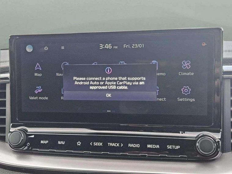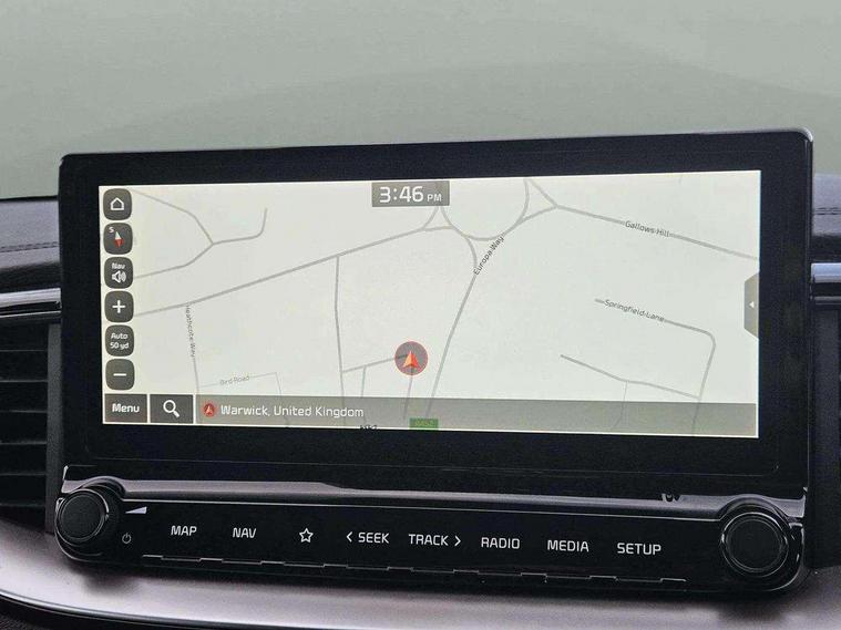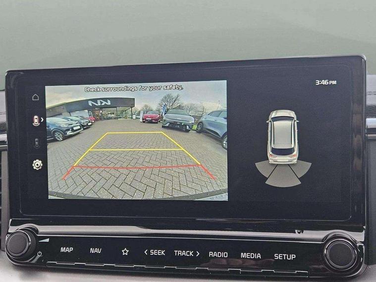 10.25" touchscreen satellite navigation, 4.2" supervision colour cluster display, Apple car play/Android Auto with voice control, Bluetooth with Voice Recognition & Music Streaming, Drive mode select (Normal and Sport), Driver attention warning + (DAW) with leading vehicle departure warning, Emergency call service, Emergency stop signalling system, Forward Collision-Avoidance Assist (FCA) - City/Pedestrian/Cyclist, Kia connect UVO, Lane Following Assist (LFA), Lane keep assist, Manual speed limit assist, Motor driven power steering, Rear parking sensor, Reversing camera system with dynamic guidelines (Integrated into centre fascia screen), Smart cruise control with stop/go functionality, Trip computer, Intelligent Stop and Go, 6 speaker audio system, DAB Radio with MP3, Illuminated USB ports, Steering wheel mounted controls, USB Fast Charger in Front Centre Console, USB type A port, All-round Electric Windows with Front Auto Up & Down Function, Auto dimming rear view mirror, Automatic defog system, Automatic headlights control, Body colour bumpers, Body colour door mirrors, Body colour exterior door handles, Body colour rear roof spoiler, Chrome window surround, Electric adjustable/heated/folding door mirrors with LED Indicators, Heated rear window with timer, High beam assist, High gloss black and white chrome coated radiator grille, LED daytime running lights, LED front fog lights, LED Headlights, LED High-mounted Brake Light, LED rear combination lights, Privacy glass (rear side windows and tailgate), Rain sensing front wipers, Rear side wing doors, Rear wash/wipe, Roof rails, Tinted glass, Wide view drivers door mirror, Windscreen Washer Level Warning, 1 x Front 12V socket, 12V power socket in luggage compartment, 3 seat bench in 2nd row, 3 x passenger assist grips, 60/40 split folding rear seat, All-round height adjustable headrests, Centre console storage box/armrest, Cloth upholstery with faux leather bolsters, Cupholders in centre console, Cupholders in rear armrest, Dash illumination dimmer switch, Door courtesy lamps, Driver & Front Passenger Sunvisors with Vanity Mirror Illumination & Ticket Holder, Driver + front passenger electric lumbar support, Driver's seat height adjuster, Dual Height Luggage Area Floor, Dual zone automatic air conditioning, Faux leather door centre trim, Front and rear door storage, Front cabin map light with sunglasses case, Front Passenger Seat Height Adjuster, Front seat back pockets, Heated front seats, Heated steering wheel, Interior door lock/unlock function, ISOFIX Child seat top tethers and anchor fixings, Leather handbrake, Leather trimmed steering wheel, Luggage area light, Luggage area parcel shelf, Luggage hooks, Rear centre armrest, Rear coat hooks, Single front passenger seat, Tilt/telescopic adjustable steering wheel, All round 3-point seatbelts, Anti-lock braking system (ABS), Brake assist system, Dual front side airbags, Dual horn, EBD - Electronic brakeforce distribution, Electronic parking brake, Electronic stability control (ESC) and vehicle stability management (VSM), Front passenger airbag cut-off switch, Height adjustable front seatbelts, Hill start assist control (HAC), Impact sensing auto door unlocking, Rear door child safety locks, Seatbelt reminder warning, Twin curtain airbags, Twin front airbags, Tyre pressure monitoring system, Alarm system, Engine Immobiliser & Deadlocks, Engine Start/Stop Button with Smart Entry System, Locking wheel nuts, Speed sensitive auto door locking, Satin Chrome Fascia Trim, 17" Alloy wheels, Tyre mobility kit,