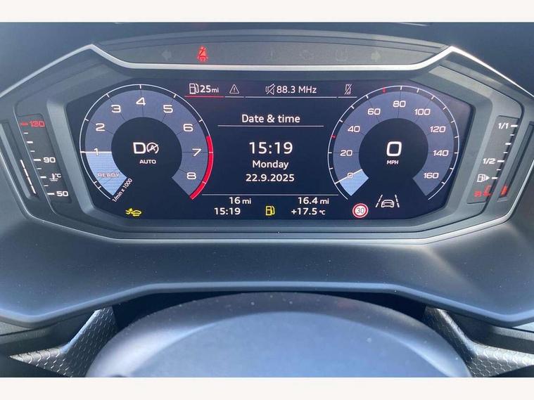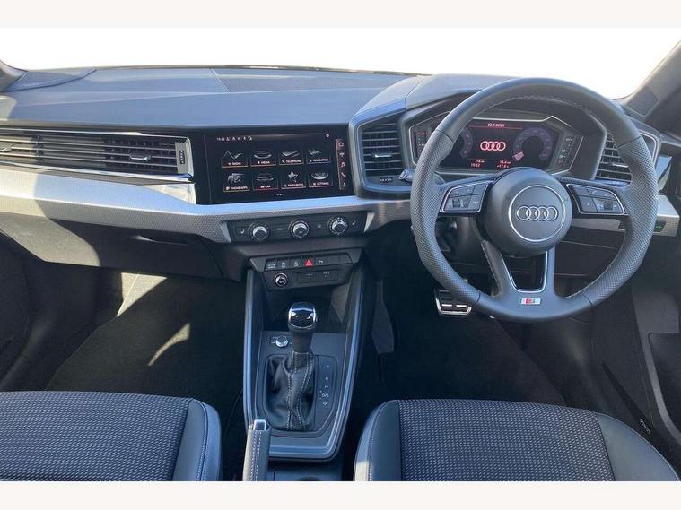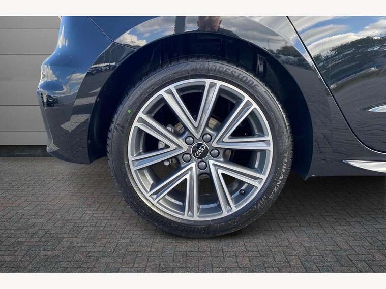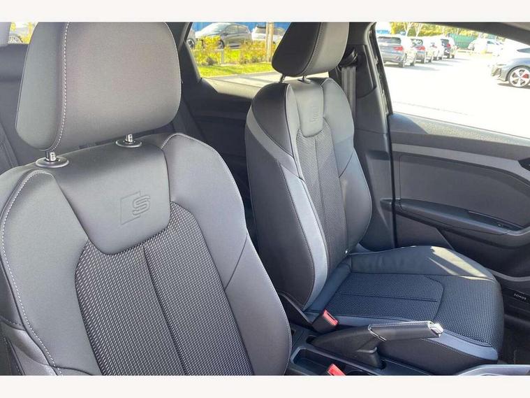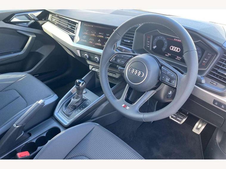 10.25" Digital instrument cluster display classis style instrument dials + speed, odometer, time, outside temperature, telephone menu + fuel level warning, Advanced driver attention and drowsiness monitor, Audi connect emergency call and service, Audi drive select, Audi remote connect and control, Audi smartphone interface, Bluetooth interface, Camera based traffic sign recognition, Cruise control, Driver's information system, Electromechanical power steering, Lane departure warning system, Rear parking sensor, Service interval indicator, Speed limiter, Start stop system with recuperation, Voice control system, Washer fluid level indicator, Sports suspension, 2 x USB type C connection points, 6 loudspeakers, DAB Digital radio, MMI radio plus with 10.1" colour MMI display screen and MMI touch, Auto dimming rear view mirror, Body coloured door mirrors, Door sill trims with aluminium inlays and S line logo in front, Electric front and rear windows, Electrically adjustable, heated, folding door mirrors with integrated LED side indicator, Front side air inlets in grained matt black and C frame in anthracite black, Headlight cleaning system, Heat insulating glass windscreen and side windows, Heated rear windscreen, High level LED brake light, LED daytime running lights, LED headlights with range control LED rear lights + dynamic rear indicators, Light and rain sensors, Privacy glass, Radiator grille and rear diffuser in matt anthracite black, Radiator protective grille frame in matt aluminium silver, Rear fog lights, Rear side wing doors, Rear wiper, S line badges on front wings, Side front spoiler lips in grained matt black, 12V socket in centre console with two cup holders, 3 rear seats with headrests, 3 seat bench in 2nd row, 3 spoke leather multi-function plus steering wheel features S badging and grips in perforated leather with contrast stitching, 40:60 Split folding rear seat or fully collapsed, Black cloth headlining, Front and rear velour black floor mats with contrast stitching in fine silver, Front head restraints, Front passenger seat, Height and reach adjustable steering wheel, Interior lighting includes roof module, front and rear reading lights and right luggage compartment lighting, ISOFIX child seat mounting for front passenger and outer rear seats including top tether attachment point of outer rear seats, Leather gear knob with aluminium trim, Leather handbrake grip, Manual air conditioning, Manual height adjustable for driver and front passenger seat, Manually adjustable lumbar support in front seats, Stainless steel pedals, Ambient lighting package - A1, Luggage compartment pack - A1, S line exterior styling pack - A1 Sportback, 3x3 point rear seatbelts, Audi pre-sense front with pedestrain and cyclist recognition, Brake assist function, Driver and front passenger airbag with front side and head airbags, Electronic Stability Control including ABS, EBD, ASR and EDL, Front passenger airbag deactivation switch, Hill hold assist, Manual rear child locks, Seatbelt height adjustment for front seats, Seatbelt monitoring, Tyre pressure loss indicator, Warning triangle and first aid kit, Anti theft alarm, Anti theft wheel bolts, Immobiliser, Remote control key with safelock, Aluminium trim for control switches, air vents and digital instrument cluster, Black dashboard, Silver grey inlays polygon structure in diamond paint finish, Structured grey accent surfaces insert of air vents, interior door handle recesses and centre console in quartz paint finish,