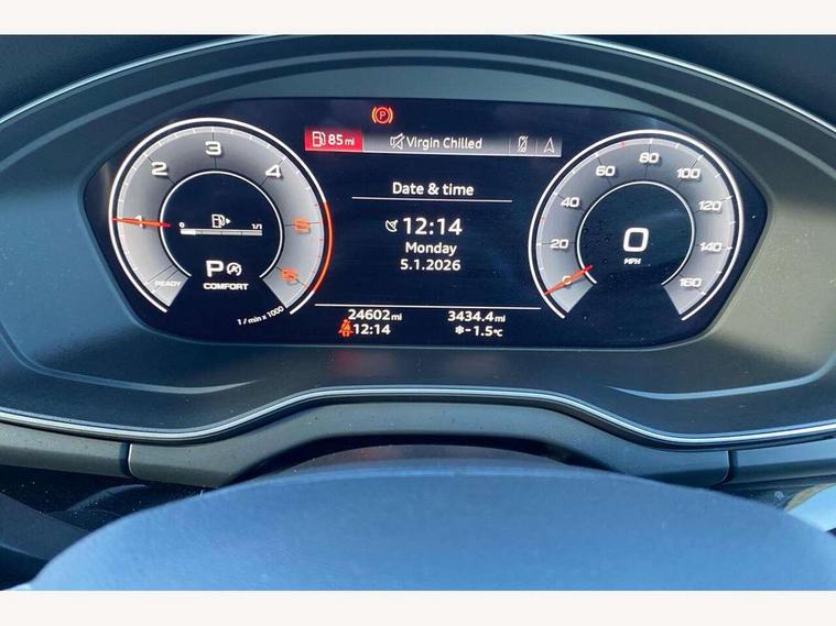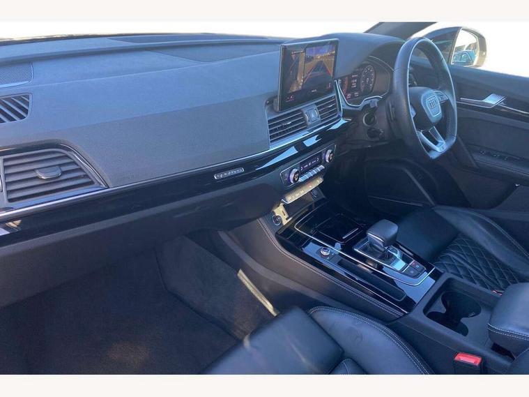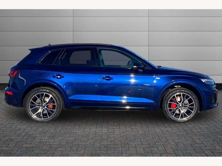Acoustic front and rear parking sensor, Audi connect safety and service (e-call), Audi connect with Amazon Alexa Integration, Audi drive select, Audi virtual cockpit plus with 12.3" screen and three different layout designs, Audi wireless smartphone interface, Automatic start-stop system with coasting functionality and efficiency programme, Bluetooth interface, Electro - mechanical power assisted steering, MMI navigation plus with 10.1" touch screen, Power tailgate, Reversing camera, Service interval indicator, Voice control system with Audi hotword activation "Hey Audi", Diesel particulate filter, Quattro on demand, S line sports suspension, 8 loudspeakers, DAB Digital radio, Acoustic windscreen, Audi matrix LED headlights with dynamic front and rear indicators, Audi rings at front and rear in black, Audi rings decal on rear doors, Auto dimming door mirrors, Auto dimming frameless rear view mirror, Automatic headlight adjustment, Automatic headlights and windscreen wipers, Black roof rails, Body colour bumpers, Body colour underbody protection, Chrome plated exhaust trims, Daytime running lights, Door sills in Selenite silver, Electric adjustable/heated/folding door mirrors, Front air inlet surrounds in anthracite black, Front and rear electric windows, Headlight washers, High gloss black B pillar trims and triangular rear door trim, High level LED brake light, Rear chrome trim strip below lights, Rear privacy glass and rear side windows, Rear side wing doors, Rear wiper, Roof bars, S Line rear spoiler, 2 x USB charging port with aux input socket, 3 rear headrests, 4 way electric lumbar support for driver and front passenger, 40:20:40 split folding 3 rear bench seat in 2nd row with rear centre armrest, Black cloth headlining, Comfort front centre armrest, Contrast stitching on seats, steering wheel and gear lever gaiter, Deluxe 3 zone electronic climate control, Electrically adjustable front seats, Fine Nappa leather upholstery with diamond pattern contrast stitching + front sport seats with S embossed logo, Front/rear floor mats, Gear lever in black leather, Heated front seats, Height adjustable front head restraints, Height/reach adjustable steering column, Illuminated door sill trims with S logo, Luggage compartment cover, Rear seat bench plus-adjust for forwards/backwards position/backrest angle, cupholders in the armrest, load through hatch and remote backrest release, Removable luggage compartment floor, Single front passenger seat, Stainless steel pedals, Sunvisors with vanity mirrors, Black styling package - Q5 Edition 1, Extended interior upholstery pack - Q5, Extended LED Interior multi coloured Lighting Pack - Q5, 3 point seatbelts on all seats, 6 airbags - Driver, front passenger, curtain and side airbags, Electrically operated child locks on rear doors, Electromechanical parking brake, Electronic stabilisation control including ABS, ASR and EDL, First aid kit with warning triangle and vests, Front and rear brake calipers painted in red, Front passenger airbag deactivation, Hill descent control, Hill hold assist, ISOFIX child seat mounting for front passenger seat and ISOFIX child seat mounting with Top Tether for outer rear seats, Multi collision brake assist, Pop-up bonnet for pedestrian protection, Pre sense city, Seat belt force limiter, Seatbelt monitoring, Tyre pressure warning, Anti theft alarm, Anti-theft wheel bolts, Keyless Go access/ignition system, Remote central locking, Air vents inserts and centre console in gloss black, Piano black finish inlay,